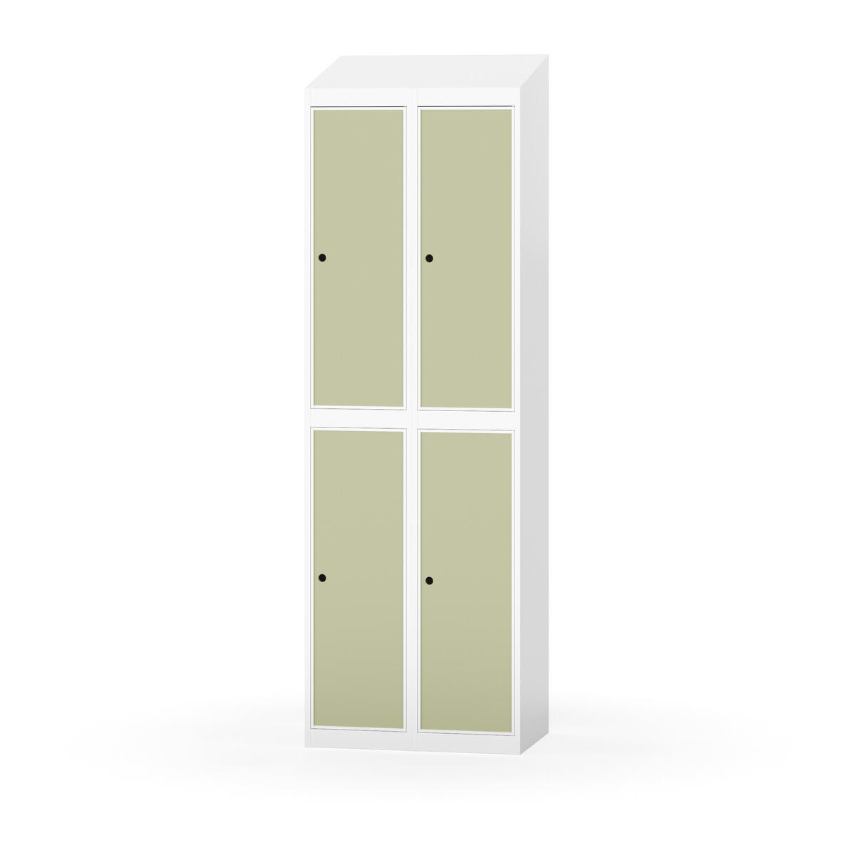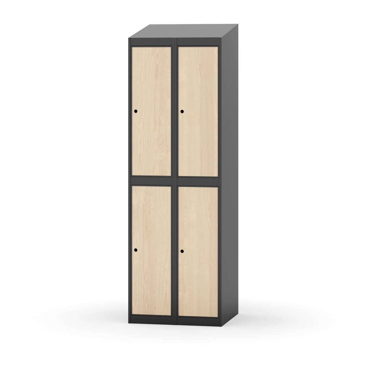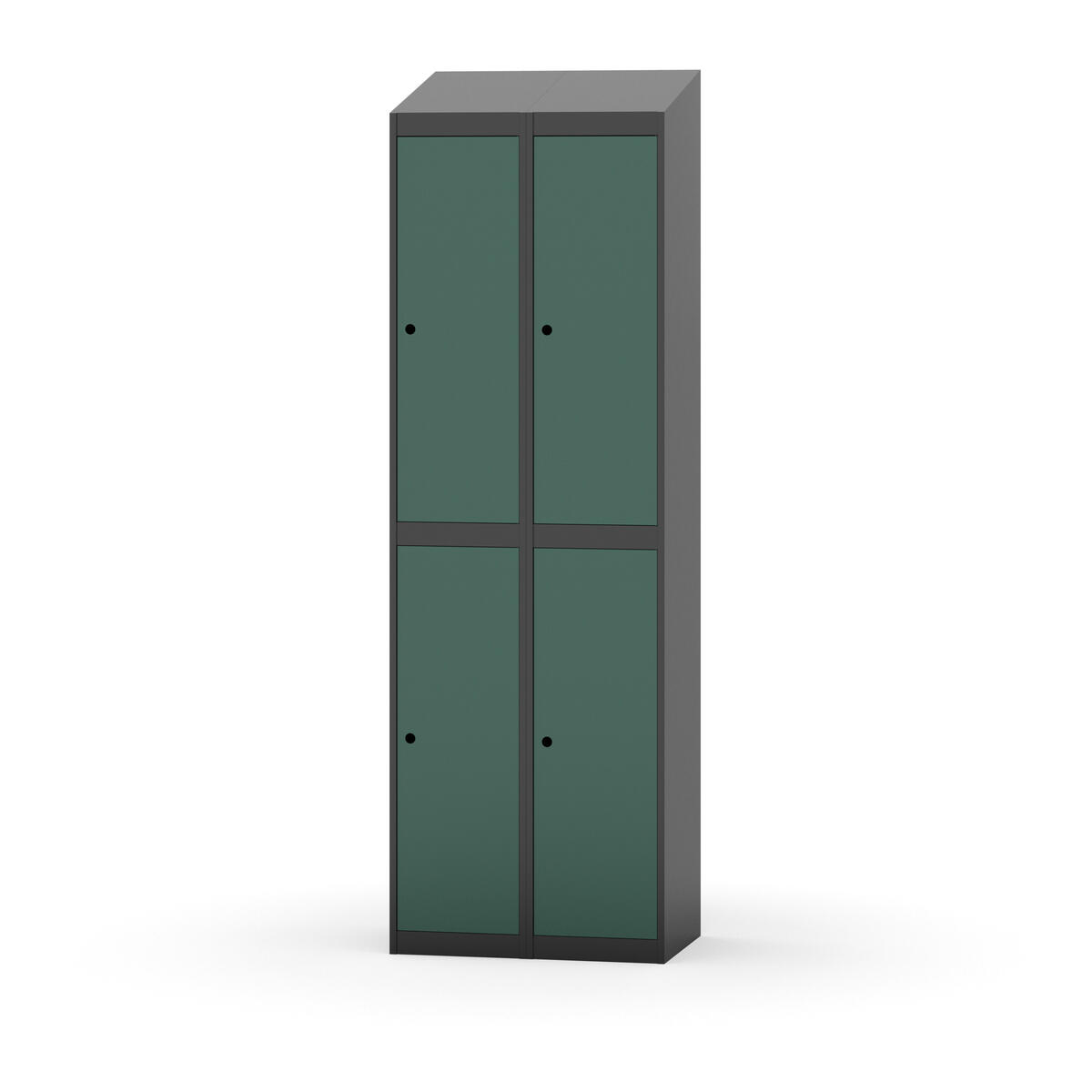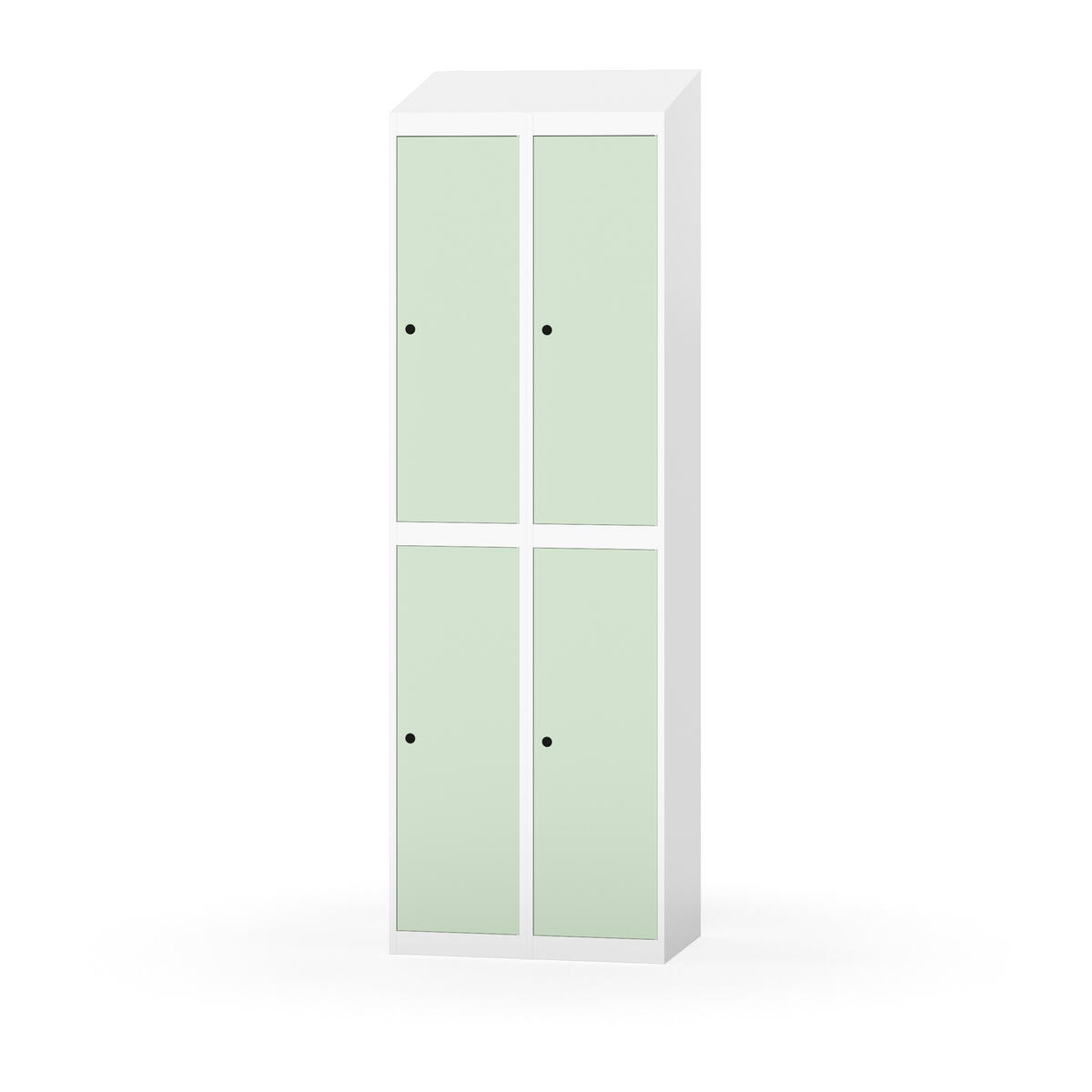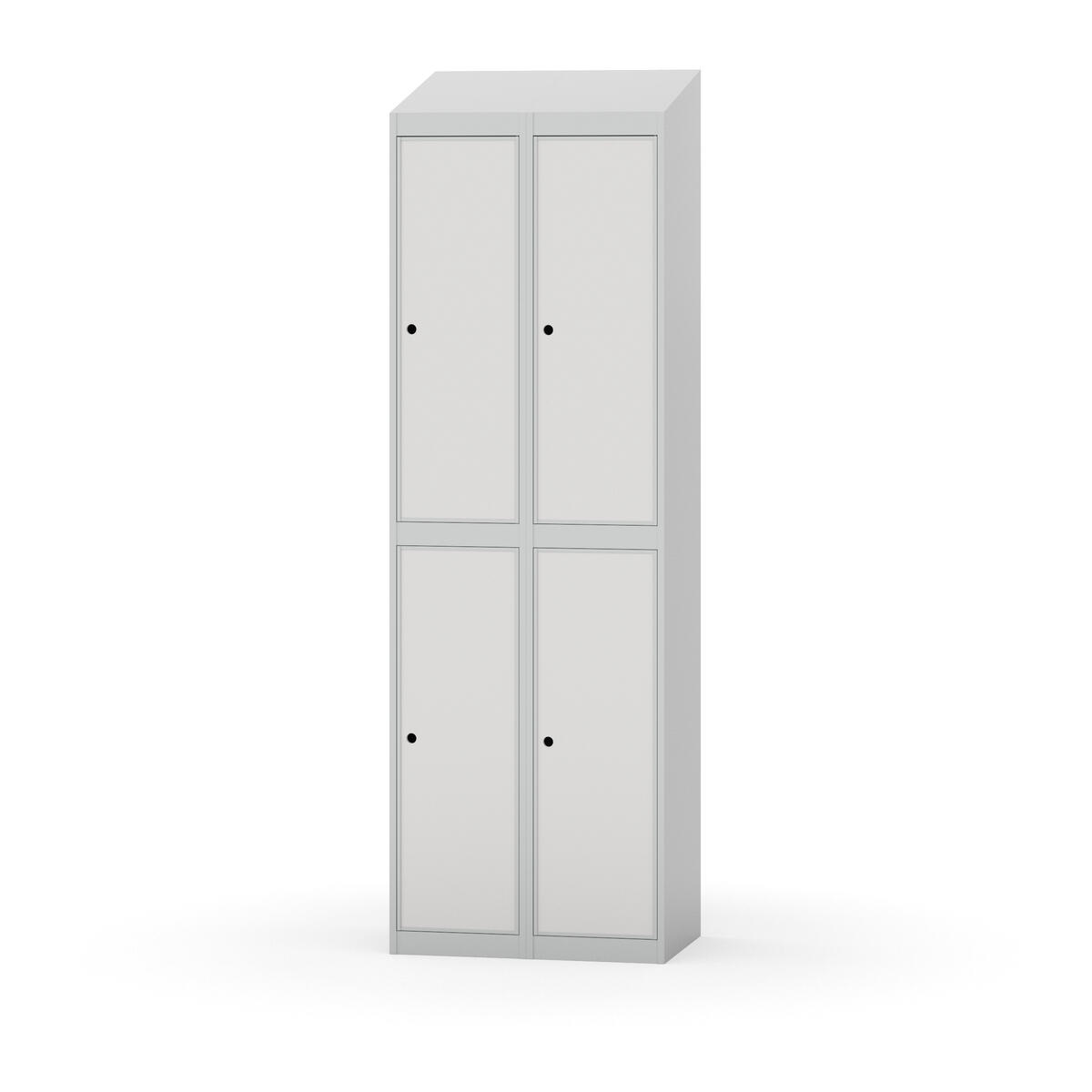 Täysin hitsattu runko. Valittavana pelti- tai korkeapainelaminaattipintainen ovi. Peltiovessa on pysäytin sekä teräsvahvike lukkoreiän ympärillä. Laminaattiovessa on teräskehys ja teräksinen pysäytin. Ovet aukeavat 90°. Sisällä on hylly ja vaatetanko kahdella kaksoiskoukulla. Kaapissa on tasainen pohja ilman kynnystä. Ilmastointireiät pohjassa ja katossa. Lukot ja sokkeli/jalusta tilataan erikseen omilla tuotenumeroillaan. Lukot tulevat asennettuna, sokkeli/jalusta asennetaan toimituksen yhteydessä.