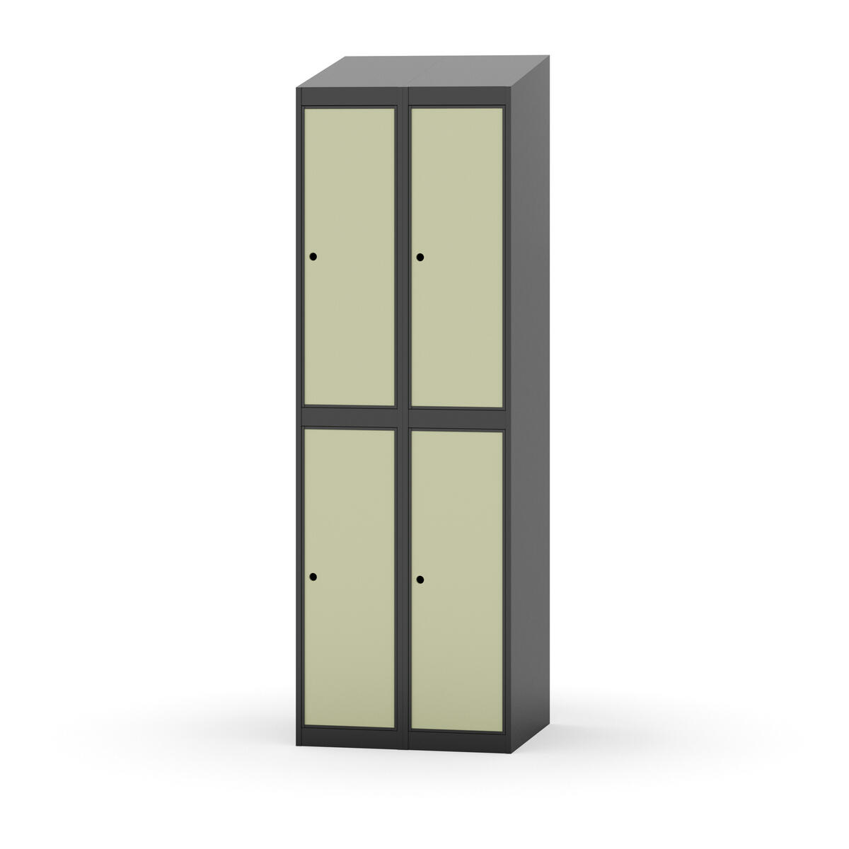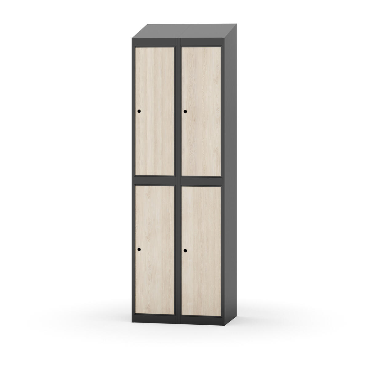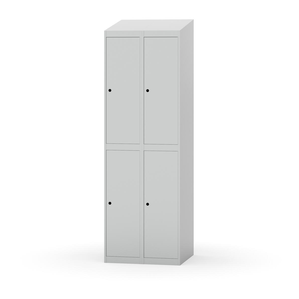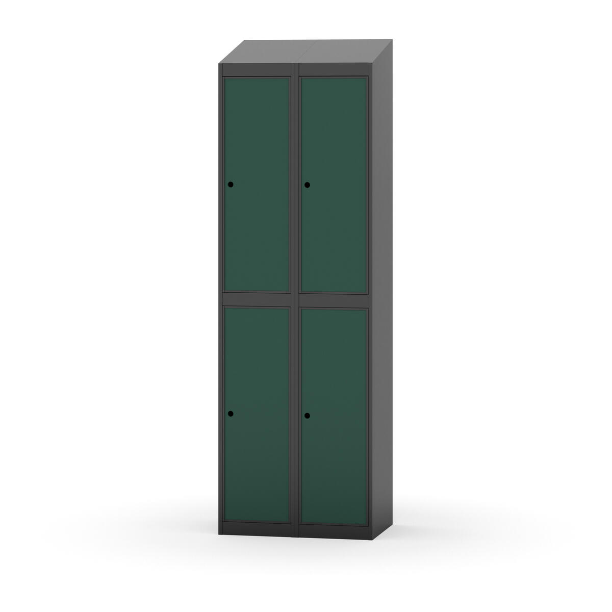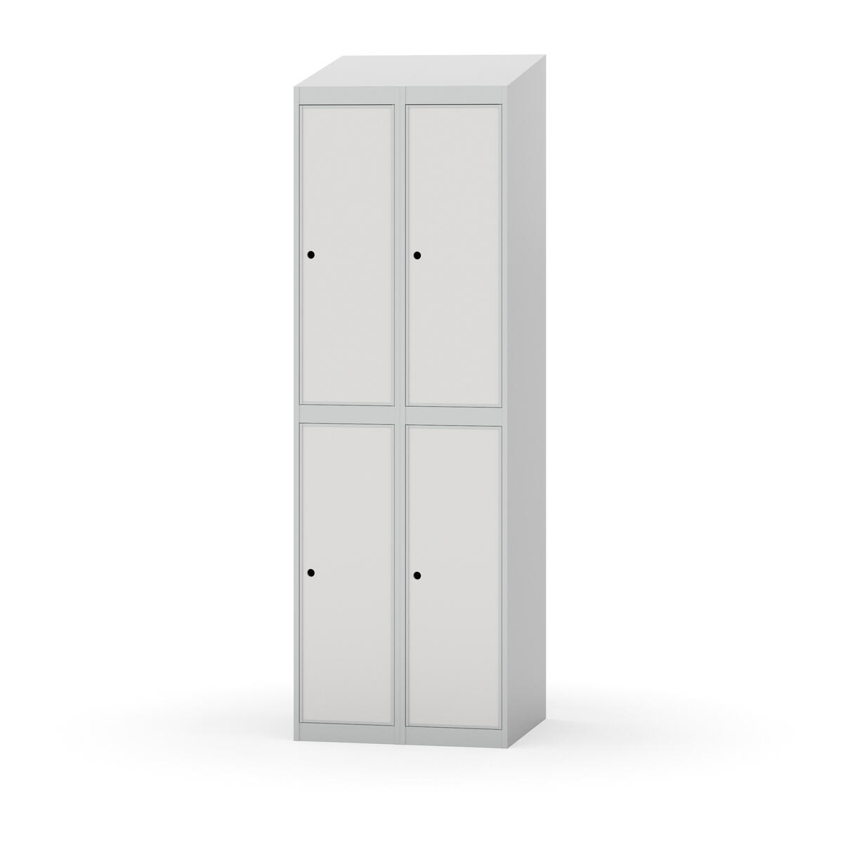 Täysin hitsattu runko. Valittavana pelti- tai korkeapainelaminaattipintainen ovi. Peltiovessa on pysäytin sekä teräsvahvike lukkoreiän ympärillä. Laminaattiovessa on teräskehys ja teräksinen pysäytin. Ovet aukeavat 90°. Sisällä on hylly ja vaatetanko kahdella kaksoiskoukulla. Kaapissa on tasainen pohja ilman kynnystä. Ilmastointireiät pohjassa ja katossa. Lukot ja sokkeli/jalusta tilataan erikseen omilla tuotenumeroillaan. Lukot tulevat asennettuna, sokkeli/jalusta asennetaan toimituksen yhteydessä.