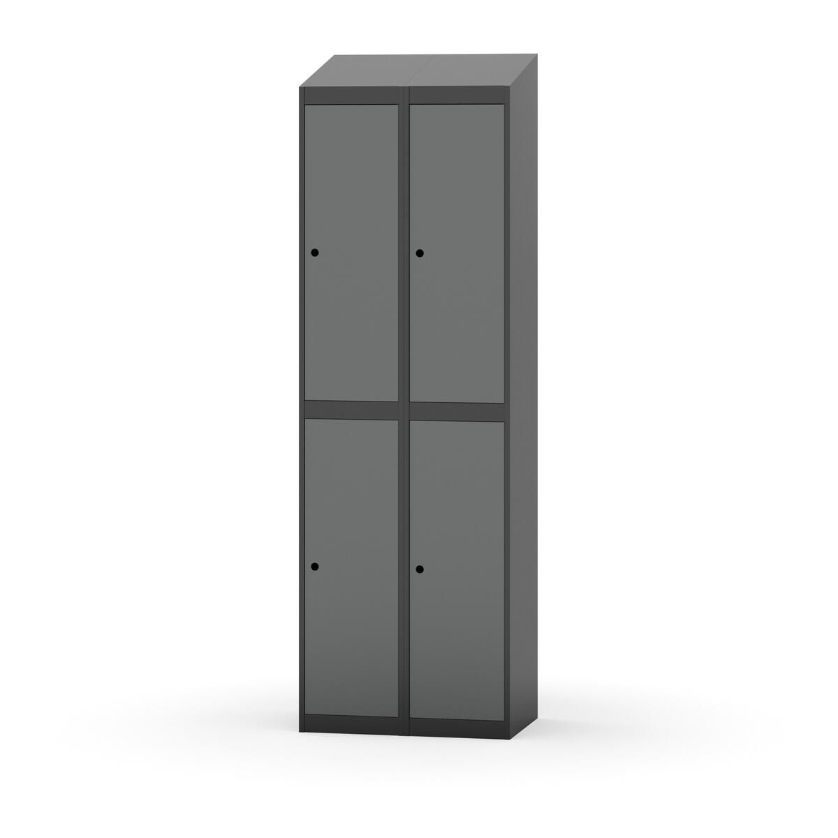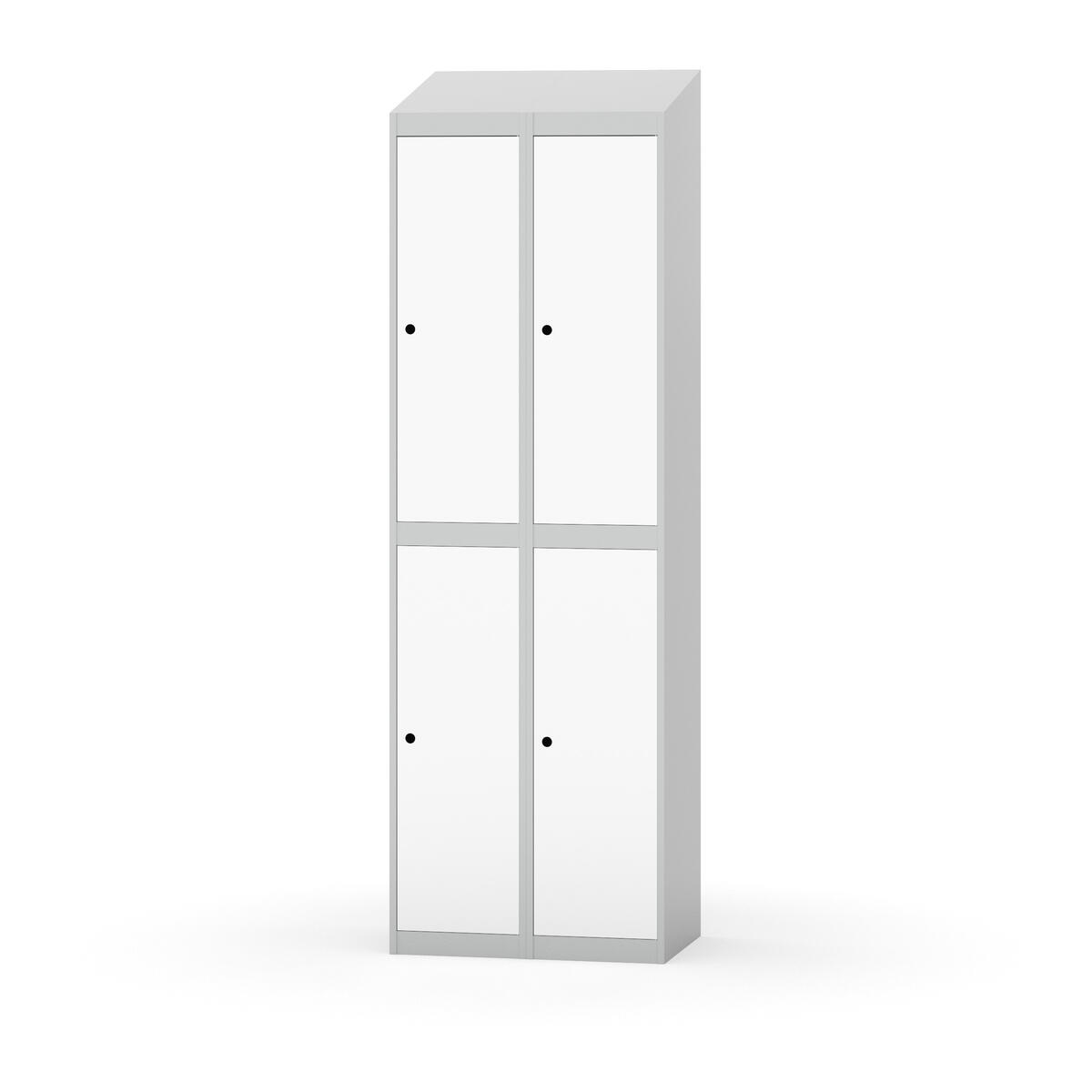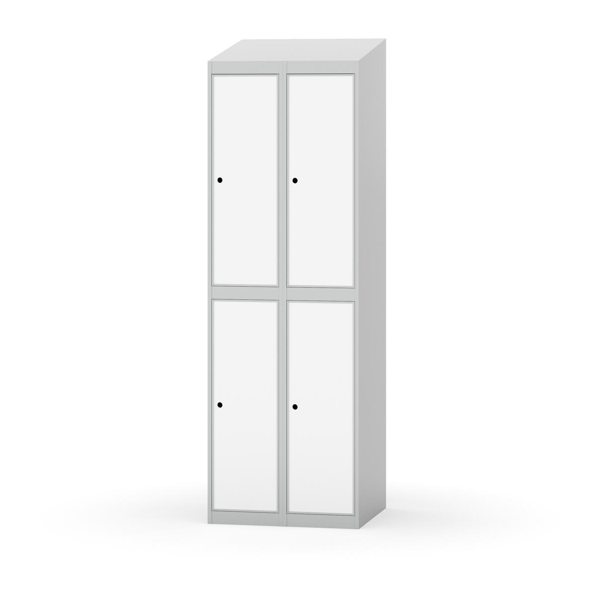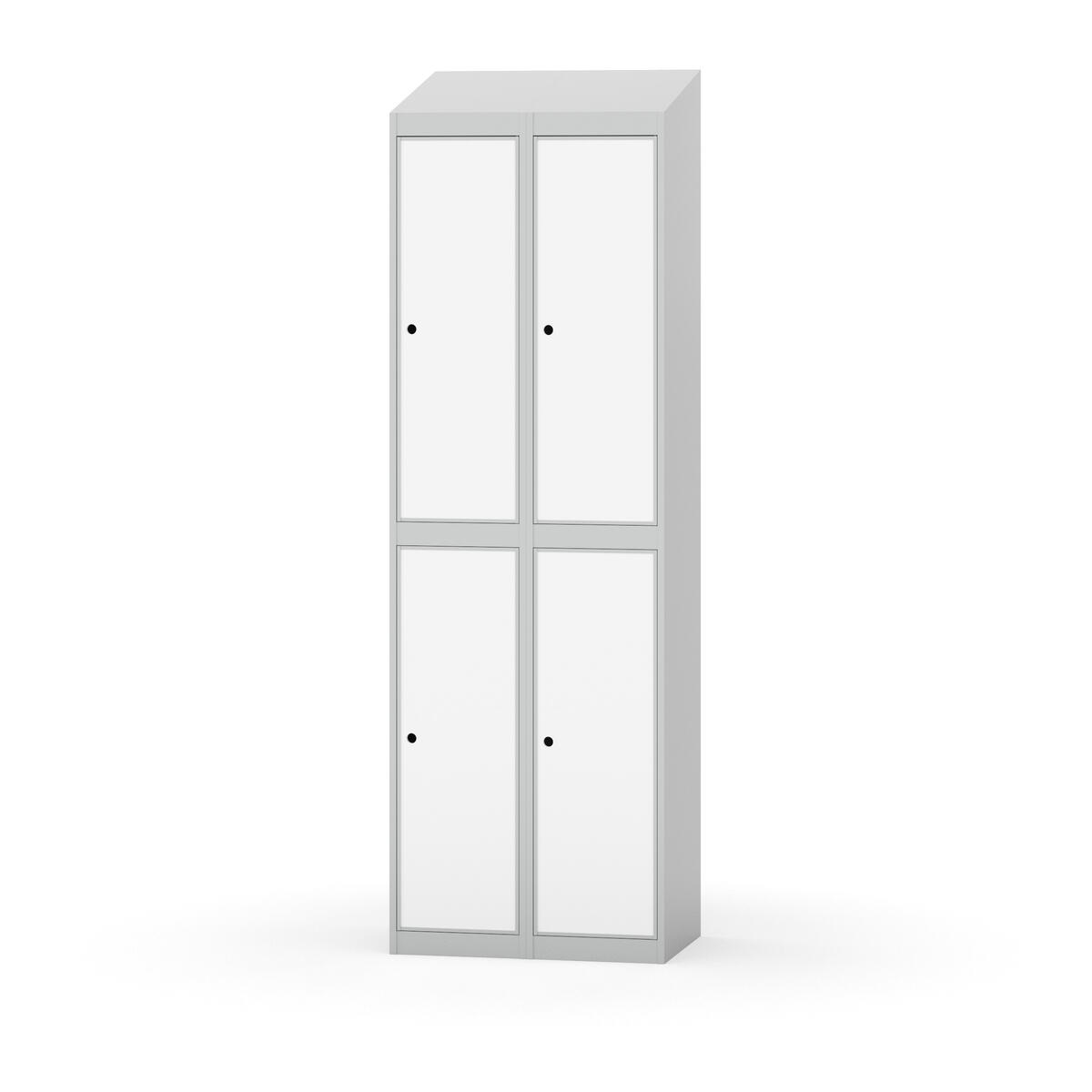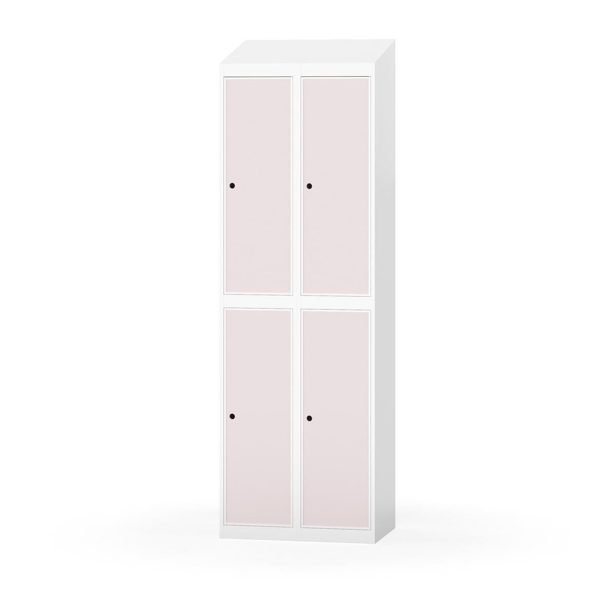 Täysin hitsattu runko. Valittavana pelti- tai korkeapainelaminaattipintainen ovi. Peltiovessa on pysäytin sekä teräsvahvike lukkoreiän ympärillä. Laminaattiovessa on teräskehys ja teräksinen pysäytin. Ovet aukeavat 90°. Sisällä on hylly ja vaatetanko kahdella kaksoiskoukulla. Kaapissa on tasainen pohja ilman kynnystä. Ilmastointireiät pohjassa ja katossa. Lukot ja sokkeli/jalusta tilataan erikseen omilla tuotenumeroillaan. Lukot tulevat asennettuna, sokkeli/jalusta asennetaan toimituksen yhteydessä.