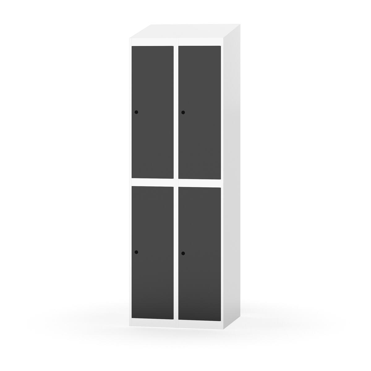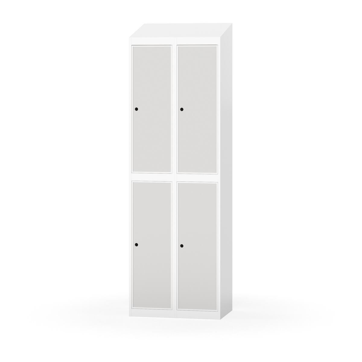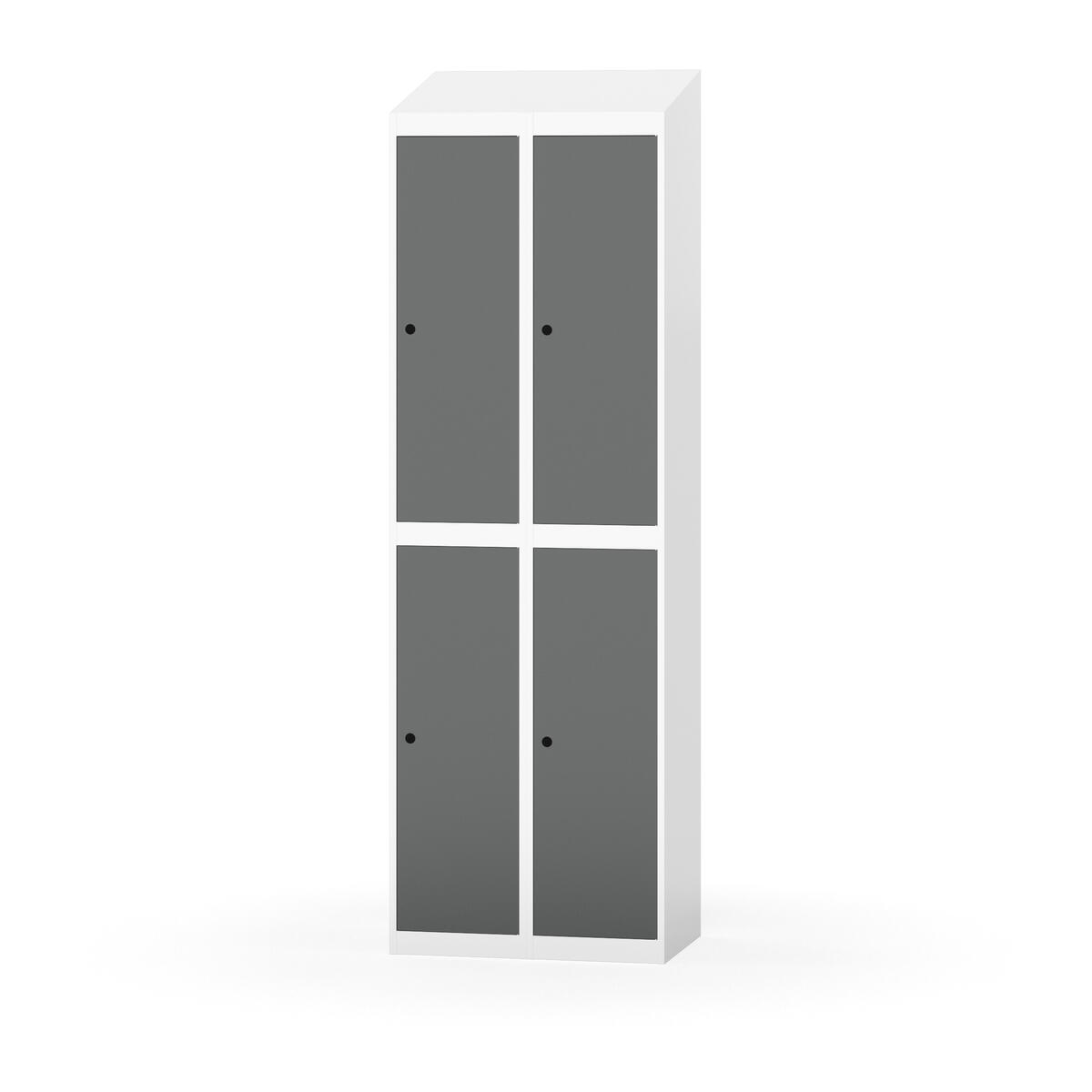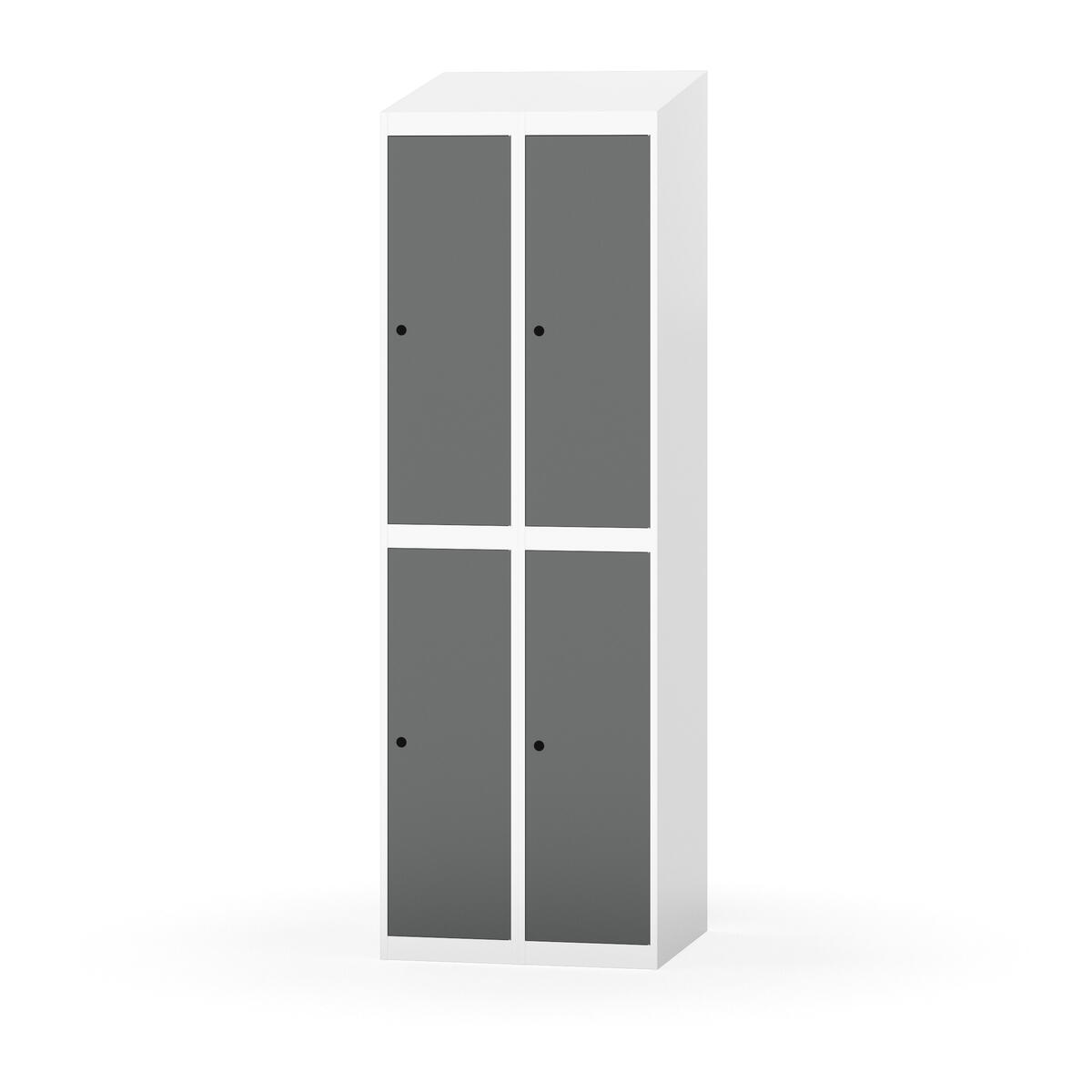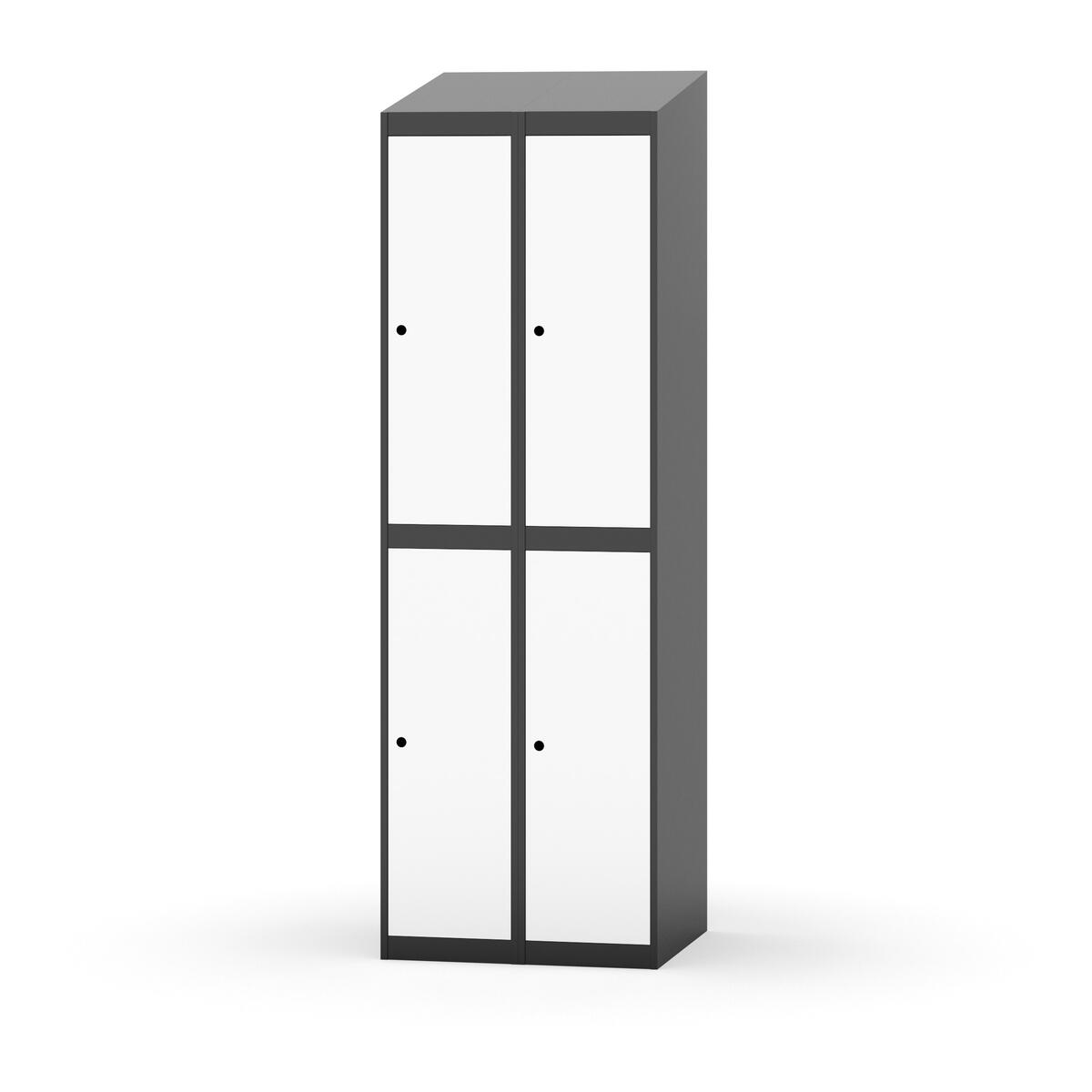 Täysin hitsattu runko. Valittavana pelti- tai korkeapainelaminaattipintainen ovi. Peltiovessa on pysäytin sekä teräsvahvike lukkoreiän ympärillä. Laminaattiovessa on teräskehys ja teräksinen pysäytin. Ovet aukeavat 90°. Sisällä on hylly ja vaatetanko kahdella kaksoiskoukulla. Kaapissa on tasainen pohja ilman kynnystä. Ilmastointireiät pohjassa ja katossa. Lukot ja sokkeli/jalusta tilataan erikseen omilla tuotenumeroillaan. Lukot tulevat asennettuna, sokkeli/jalusta asennetaan toimituksen yhteydessä.