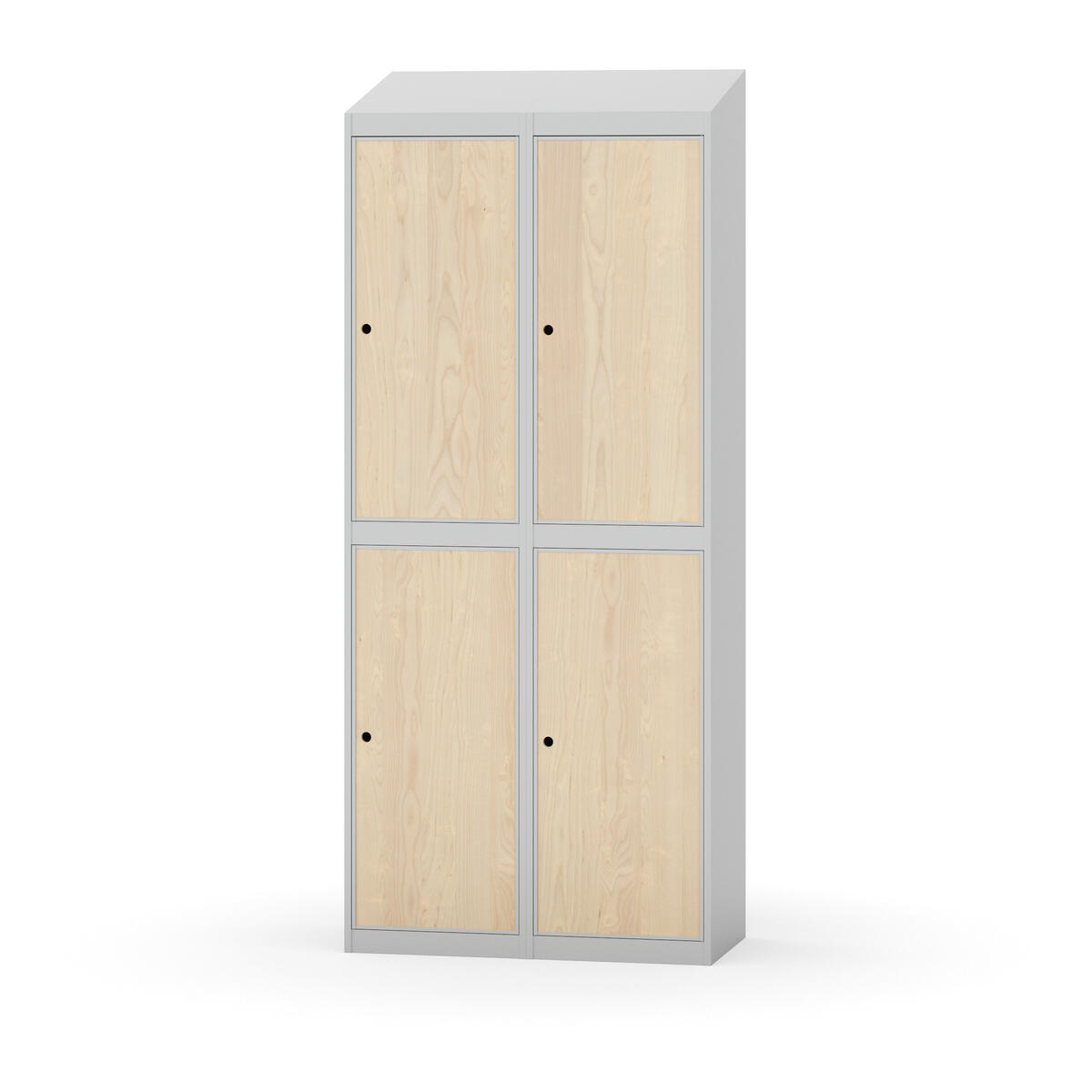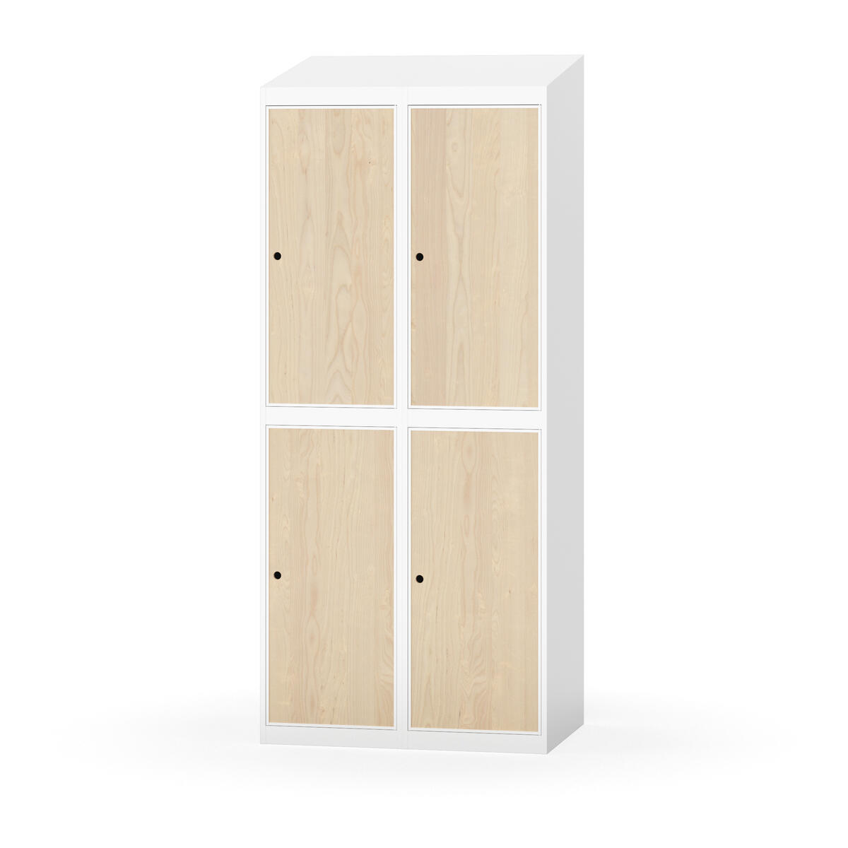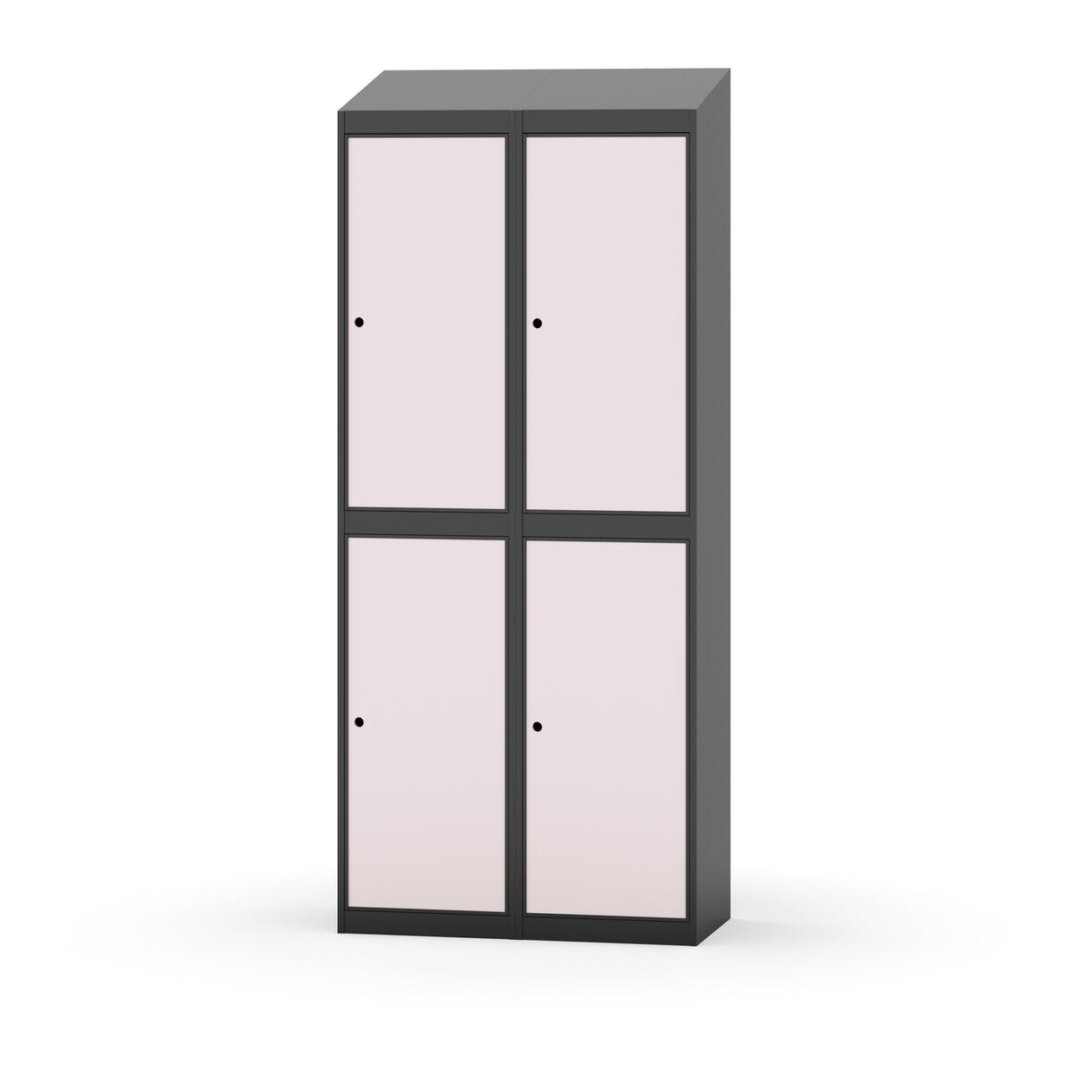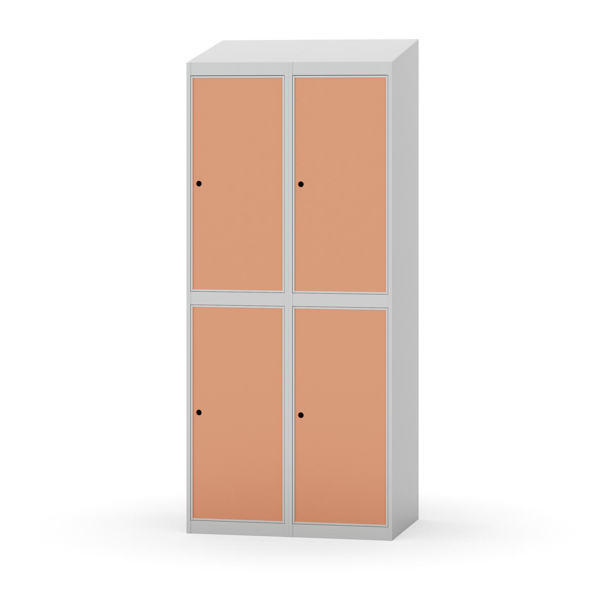 Täysin hitsattu runko. Valittavana pelti- tai korkeapainelaminaattipintainen ovi. Peltiovessa on pysäytin sekä teräsvahvike lukkoreiän ympärillä. Laminaattiovessa on teräskehys ja teräksinen pysäytin. Ovet aukeavat 90°. Sisällä on hylly ja vaatetanko kahdella kaksoiskoukulla. Kaapissa on tasainen pohja ilman kynnystä. Ilmastointireiät pohjassa ja katossa. Lukot ja sokkeli/jalusta tilataan erikseen omilla tuotenumeroillaan. Lukot tulevat asennettuna, sokkeli/jalusta asennetaan toimituksen yhteydessä.