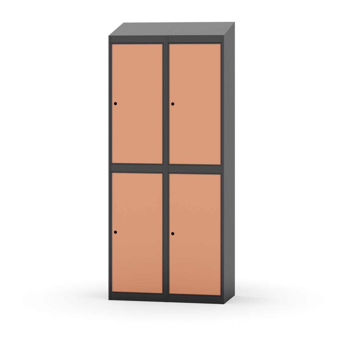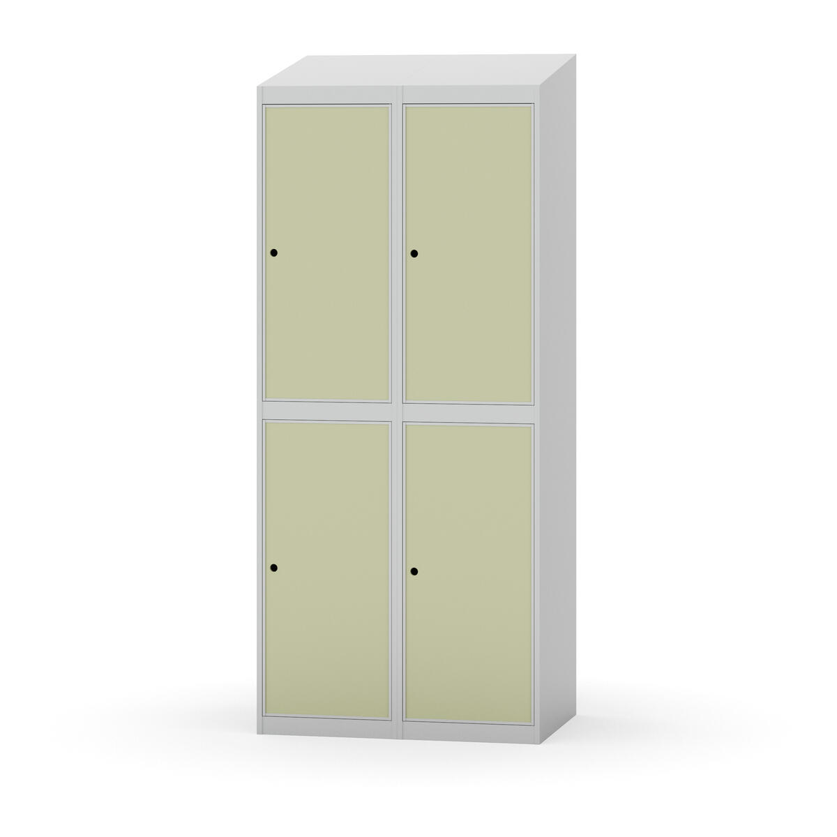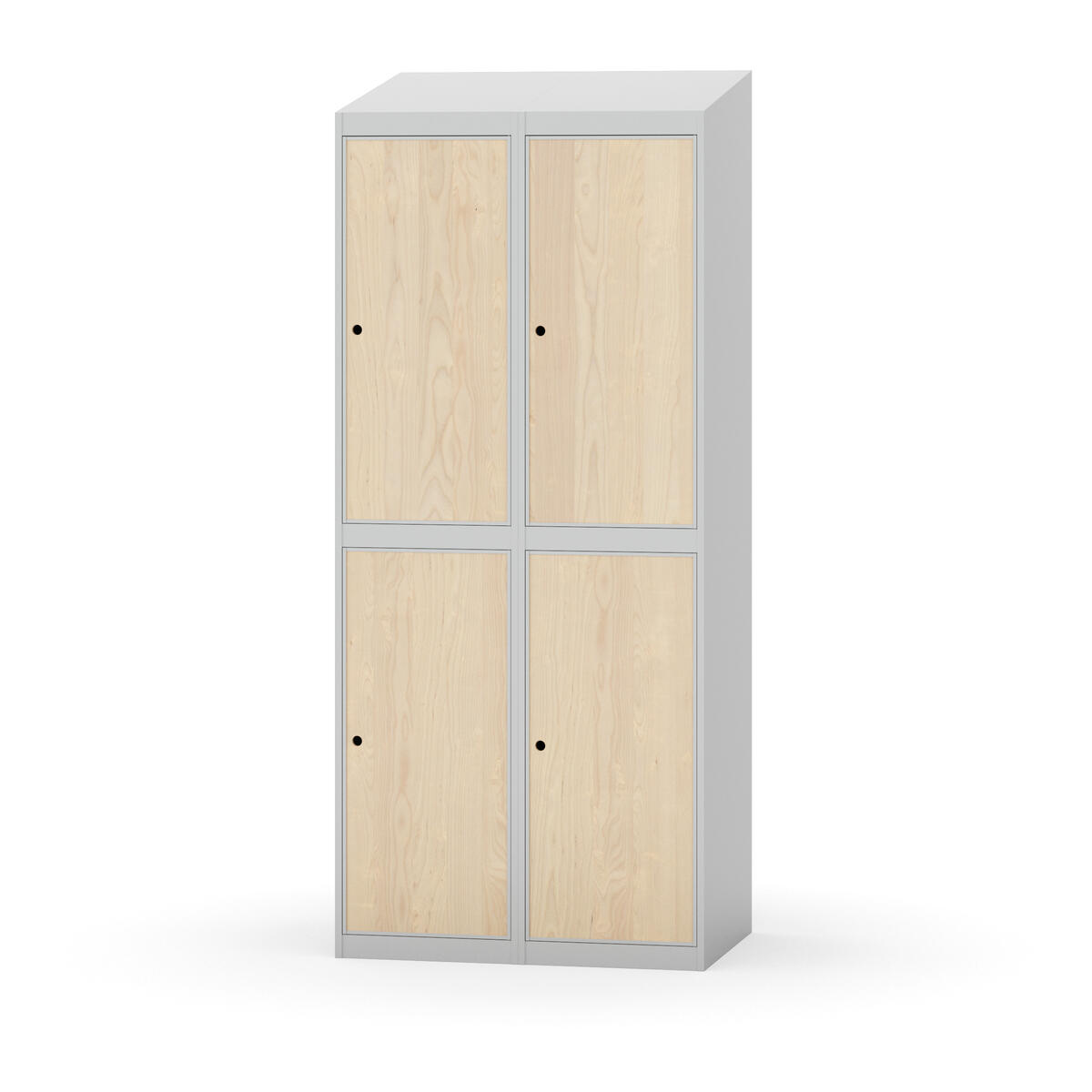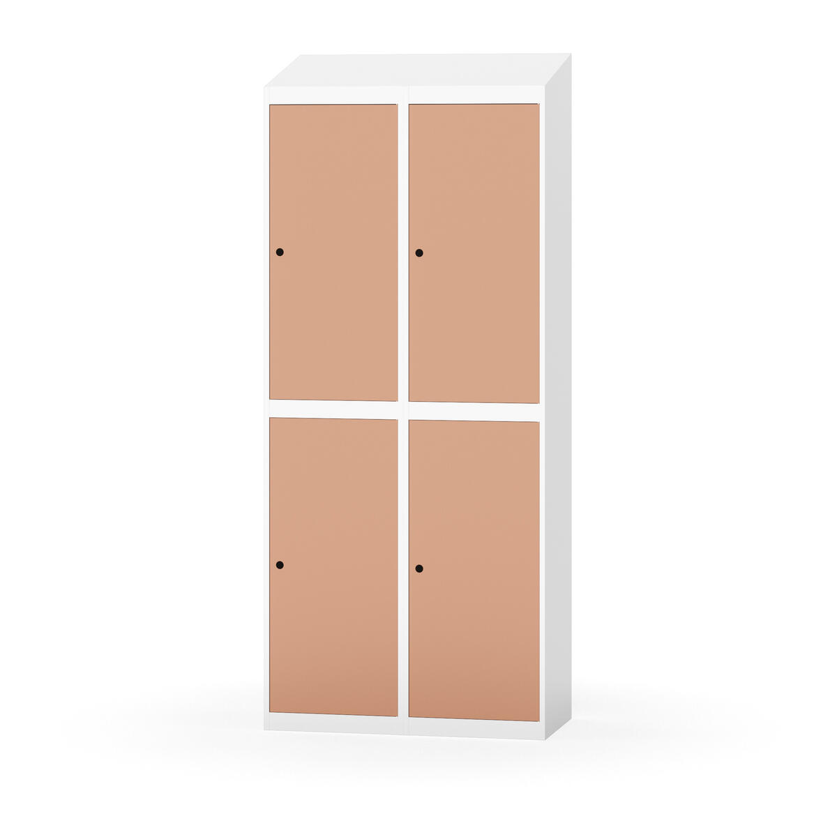 Täysin hitsattu runko. Valittavana pelti- tai korkeapainelaminaattipintainen ovi. Peltiovessa on pysäytin sekä teräsvahvike lukkoreiän ympärillä. Laminaattiovessa on teräskehys ja teräksinen pysäytin. Ovet aukeavat 90°. Sisällä on hylly ja vaatetanko kahdella kaksoiskoukulla. Kaapissa on tasainen pohja ilman kynnystä. Ilmastointireiät pohjassa ja katossa. Lukot ja sokkeli/jalusta tilataan erikseen omilla tuotenumeroillaan. Lukot tulevat asennettuna, sokkeli/jalusta asennetaan toimituksen yhteydessä.
