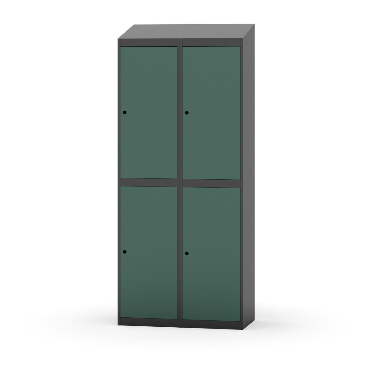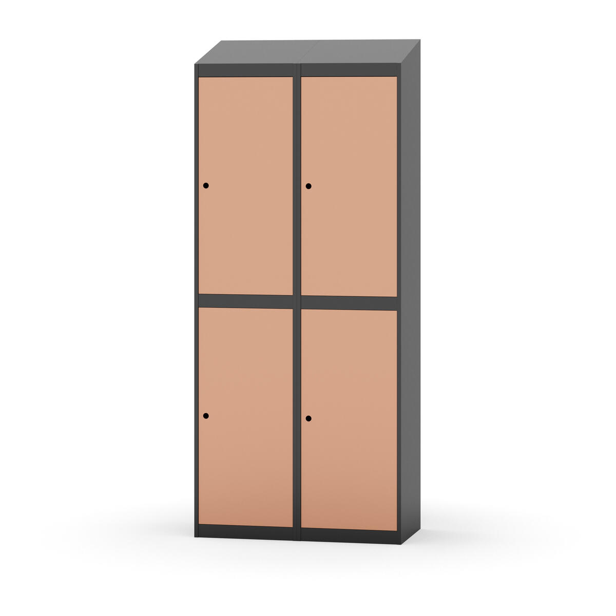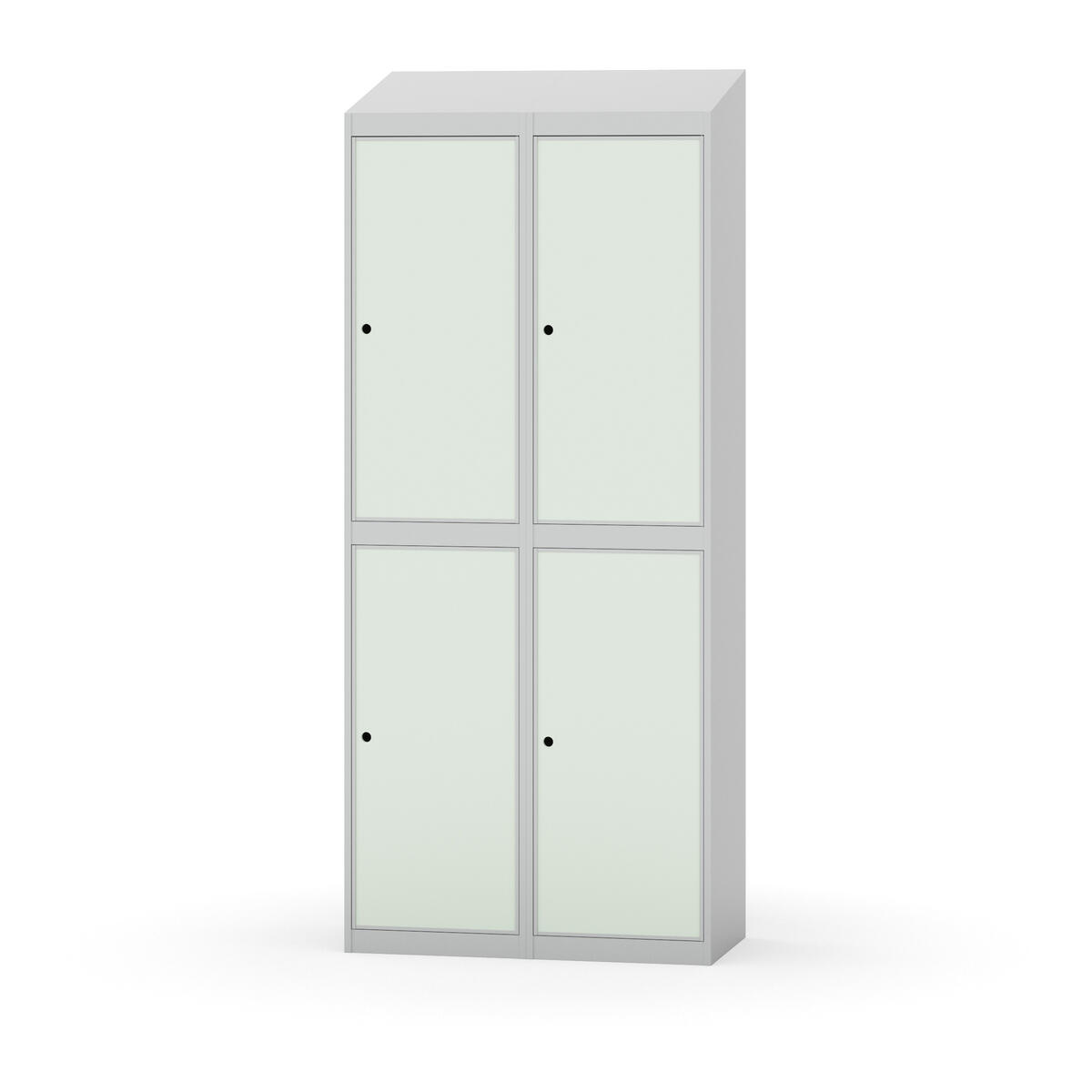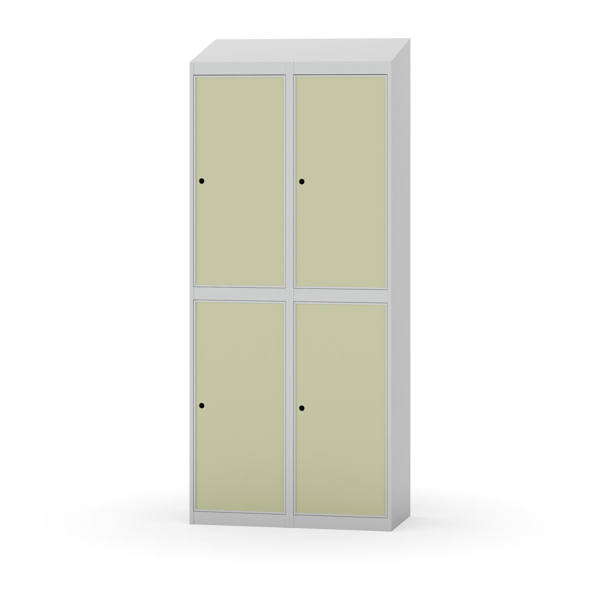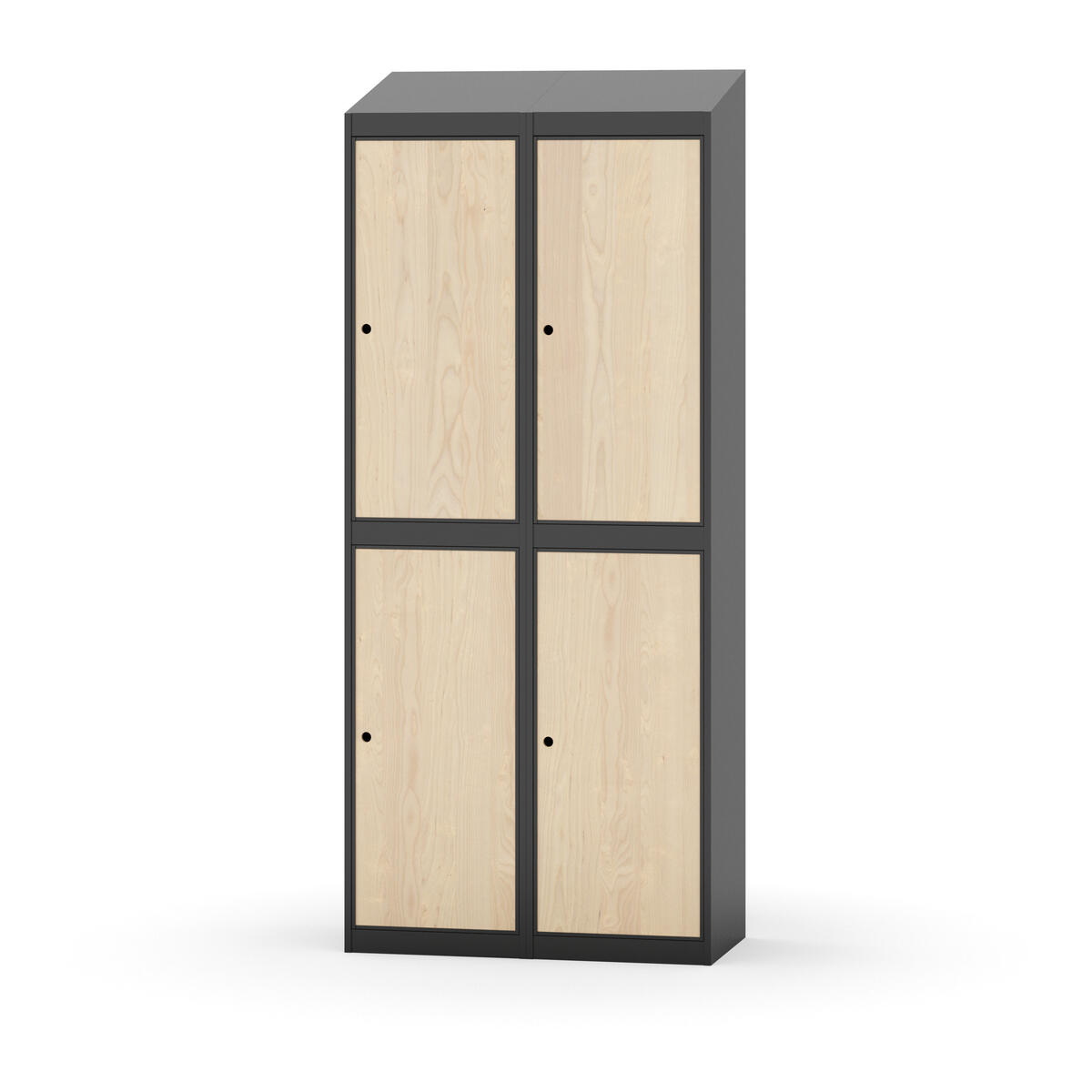 Täysin hitsattu runko. Valittavana pelti- tai korkeapainelaminaattipintainen ovi. Peltiovessa on pysäytin sekä teräsvahvike lukkoreiän ympärillä. Laminaattiovessa on teräskehys ja teräksinen pysäytin. Ovet aukeavat 90°. Sisällä on hylly ja vaatetanko kahdella kaksoiskoukulla. Kaapissa on tasainen pohja ilman kynnystä. Ilmastointireiät pohjassa ja katossa. Lukot ja sokkeli/jalusta tilataan erikseen omilla tuotenumeroillaan. Lukot tulevat asennettuna, sokkeli/jalusta asennetaan toimituksen yhteydessä.