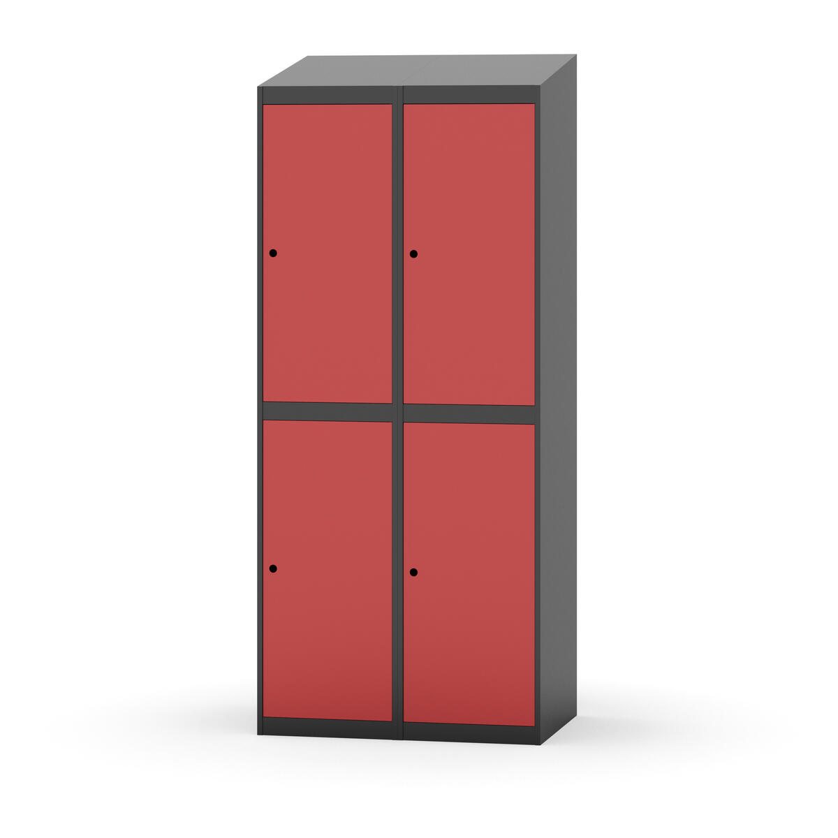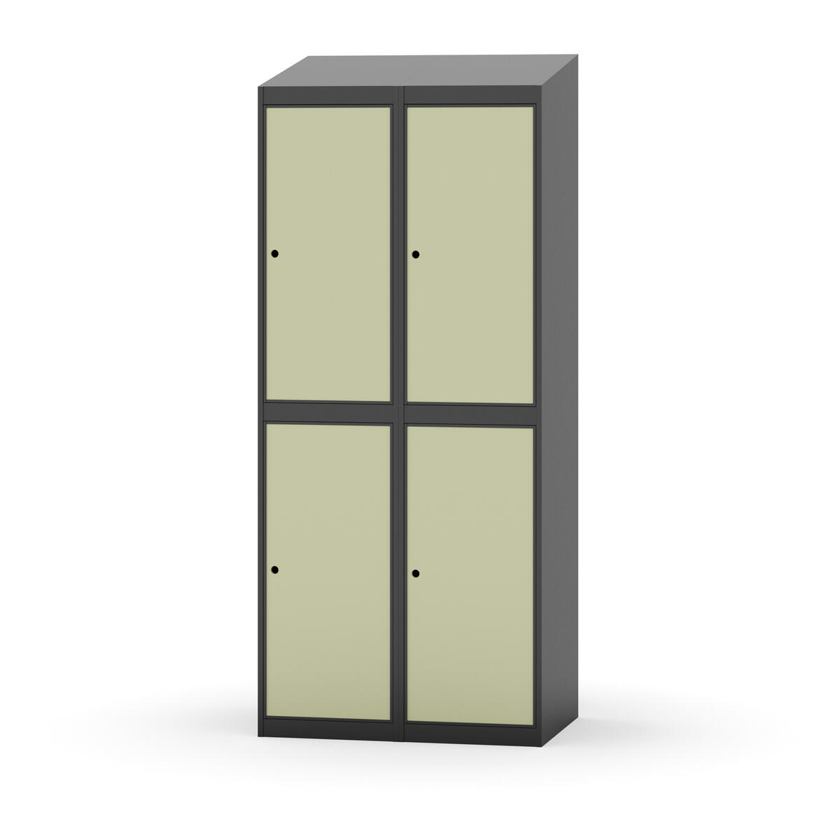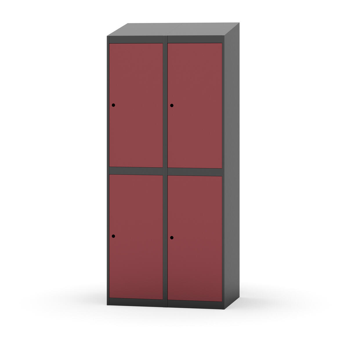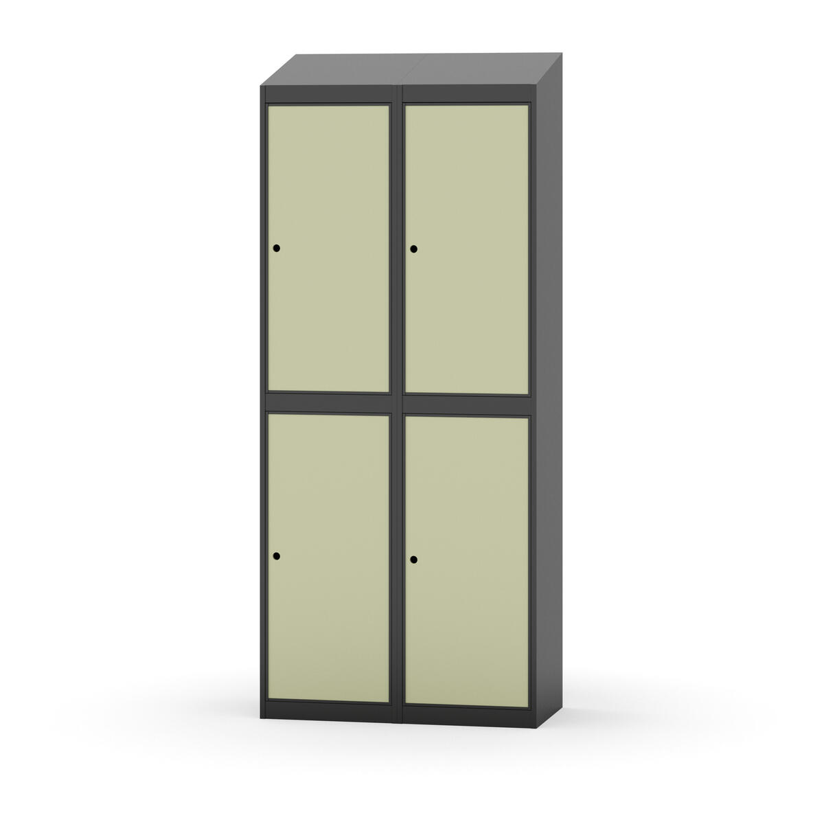 Täysin hitsattu runko. Valittavana pelti- tai korkeapainelaminaattipintainen ovi. Peltiovessa on pysäytin sekä teräsvahvike lukkoreiän ympärillä. Laminaattiovessa on teräskehys ja teräksinen pysäytin. Ovet aukeavat 90°. Sisällä on hylly ja vaatetanko kahdella kaksoiskoukulla. Kaapissa on tasainen pohja ilman kynnystä. Ilmastointireiät pohjassa ja katossa. Lukot ja sokkeli/jalusta tilataan erikseen omilla tuotenumeroillaan. Lukot tulevat asennettuna, sokkeli/jalusta asennetaan toimituksen yhteydessä.