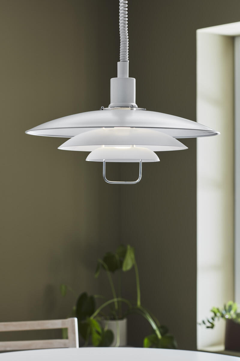 Capo -valaisimessa on maitolasivarjostin sekä alumiininväriset tai mattamustat yksityiskohdat, antaa tasaisen valon. Sopii kattokoukkuun. Himmennettävä. K29,4 cm ø30 cm, johto 3 m. E27-kanta, max 60 watt. Ei sisällä polttimoa.
