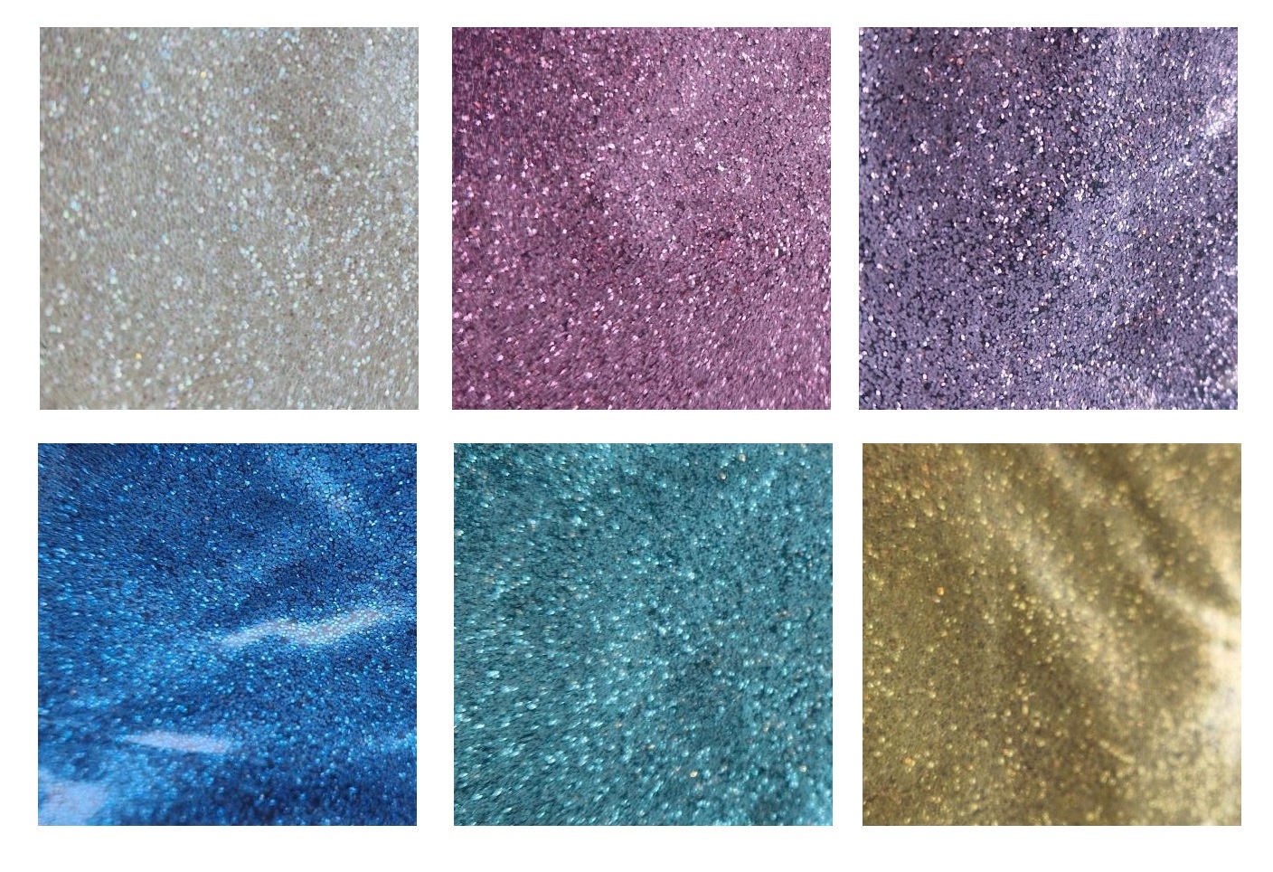 6 väriä. Kimallejauhetta kirkkaissa metalliväreissä. Valmistettu selluloosapohjaisesta täysin biohajoavasta biomuovista. Toimitetaan sirotepurkeissa. Koko 0,3 mm. Yli 3-vuotiaille.