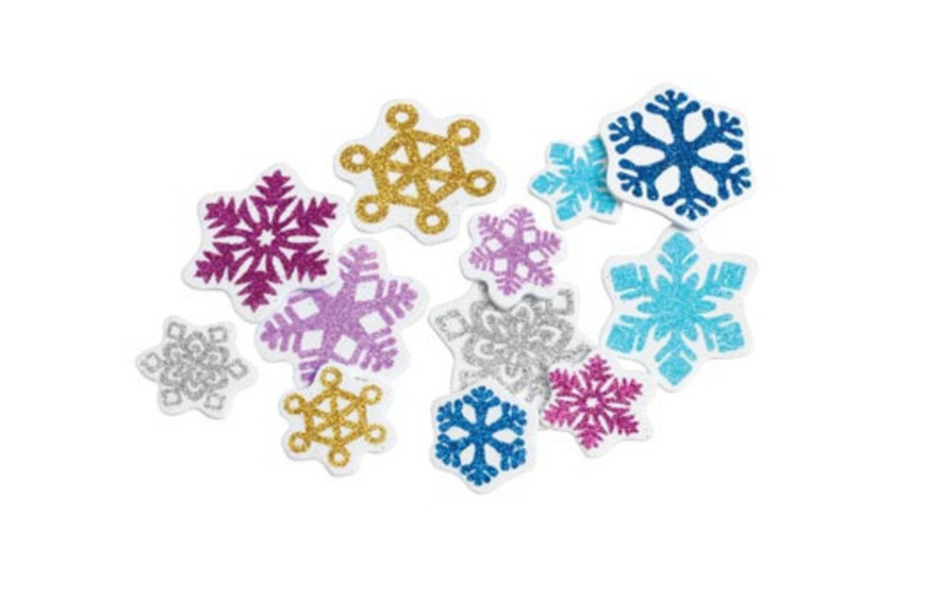 Noin 420 kpl. Pakkauksessa erikokoisia ja -värisiä kukkia, palmuja ja ympyröitä. Koko: 15 – 40 mm. Sopivat hyvin korttien, rasioiden ja kehysten koristeluun. EVA-muovia.