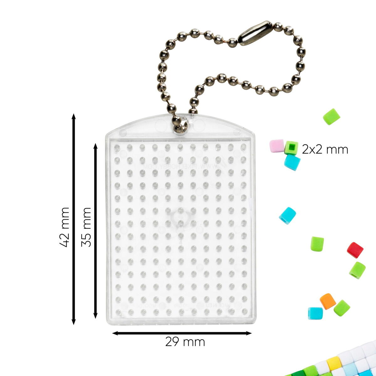 Avaimenperä, pohjalevy pikselihelmille. Mitat: 3 x 4 cm, renkaan ø 2,9 cm.