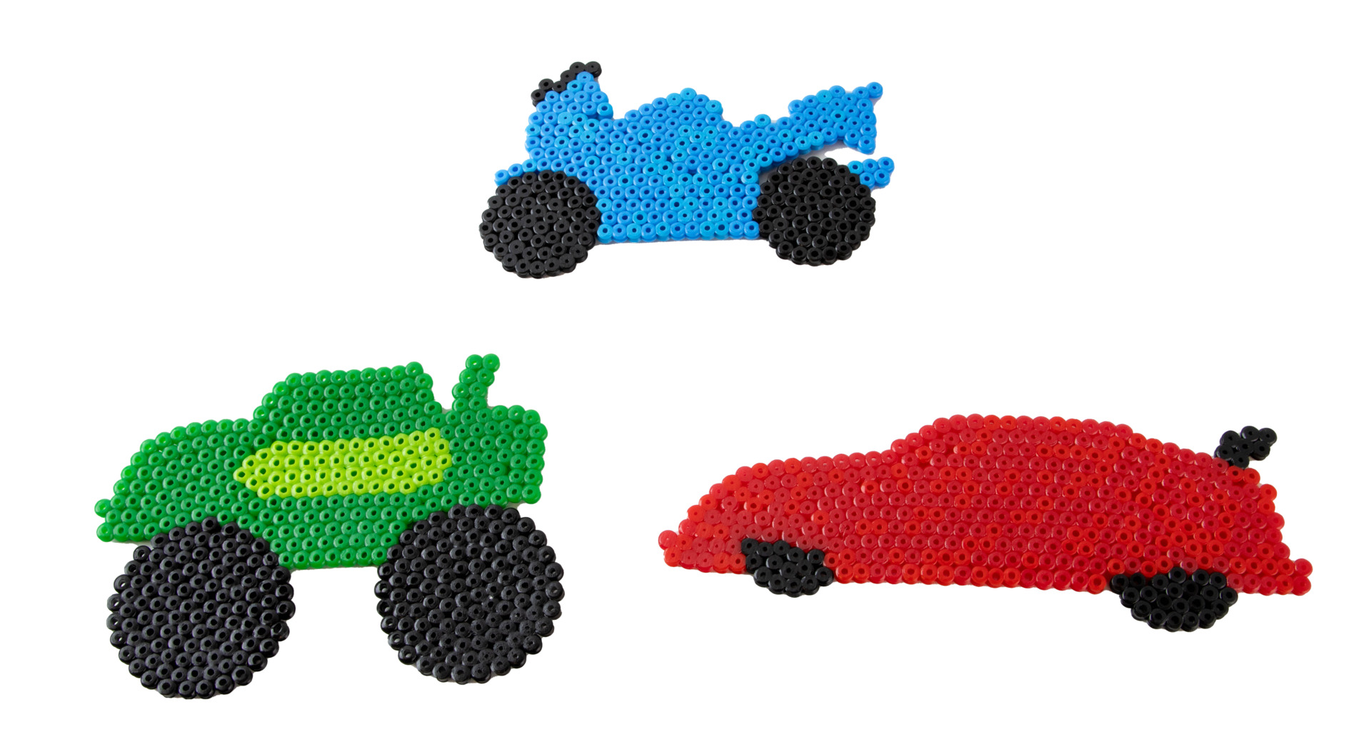 Helmialustat midi-kokoisille helmille. Läpinäkyvää polystyreenimuovia. Mitat: monsteriauto 159 x 116 mm, urheiluauto 206,6 x 75,5 mm ja moottoripyörä 148 x 91 mm.