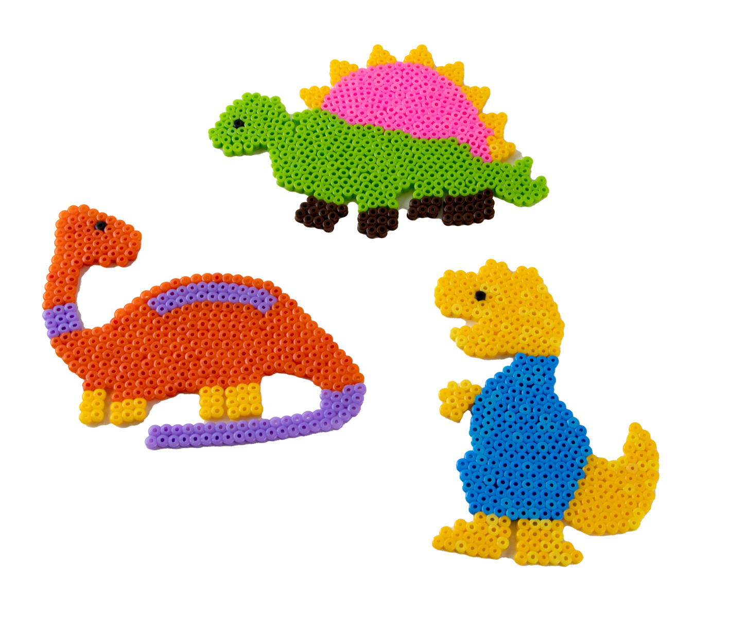 Helmialustat midi-kokoisille helmille. Läpinäkyvää polystyreenimuovia. Mitat: tyrannosaurus 119 x 157 mm, stegosaurus 179 x 123 mm ja brontosaurus 158 x 135 mm.