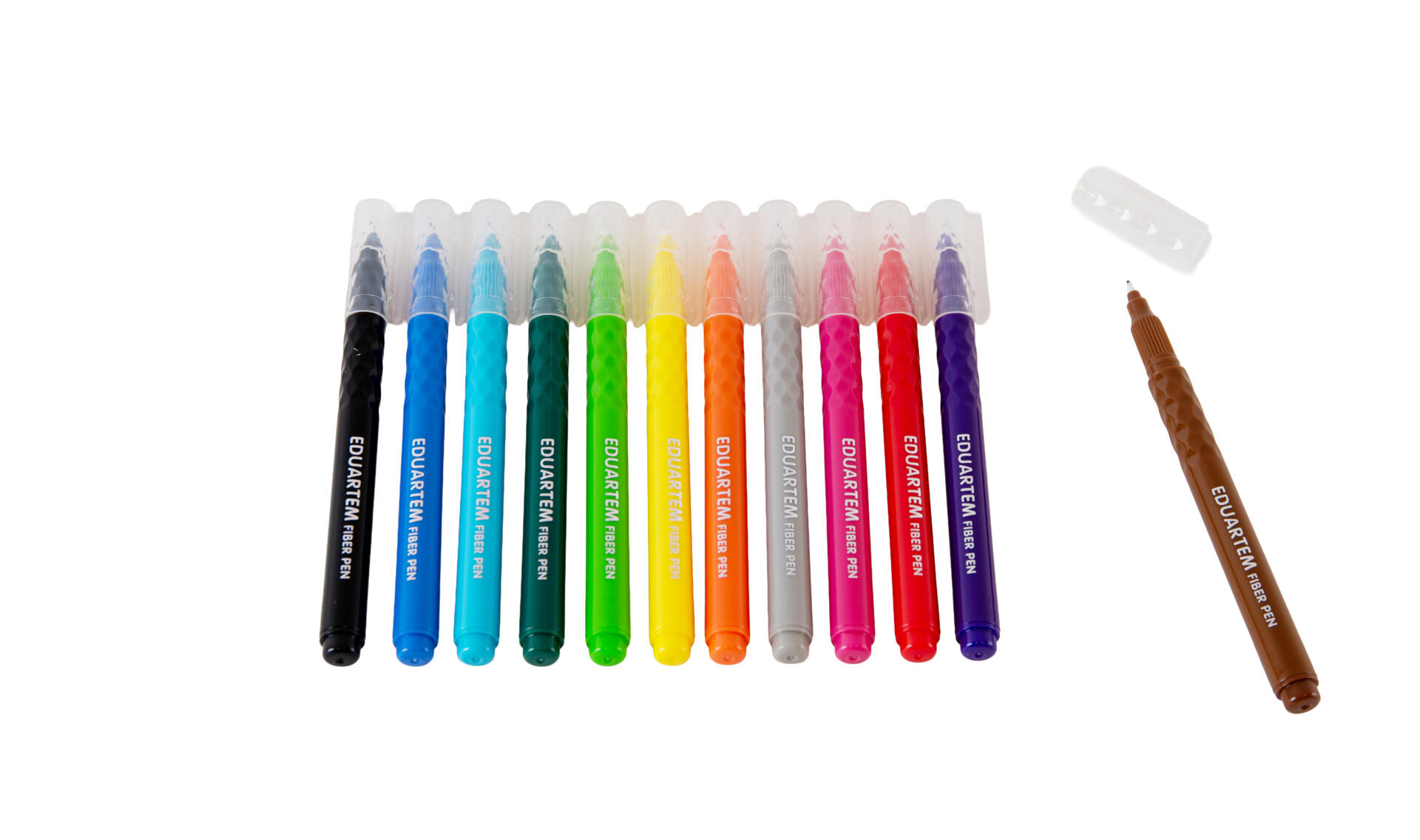 Suurpakkauksessa 144 kirkkaanväristä kuitukärkikynää, 12 kpl per väri. Mukana kätevä säilytyslaatikko. Kynien varret ovat 71 % kierrätysmuovia ja niissä on sisään painumaton kärki ja ilmareiät korkissa. Pakkauksessa seuraavat värit: keltainen, oranssi, punainen, violetti, vaaleansininen, sininen, vaaleanvihreä, vihreä, vaaleanpunainen, ruskea, harmaa ja musta. Tuoreet väritahrat lähtevät vesipesussa, mutta vaatteiden ja työtasojen suojaamista suositellaan aina. Kynän pituus 140 mm, kärjen paksuus 2,8 mm. Yli 3-vuotiaille.
