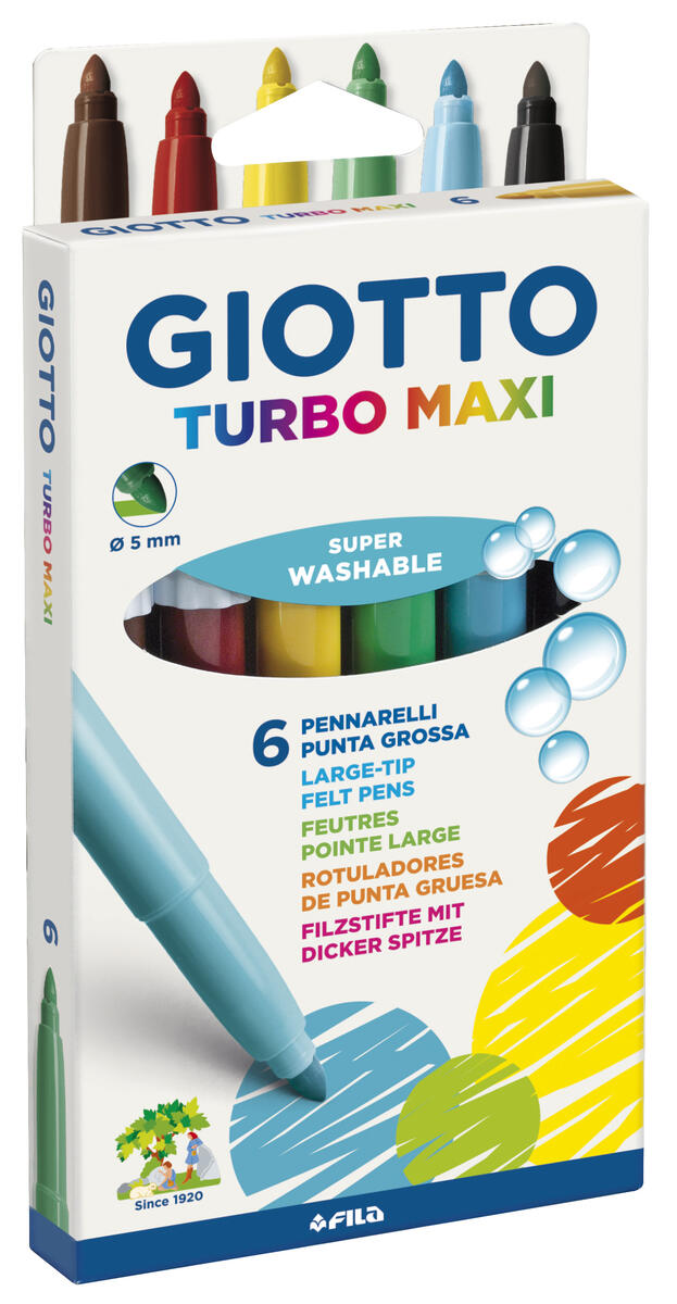 Giotto-värikynät ja teroitin. Kirkkaat, pehmeät värit. Soveltuvat pienille lapsille. Väri poispestävä. Värilyijyn Ø 7 mm, varren Ø 13 mm. Pituus 10 cm. Yli 2-vuotiaille.