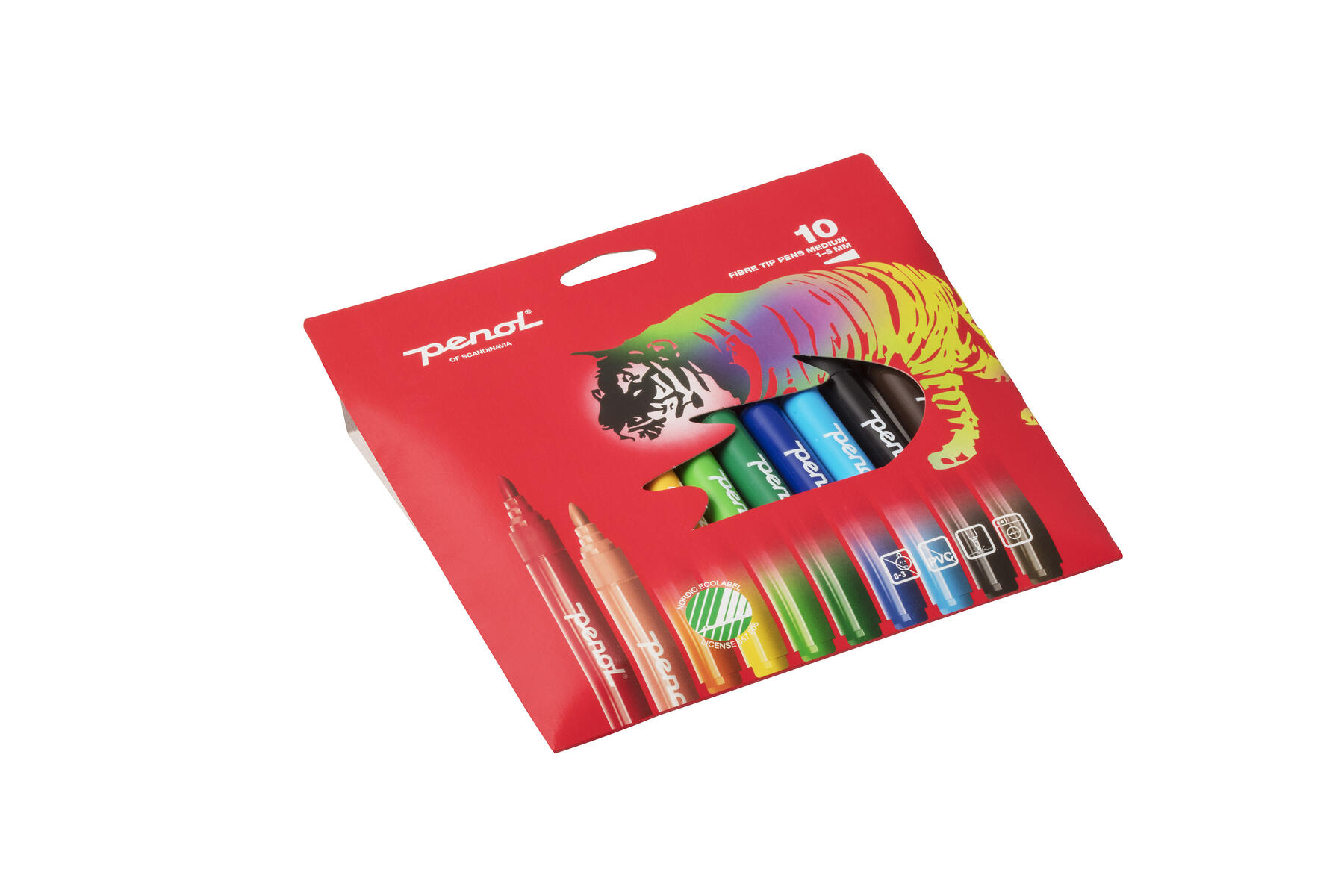 Vesipohjaiset kuitukärkikynät, joilla on Joutsen-ympäristömerkki. Sopivat hyvin piirtämiseen ja värittämiseen. Tuoreet väritahrat irtoavat käsistä ja tekstiileistä vesipesulla. 1-5 mm kärki, ventiloitu korkki. Yli 3-vuotiaille.