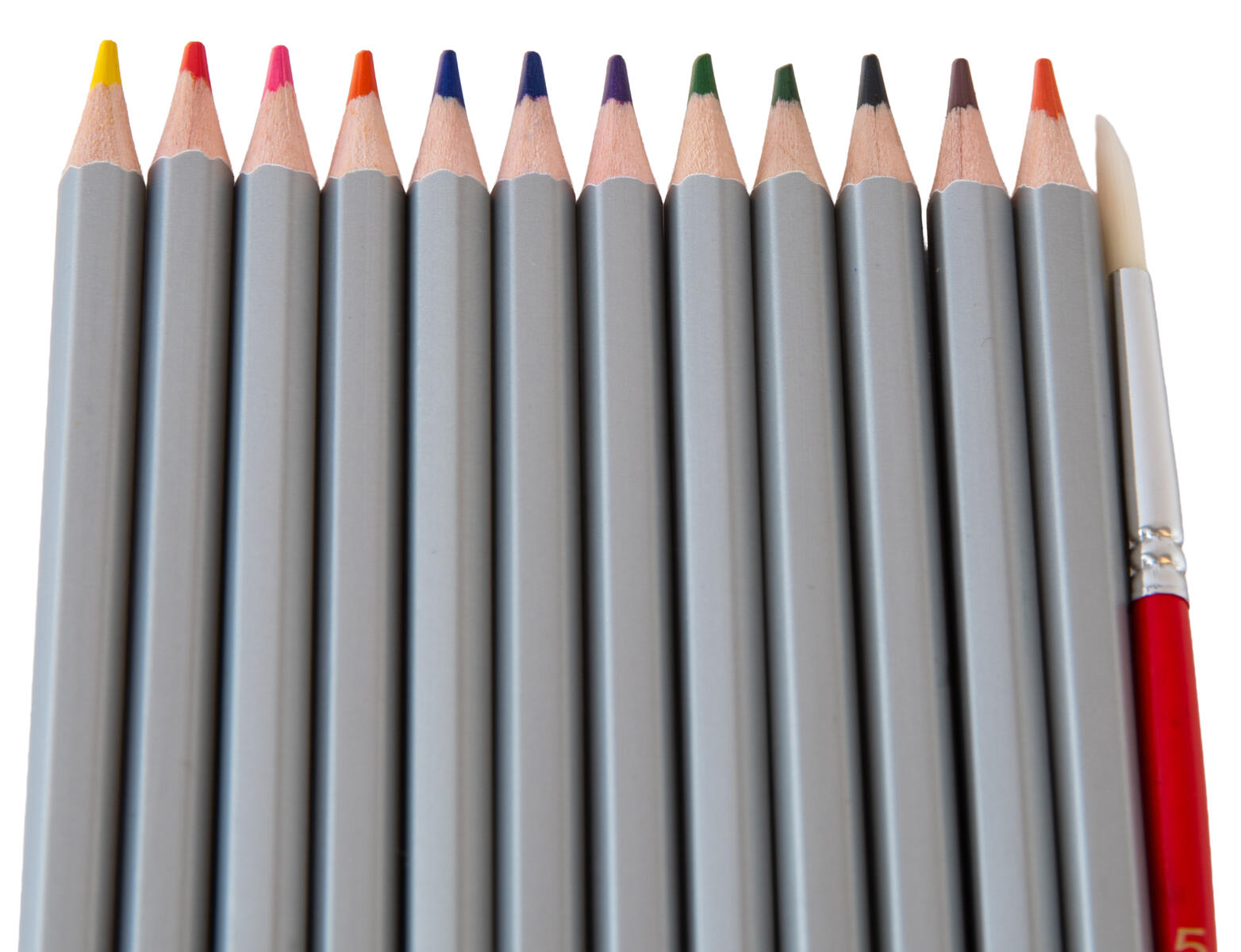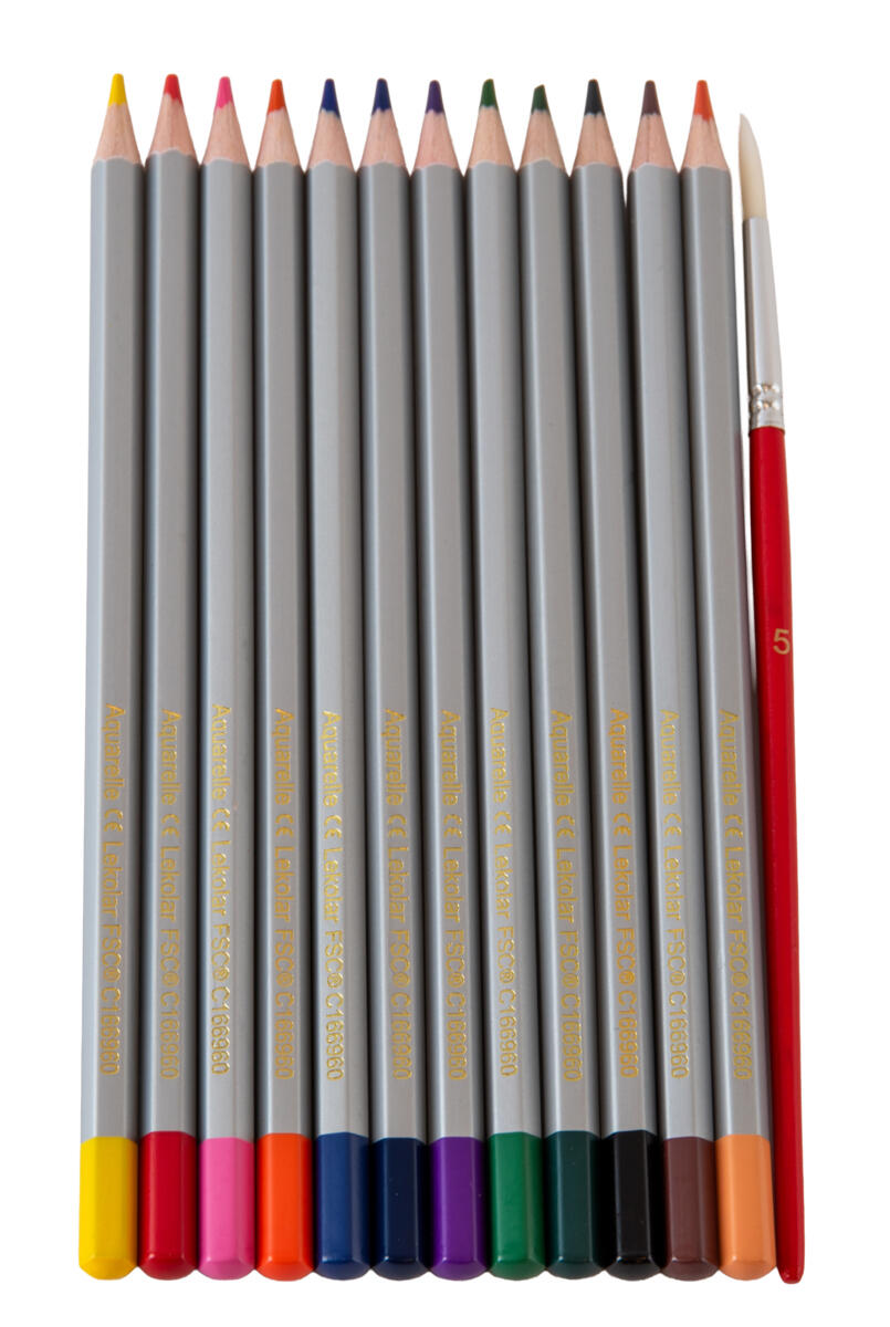 Akvarellivärikynät sopivat sekä värittämiseen että akvarellimaalauksiin. Erittäin pehmeä ja kestävä lyijy on valmistettu korkealaatuisesta väripigmentistä. Värejä voi sekoittaa keskenään. Väreistä tulee läpikuultavia, kun värien päälle sivellään vettä. Lyijy ø 2,9 mm. Kynän varsi ø 7 mm, kuusikulmainen, lakattu varsi. Pituus 175 mm. FSC-sertifioitu. Sisältää värit: violetti, aprikoosi, oranssi, vihreä, tummanvihreä, sininen, tummansininen, punainen, roosa, musta, keltainen ja ruskea sekä siveltimen.