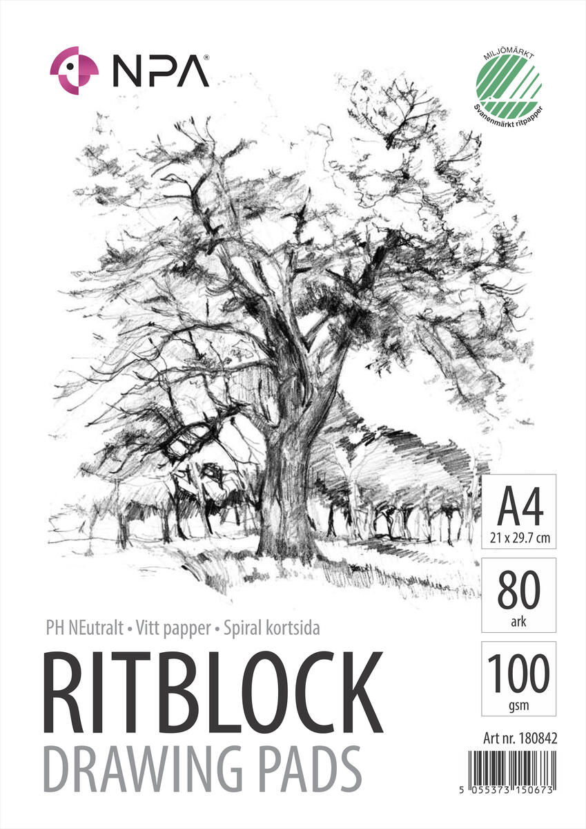 20 arkkia/lehtiö. Valkoinen paperi, joka soveltuu luonnosteluun ja piirtämiseen. PH-neutraalia ja hiokkeetonta paperia. Joutsenmerkki.