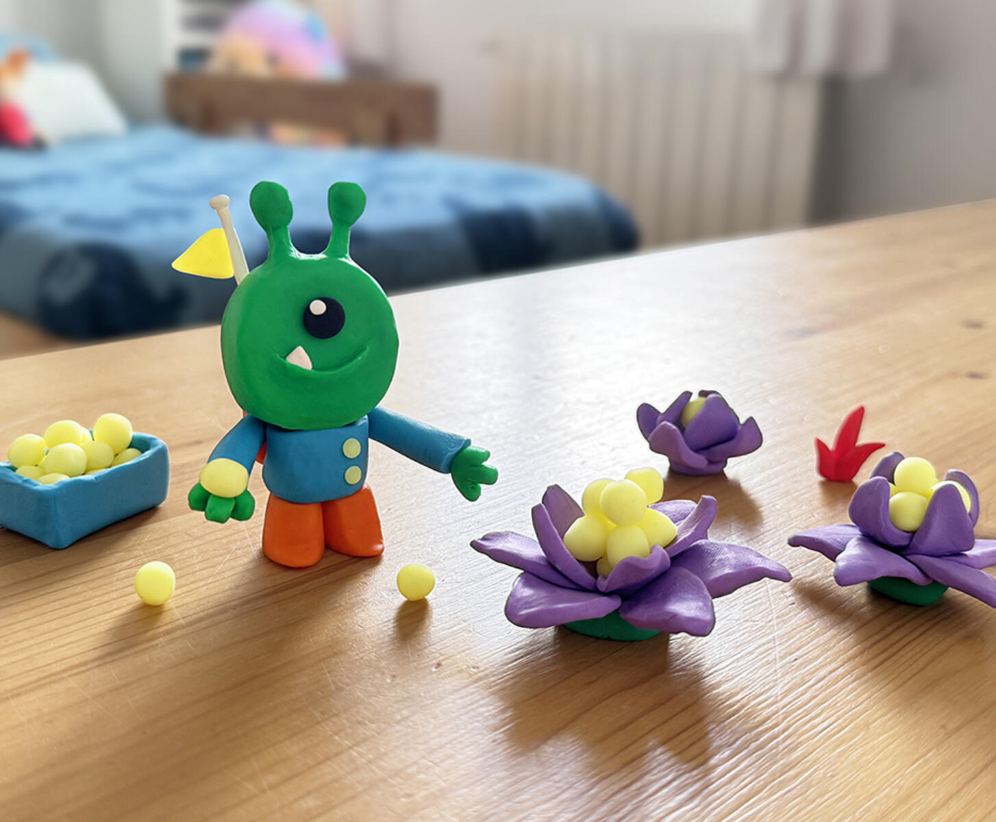 Pehmeä, helposti muovattava muovailuvaha, joka ei kuivu. Pakkaus sisältää värit keltainen, oranssi, punainen, sininen, vihreä, vaaleanruskea, musta ja valkoinen. Ei poltettava. Yli 3-vuotiaille.