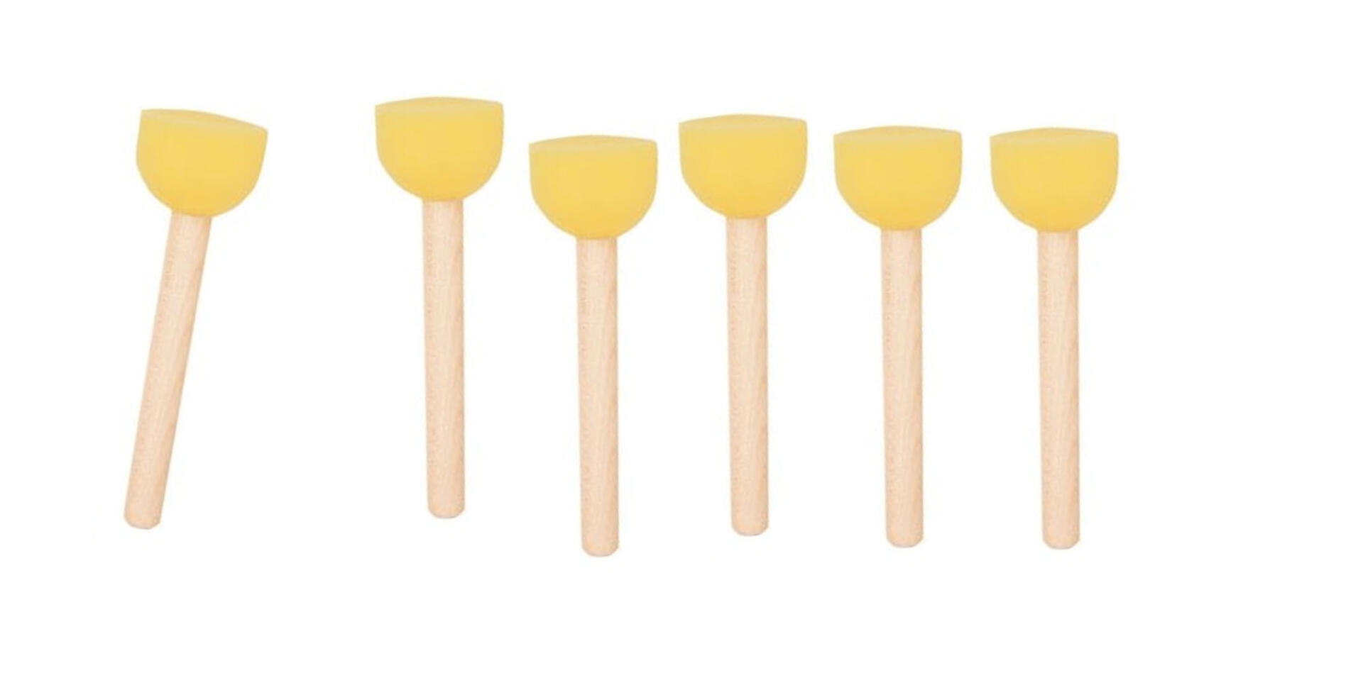 Suurpakkaus, jossa 10 kpl kutakin kokoa: Ø 1,2 cm, Ø 1,9 cm, Ø 2,6 cm ja Ø 4 cm. Puuvarsi, jonka päässä vaahtomuovityyny. Soveltuu käytettäväksi useimmille pinnoille kuten kankaaseen ja lasille. Sienen avulla voi myös levittää väriä leimasimelle.
