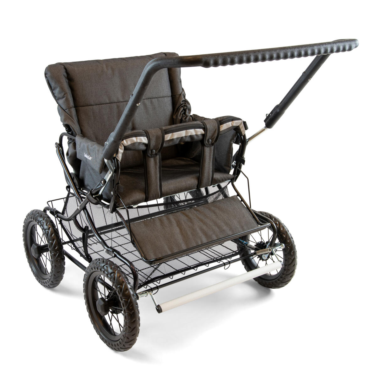 Kaksostenrattaat Lekolar, selkä menosuuntaan, kangas
