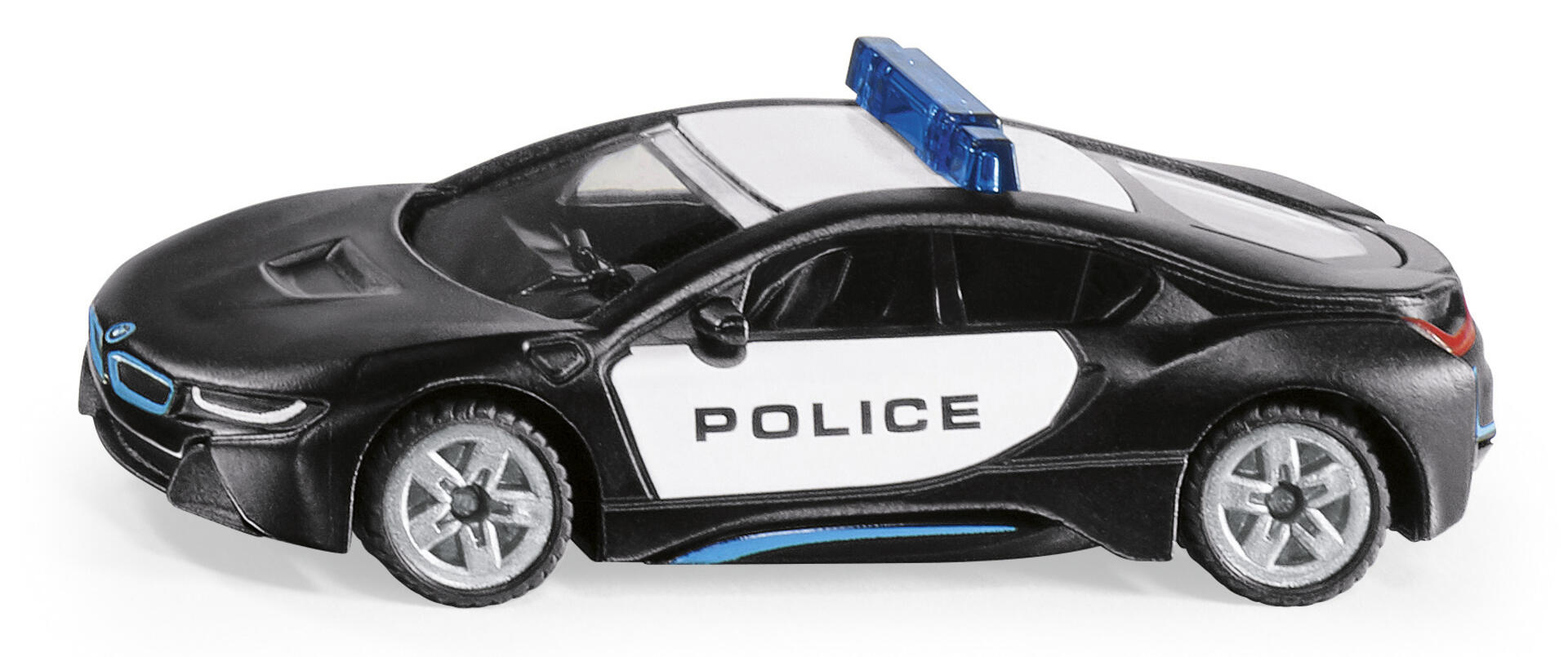 Metallinen poliisiauto muovisilla yksityiskohdilla. Pituus noin 7 cm. Yli 3-vuotiaille.