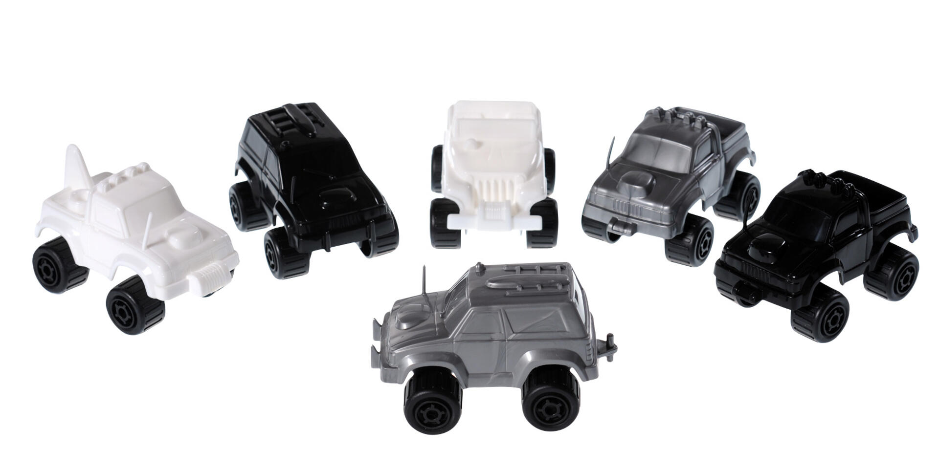 Sisältö: 18 sekalaista ajoneuvoa, joissa hiljaiset muovipyörät (LDPE). Mitat: esim. kuorma-auto 17 x 8 cm. Polyeteenimuovia. Konepesun kestävä. Yli 1-vuotiaille.