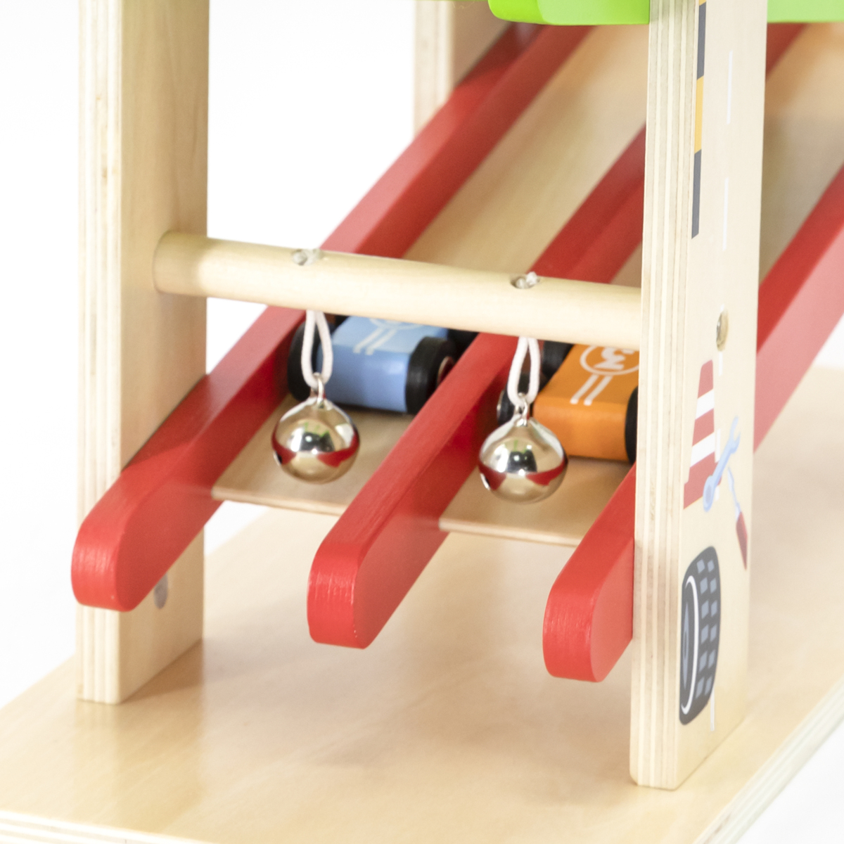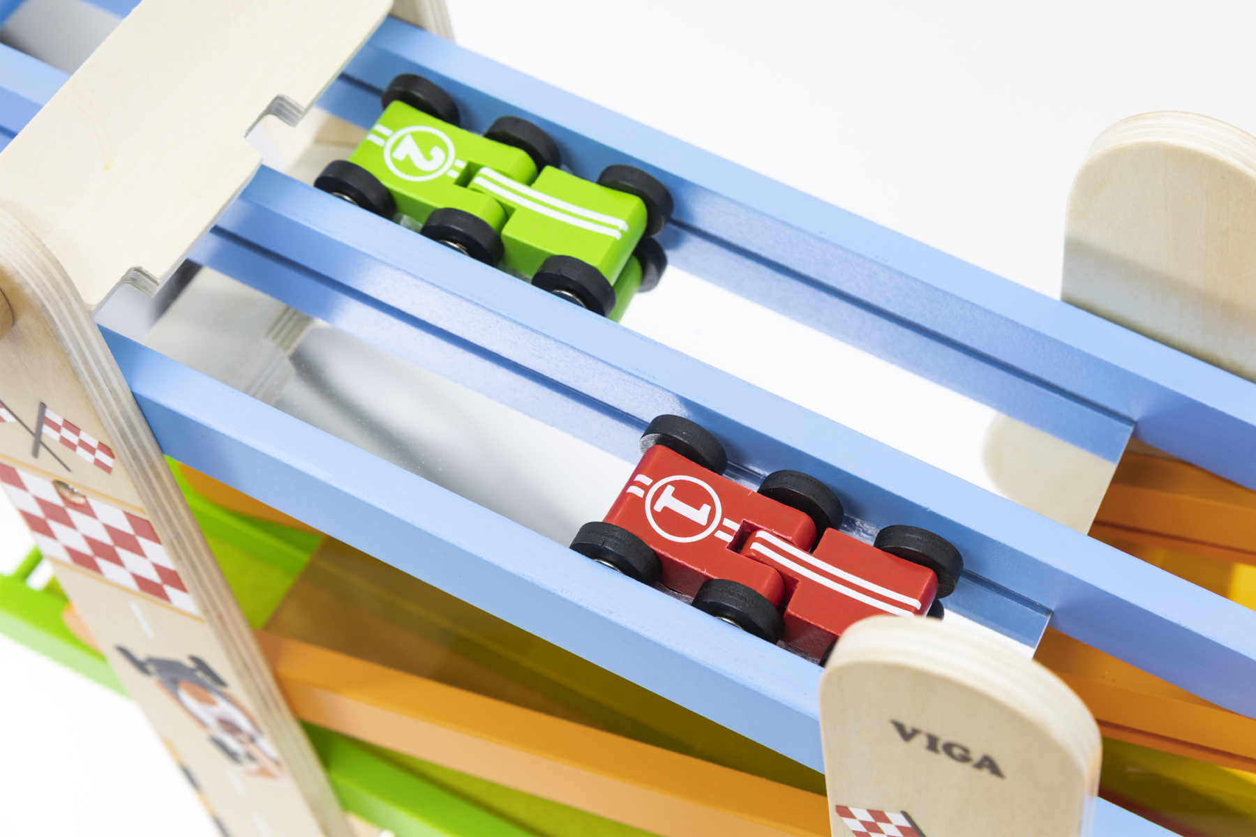 Hauska puinen autorata tuplaväylällä. Kilpaile nähdäksesi, kuka pääsee maaliin ensimmäisenä. Sarja sisältää 4 autoa. Mitat: 35 x 15 x 37 cm, auton mitat: 4-6 cm. Valmistettu FSC-merkitystä puusta. Yli 18 kk.