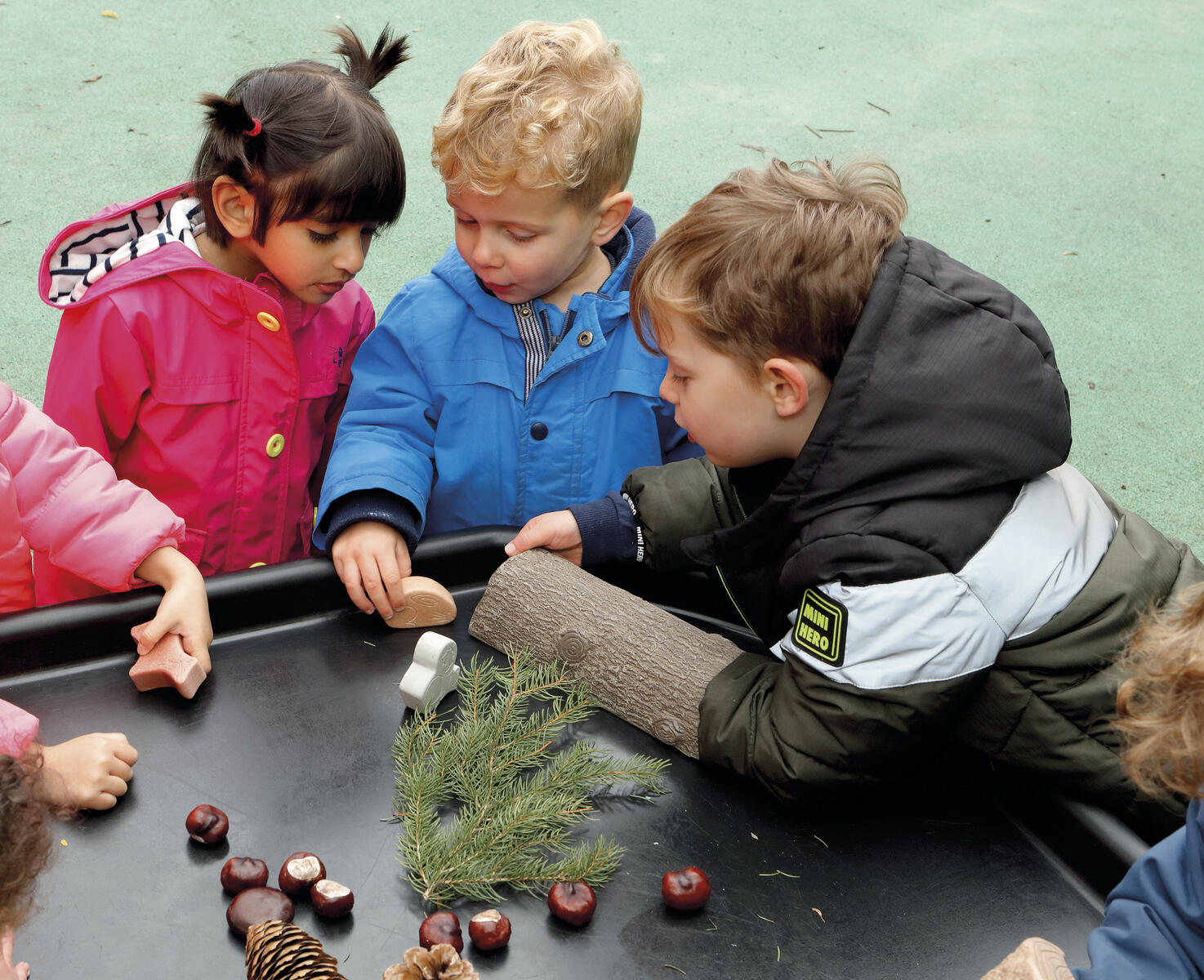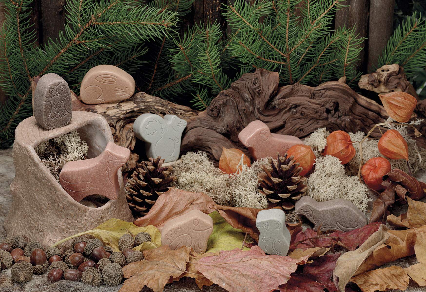 Metsän eläimet on valmistettu kivestä. Ne tuntuvat mukavilta kädessä ja kestävät ulkona vettä, hiekkaa ja savea. Hahmojen tunnistettavat muodot herättävät lasten mielenkiinnon. Sarja sisältää eläimet: kettu, sammakko, hiiri, saukko, pöllö, jänis, orava ja kauris. Korkeus noin 6 cm. Yli 2-vuotiaille.