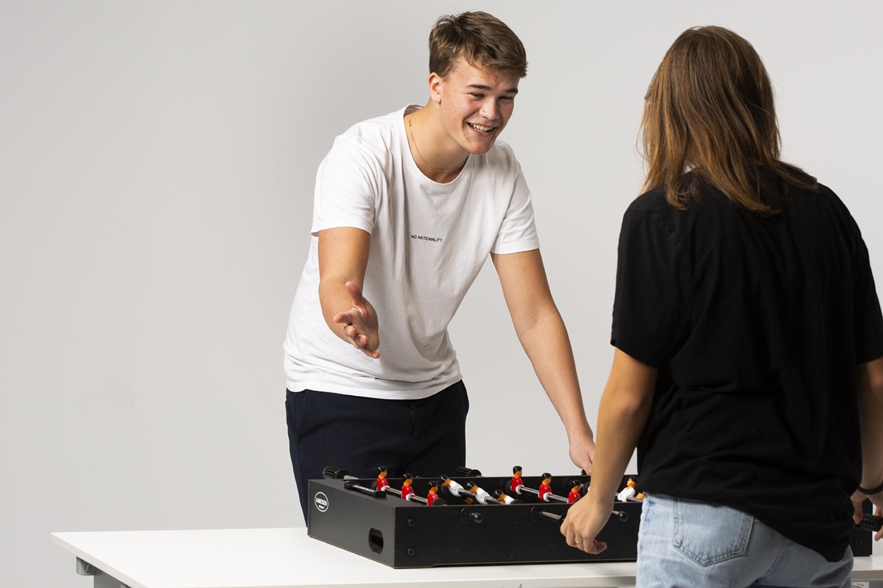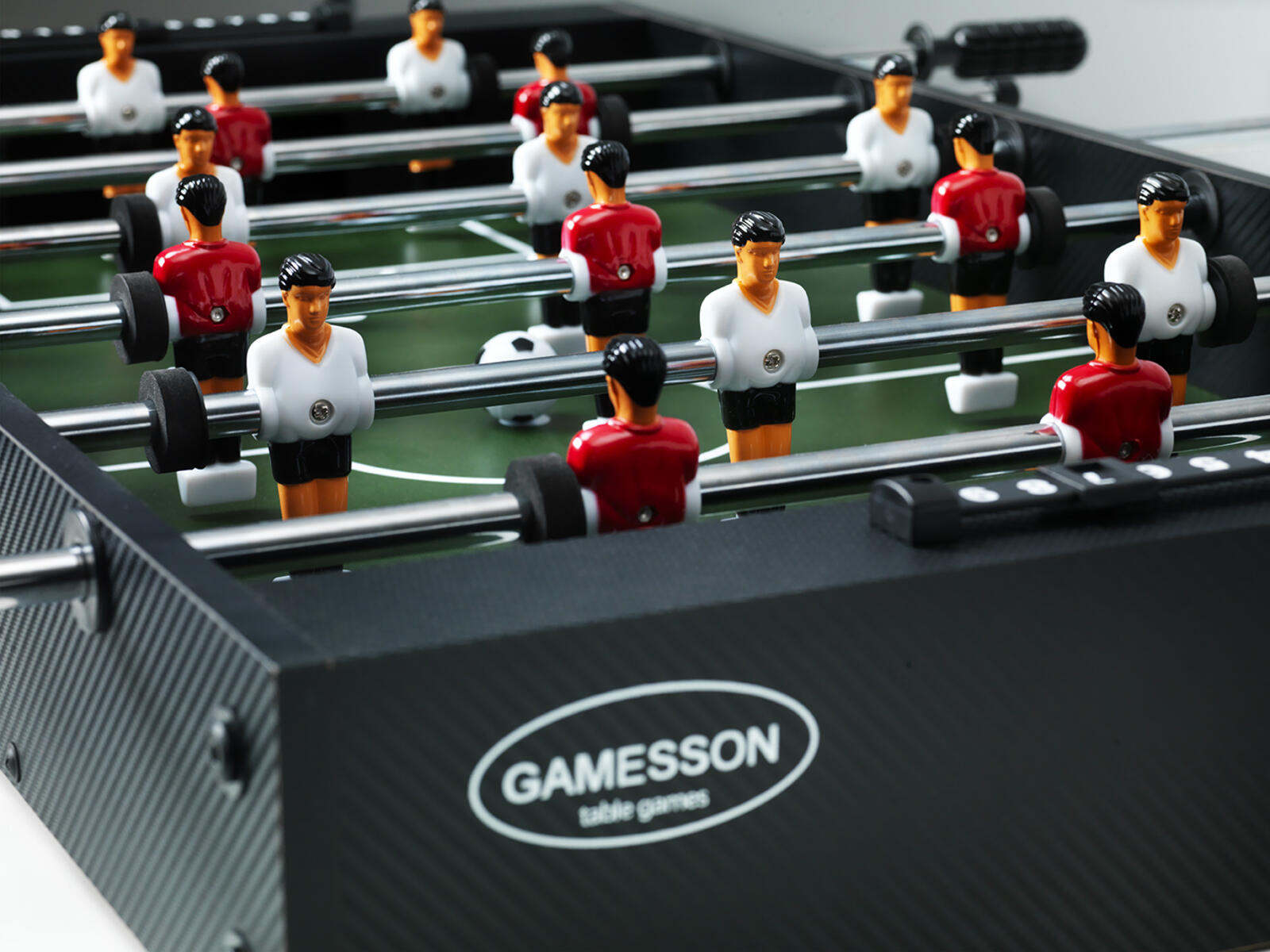 Vahvarakenteinen jalkapallopeli, joka kestää kovaakin käyttöä. Pelikentän nurkissa on kallistukset, jolloin pallo pysyy aina liikkeessä. Kenttä melamiinia, jalat metallia. Extra vahvat teleskooppitangot, jotka eivät tule ulos kentän toiselta puolelta. Pelaajien muodot takaavat parhaan mahdollisen pallokontrollin. Mukana 2 palloa (halkaisija 36 mm). Toimitetaan osina. Mitat: 136 x 76 x 91 cm. Paino 70 kg.