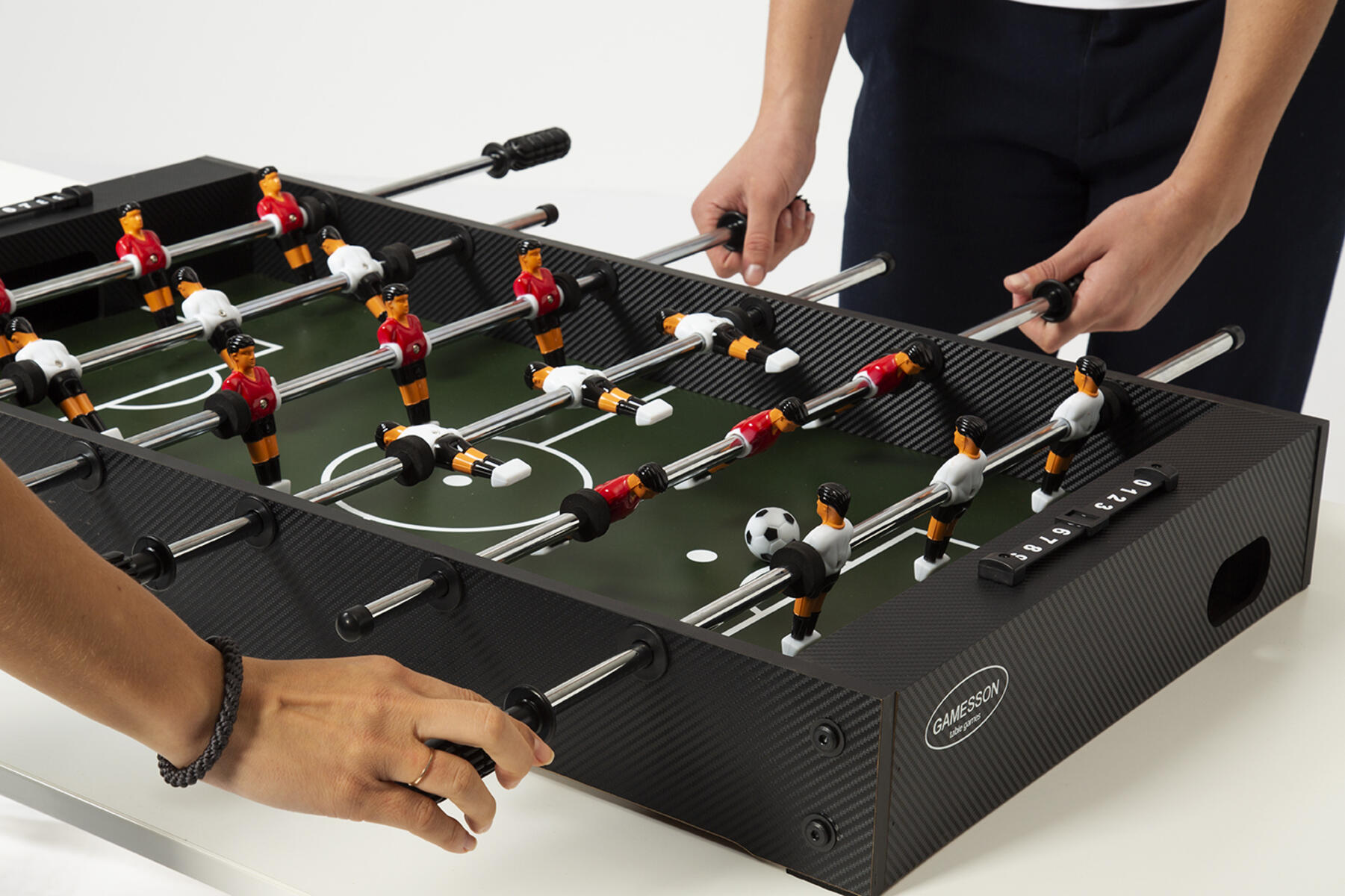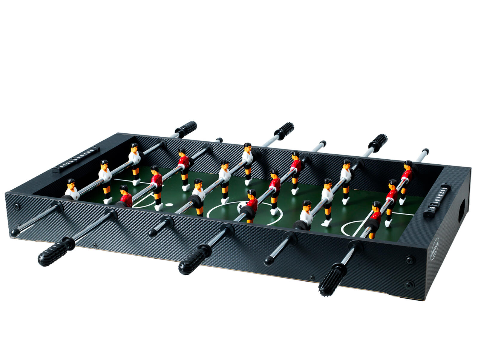 Jalkapallopeli pienemmässä mallissa, joka asetetaan olemassa olevalle pöydälle. Ulkomitat: 91 x 49 x 10 cm. Paino: 6 kg. Valmistettu MDF-levystä, teräksestä ja polyeteenistä. Yli 3-vuotiaille.