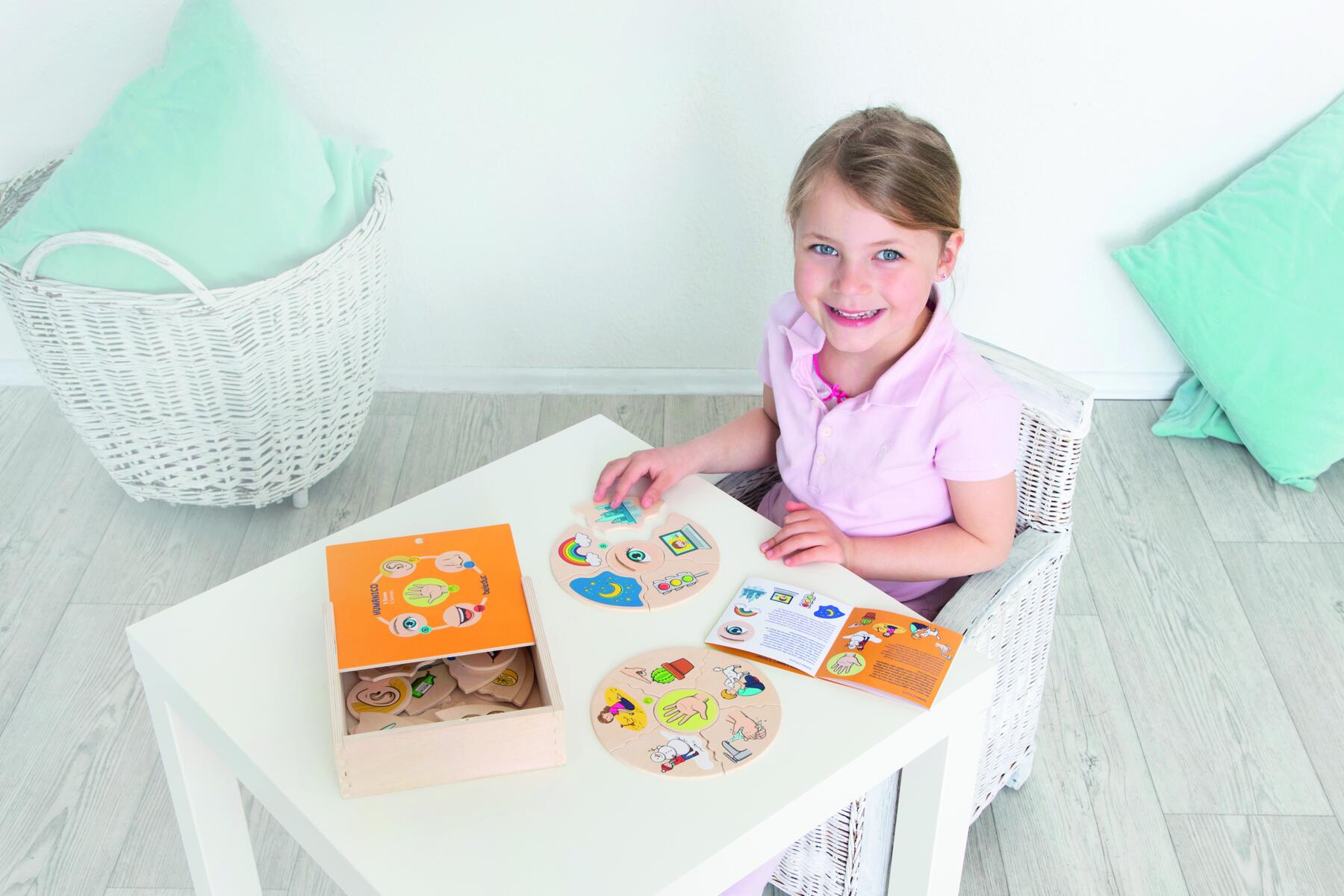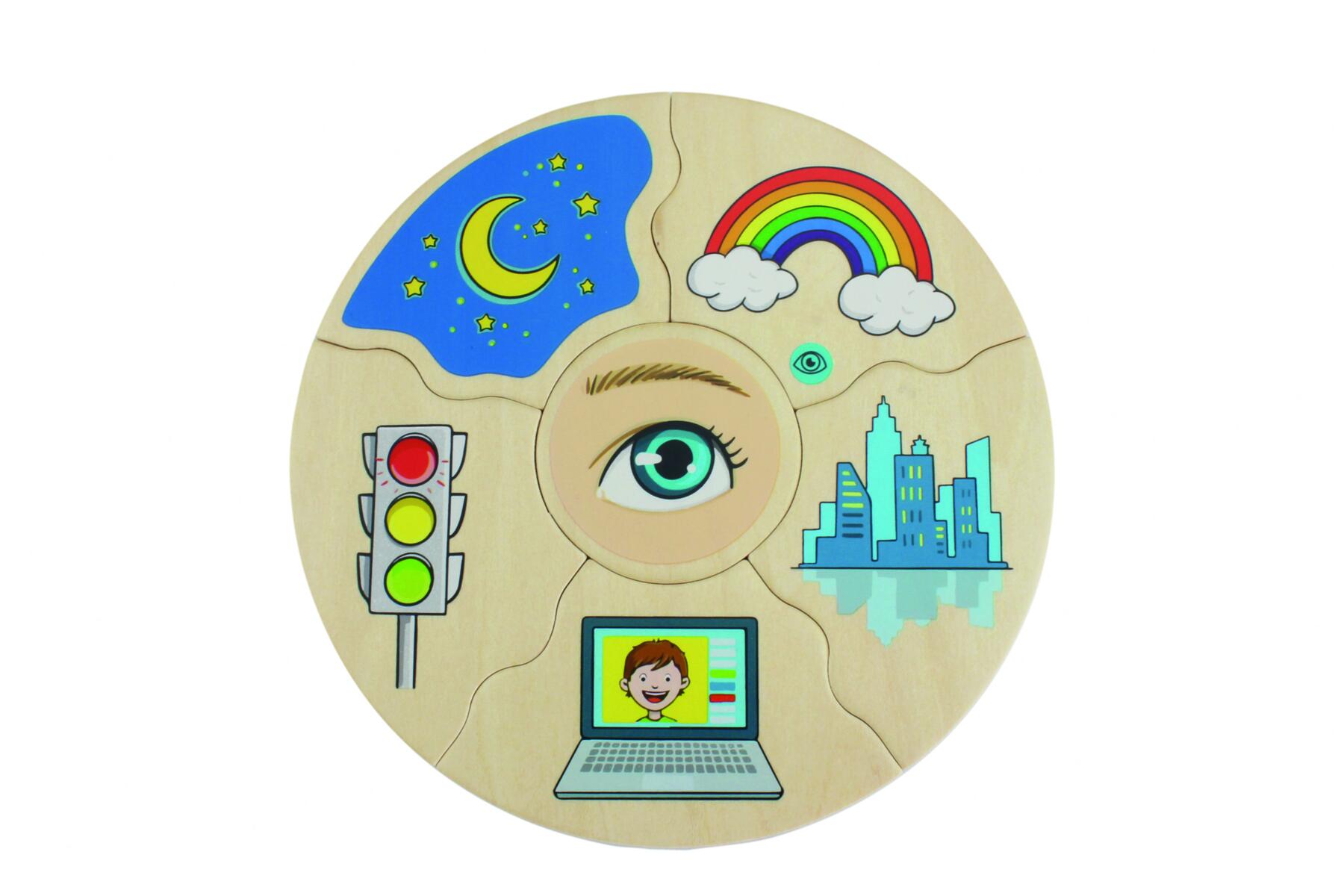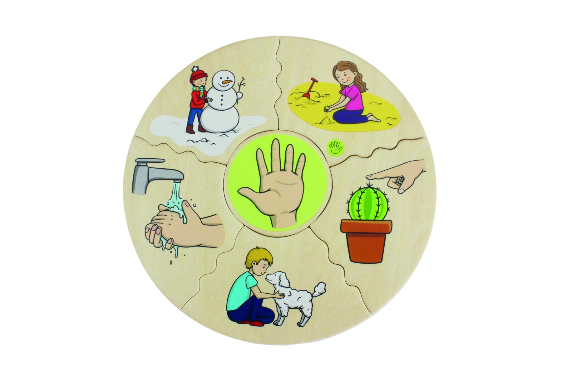 Hauska peli, jossa valitset keskimmäisen palan, käännät kaikki muut ylösalaisin ja sekoitat ne. Käännä laatat vuorotellen ja katso, kuka saa kakkunsa ensimmäisenä valmiiksi. Tässä versiossa tutkitaan erilaisia aisteja. Valmistettu FSC-sekoituksesta. Mitat: 16 cm. Yli 3-vuotiaille.