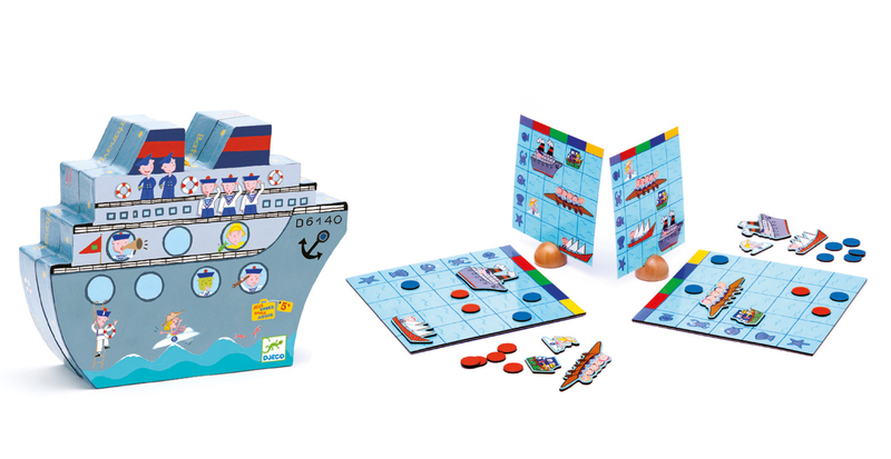 Voita taistelu upottamalla vastustajan laivasto ennen kuin omat aluksesi uppoavat. Sisältää: 2 magneettista pelilautaa, 2 settiä, joissa on 5 venettä, 22 sinistä pelinappulaa, 18 punaista pelinappulaa, 16 mallikorttia ja 2 puista jalustaa. 2 pelaajalle. Valmistettu FSC-merkitystä kartongista ja puusta. Suositellaan yli 5-vuotiaille.