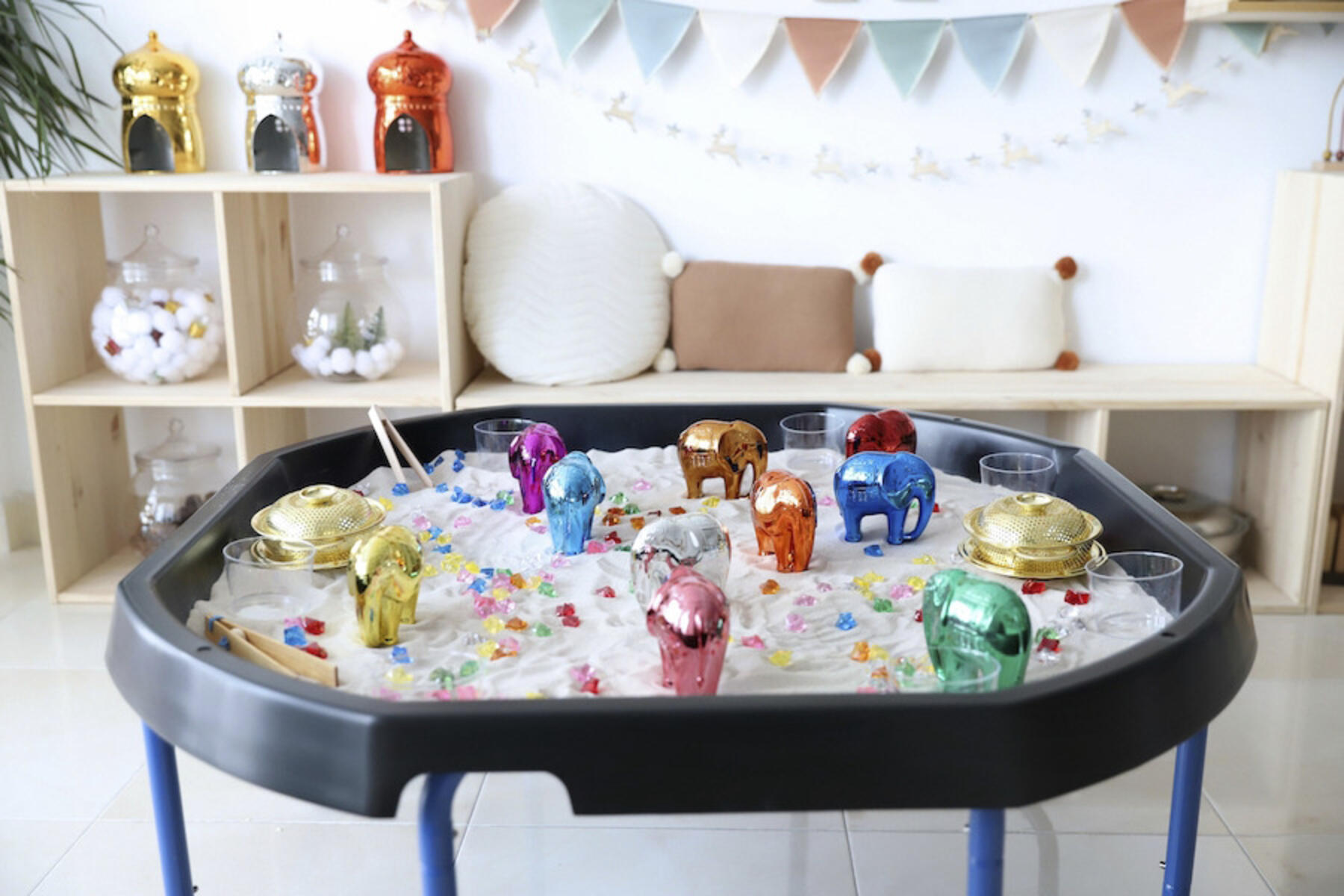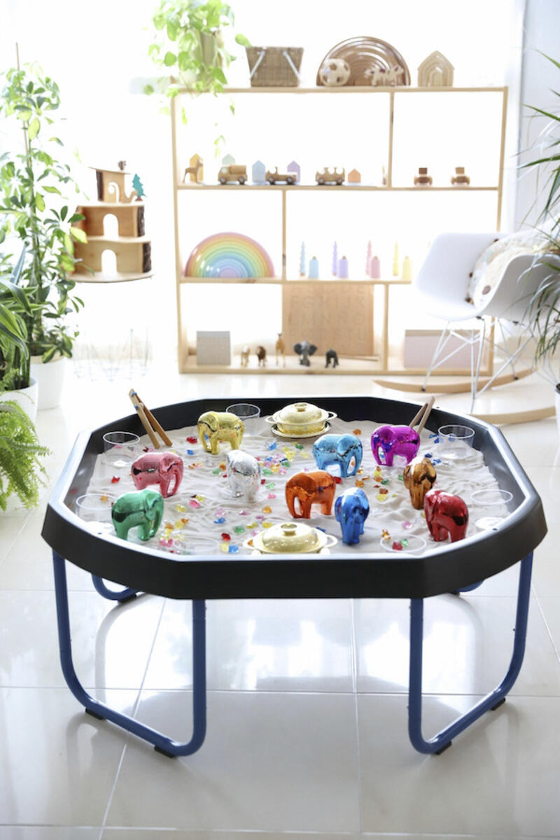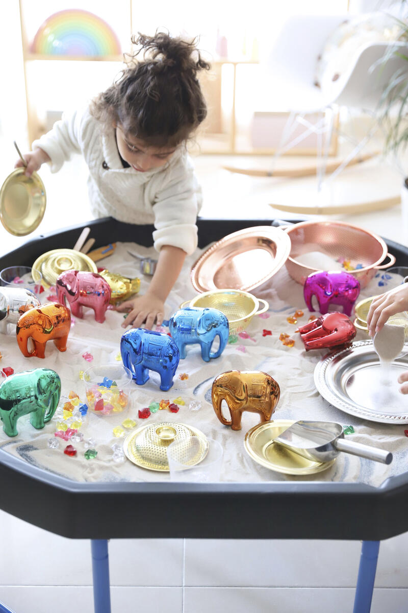 Kauniit, eksoottiset norsut marssivat jonossa. Kuinka monta niitä on? Jokaisen norsun kyljessä on numero, joten niitä voi käyttää matemaattisiin harjoituksiin. Lajittele, laske ja nimeä värit. ABS-muovia. Koko: 12 x 6 x 10 cm (L x S x K). Kaikenikäisille.