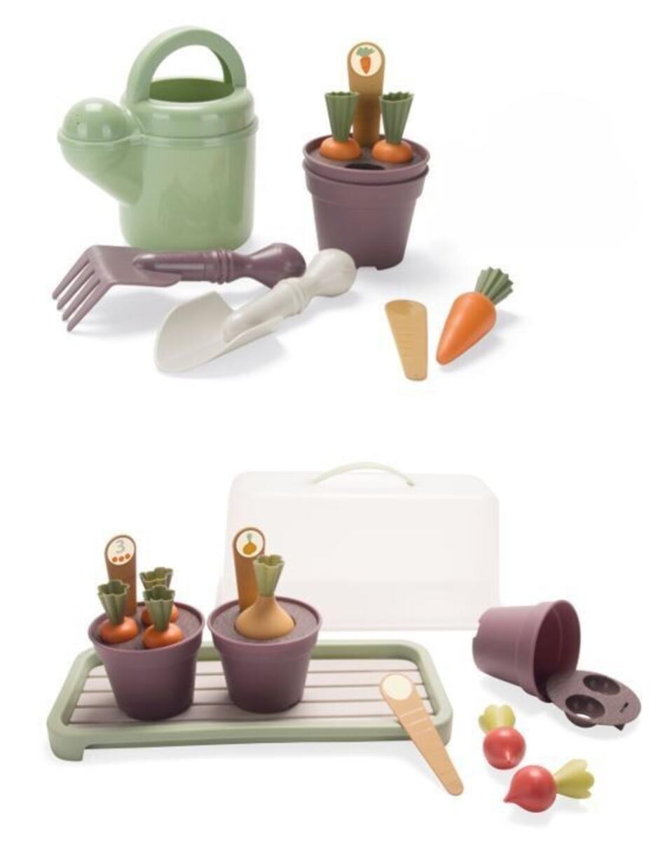 Setti sisältää kasvihuoneen, vihanneksia, ruukkuja ja tikut, jotka näyttävät mitä on kylvetty. Valmistettu PP-muovista. Kestää konepesun. Joutsenmerkitty, lisenssinumero 50950001. Yli 2-vuotiaille.