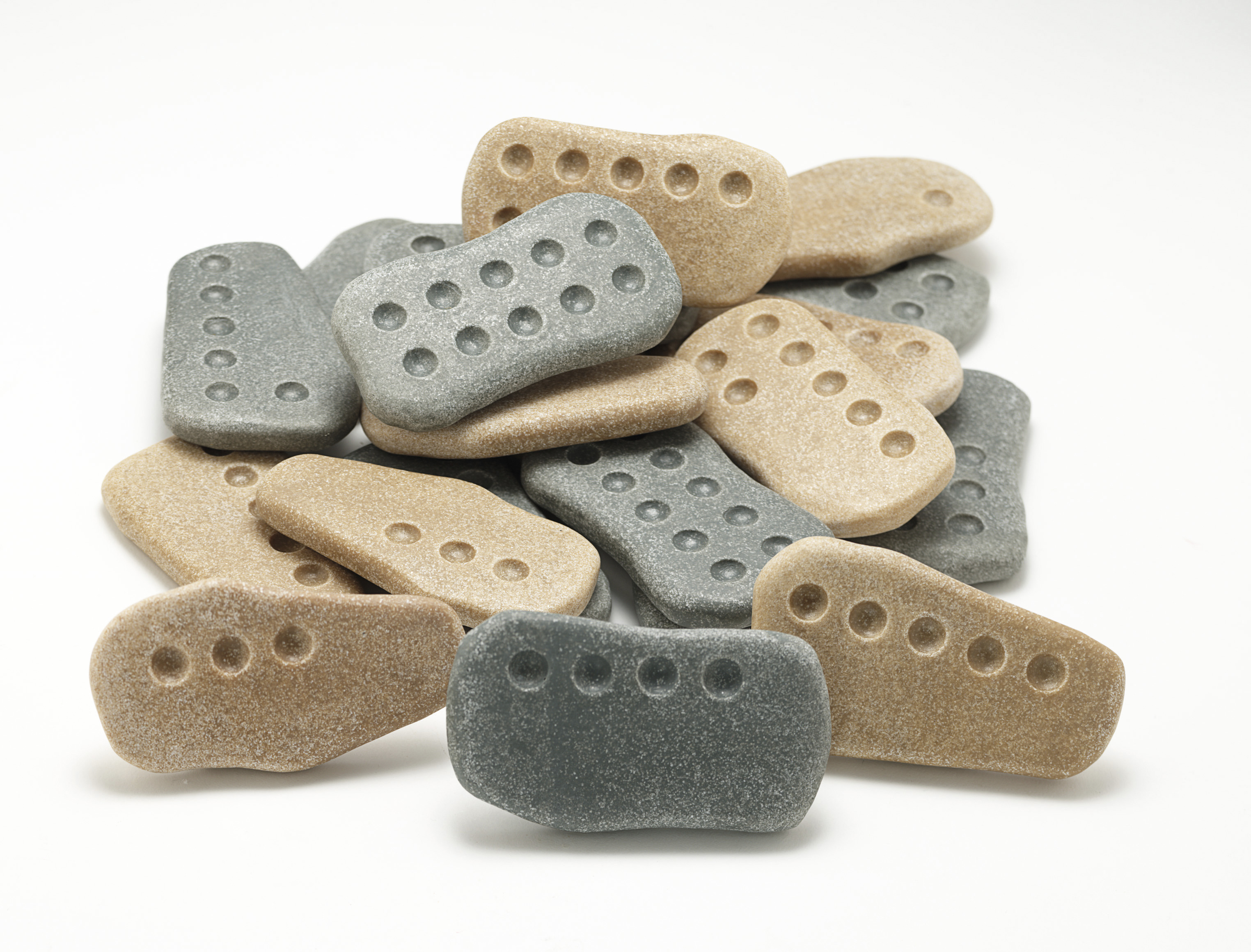 20 laskukiveä, jotka näyttävät numerot 1-10 eri kuvioiden kautta. Harjoittele laskemista, numeroiden tunnistusta ja lukujen erilaisia esitystapoja. Voidaan käyttää vedessä ja hiekalla. Kiven ja hartsin seosta. Yli 3-vuotiaille.