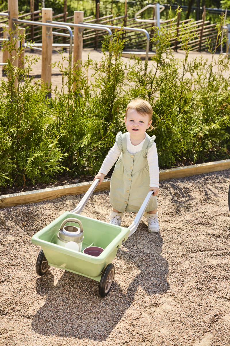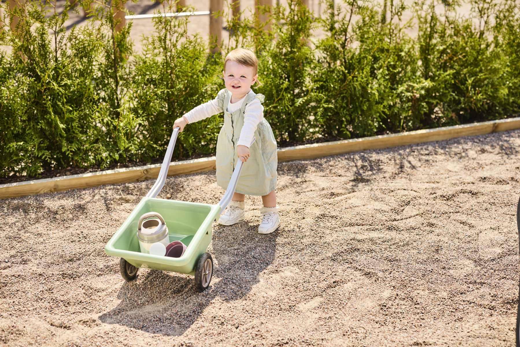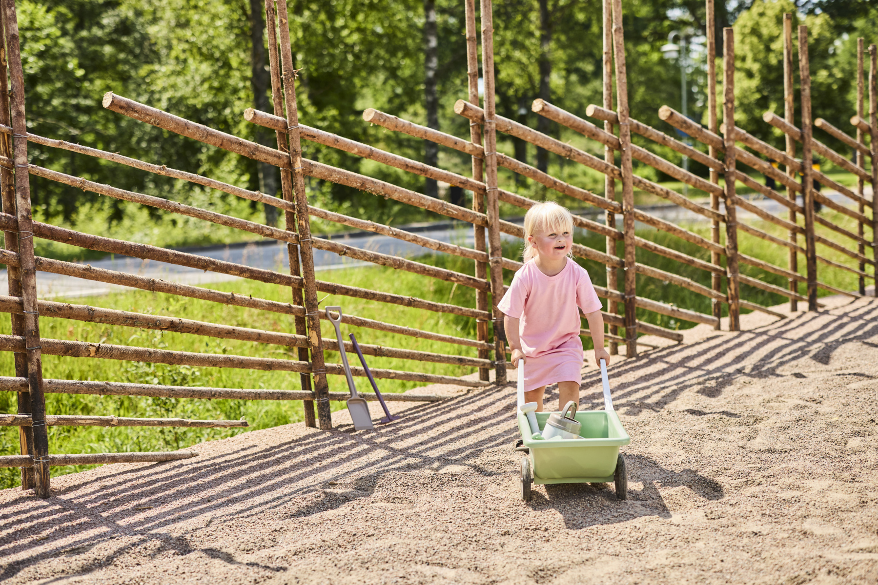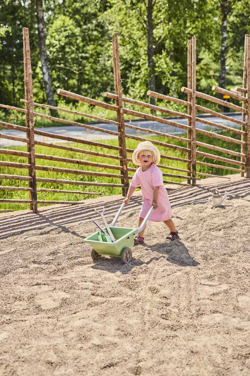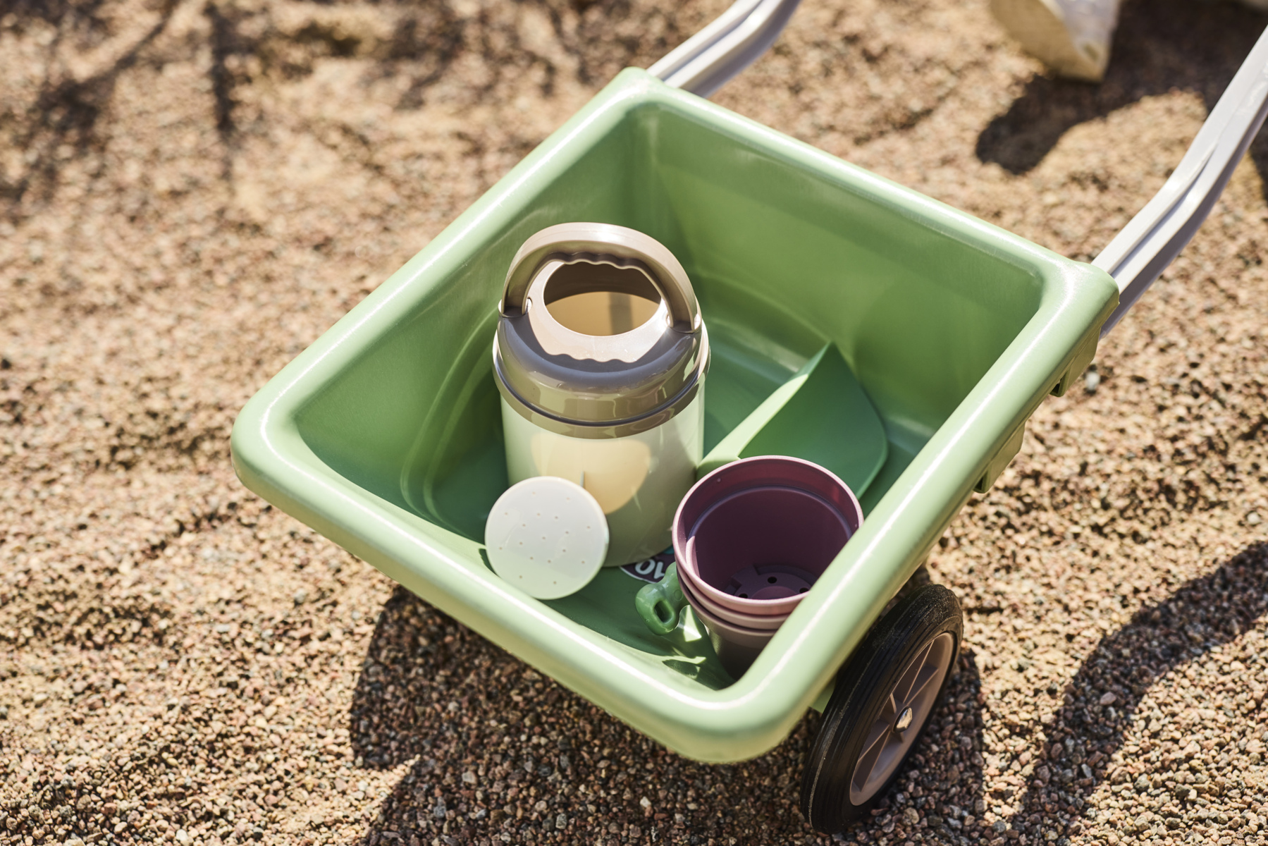 Tämä hiekkalelupakkaus sisältää mm. ajoneuvoja, ämpäreitä, siivilöitä, hiekkamuotteja ja muuta. Hiekkalelut on valmistettu biomuovista. Biopohjainen muovi on valmistettu pääosin sokeriruo’osta ja on 100-prosenttisesti kierrätettävä. Lelut kestävät pakkasta ja ne voi pestä tiskikoneessa. Joutsenmerkki, lisenssinumero 50950001. Yli 10 kk.