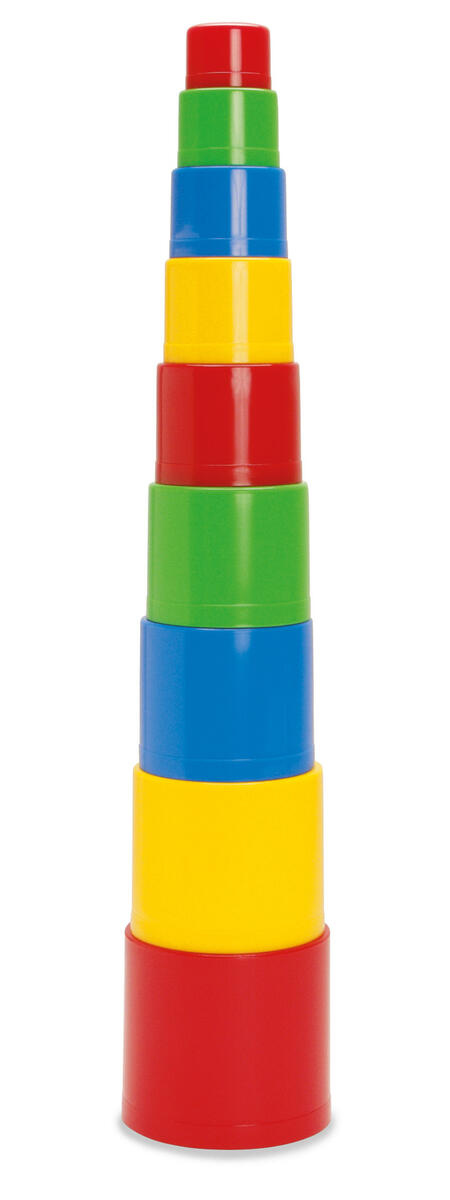 Pinoa kupit korkeaksi torniksi tai laita ne sisäkkäin. Mitat: korkeus 4-10 cm, Ø 4-10 cm. Materiaali: PE-muovi. Joutsenmerkki, lisenssinumero 50950001. Yli 1-vuotiaille.