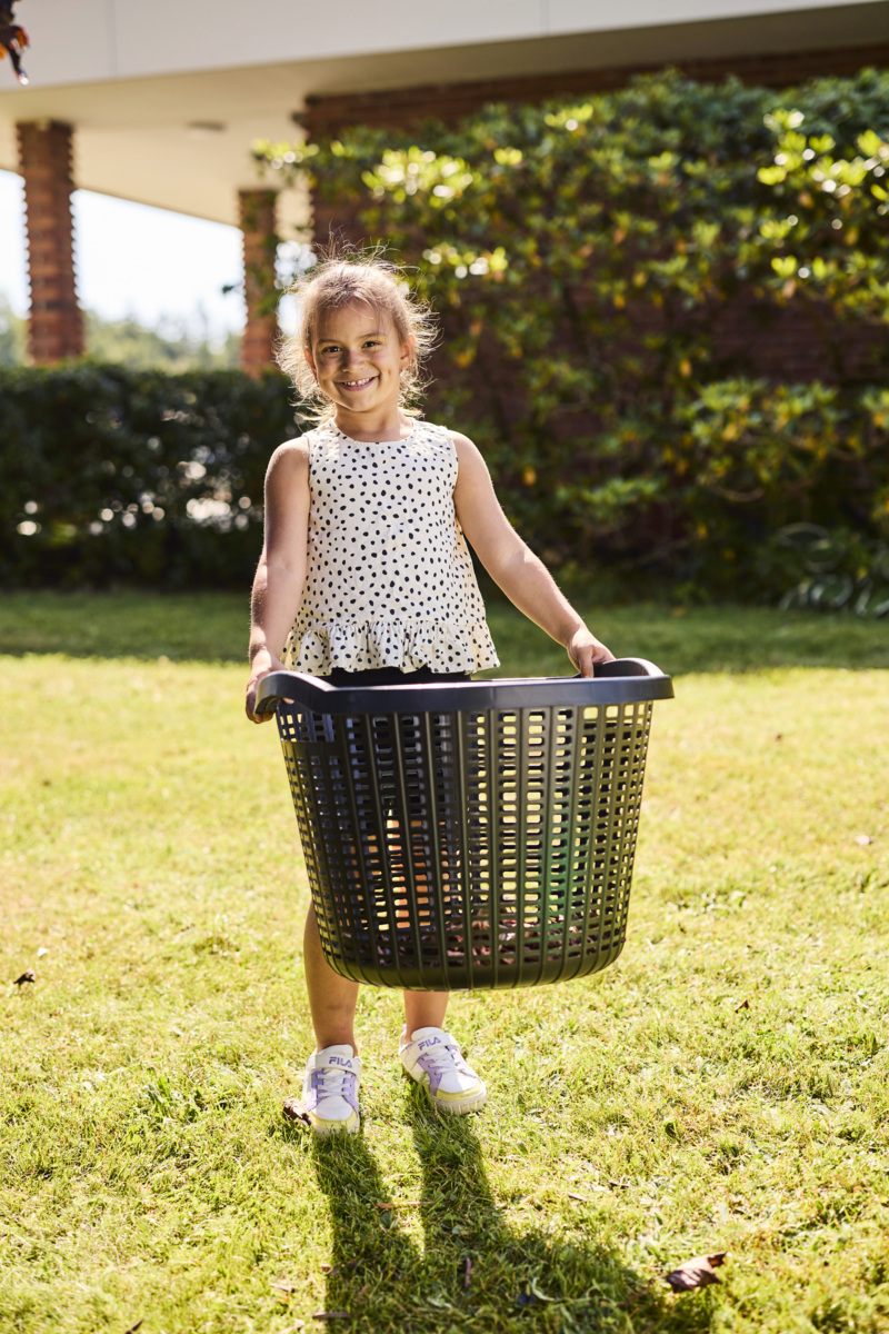 Muovinen lehtikori kahdella ergonomisella kahvalla, jotka helpottavat korin siirtämistä. Täydellinen säilytykseen sekä lelujen, vaatteiden jne. siirtämiseen paikasta toiseen. Mitat: ø 55 cm. Polypropeenia.