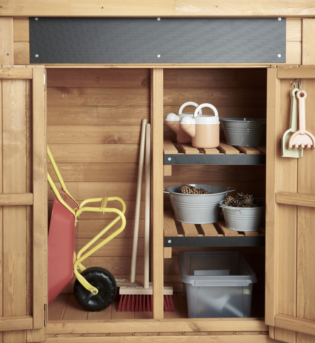 Metalliset kottikärryt sopivat mainiosti hiekkalaatikolle. Mitat: 76 x 38 x 38 cm. Tilavuus 10 litraa. Värit voivat vaihdella. Toimitetaan osina. Yli 3-vuotiaille.