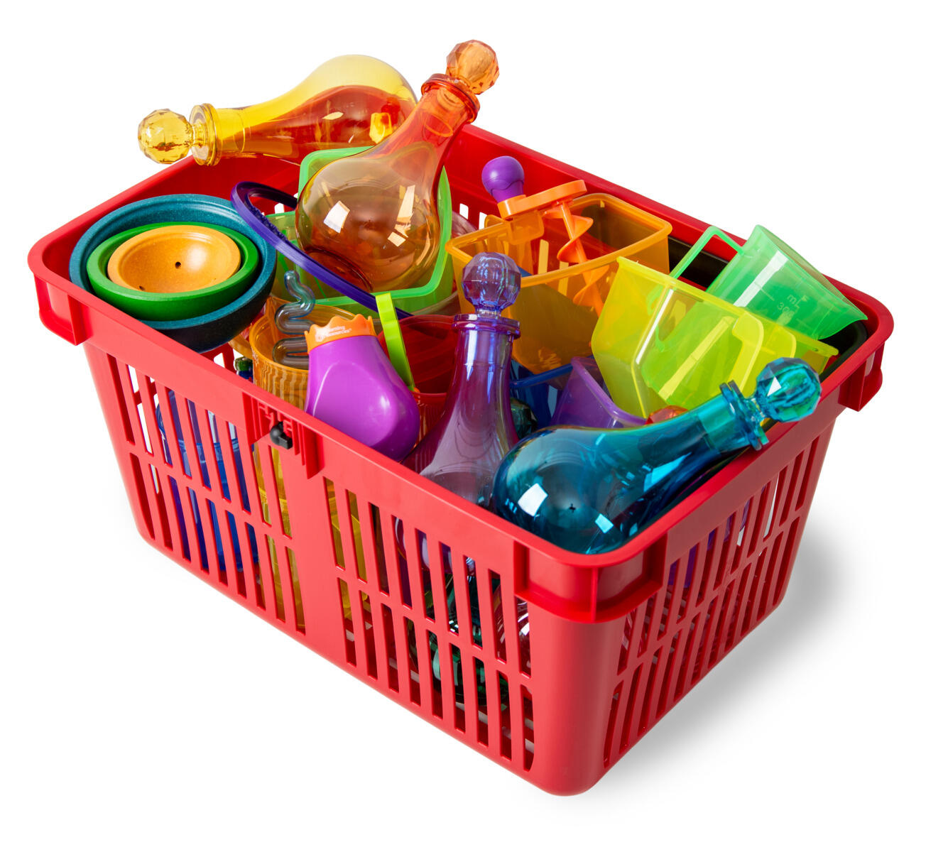 32 osaa. Valmiiksi koottu paketti ulkoleikkeihin. Tuotteet valittu yhdessä pedagogin kanssa. Sisältö: 13618 hienomotoriset hiekka- ja vesilelut, 13602 suihkulähdekulhot, 13620 muovikaatimet, 13621 läpinäkyvät sangot, 13125 värilliset pullot, 129905 suppilot ja 124579-12 kantokori. Ostoskori sopii näppärästi vaunuun 124580 (tilattava erikseen).