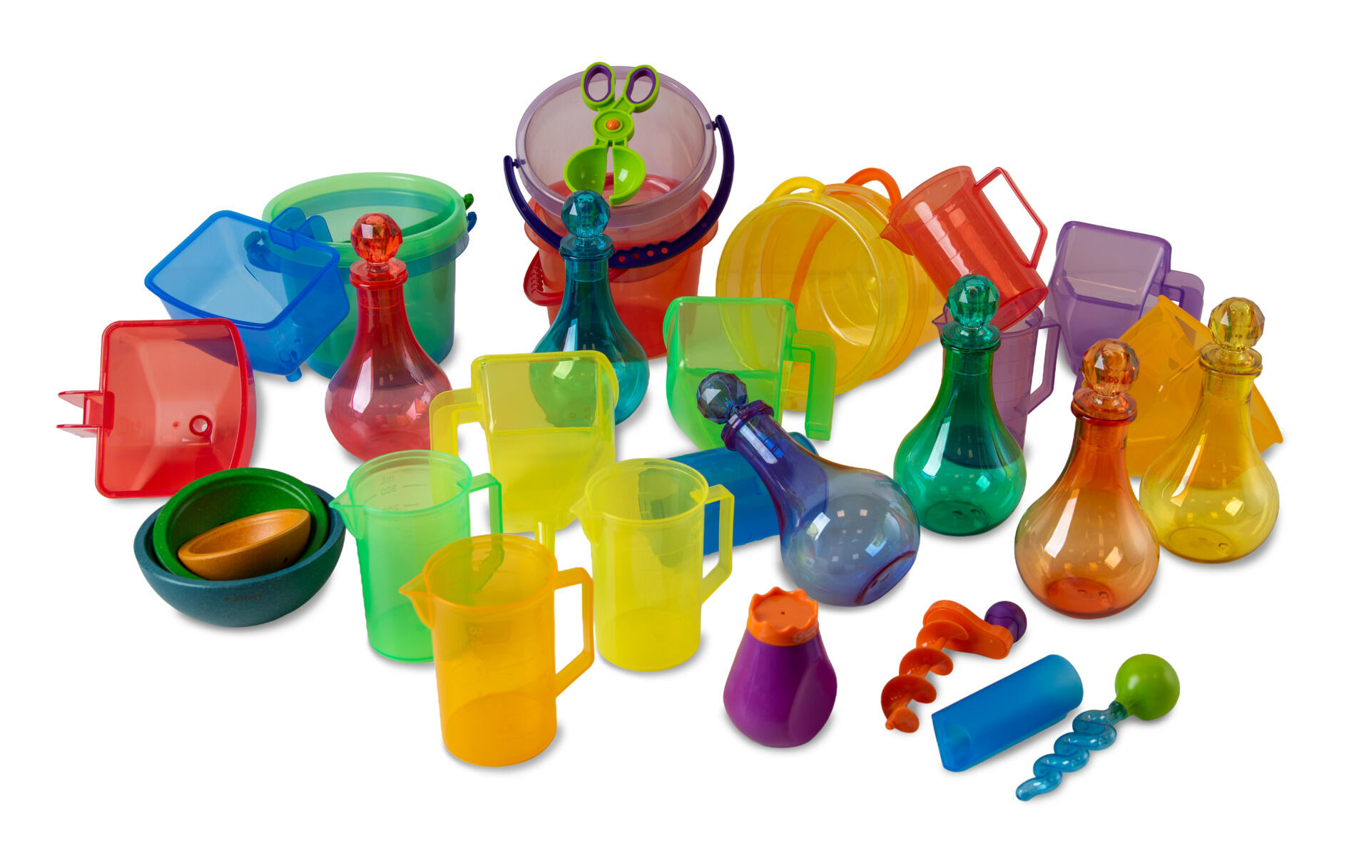Hauskoilla välineillä on kiva tutkia veden liikkeitä. Samalla kehittyvät hienomotoriset taidot. Sarja sisältää pehmeän pullon, aaltomaisen pipetin, avautuvan kauhan ja vesiporan. Mitat: 9 - 15 cm. ABS- ja PP-muovia. Yli 3-vuotiaille.