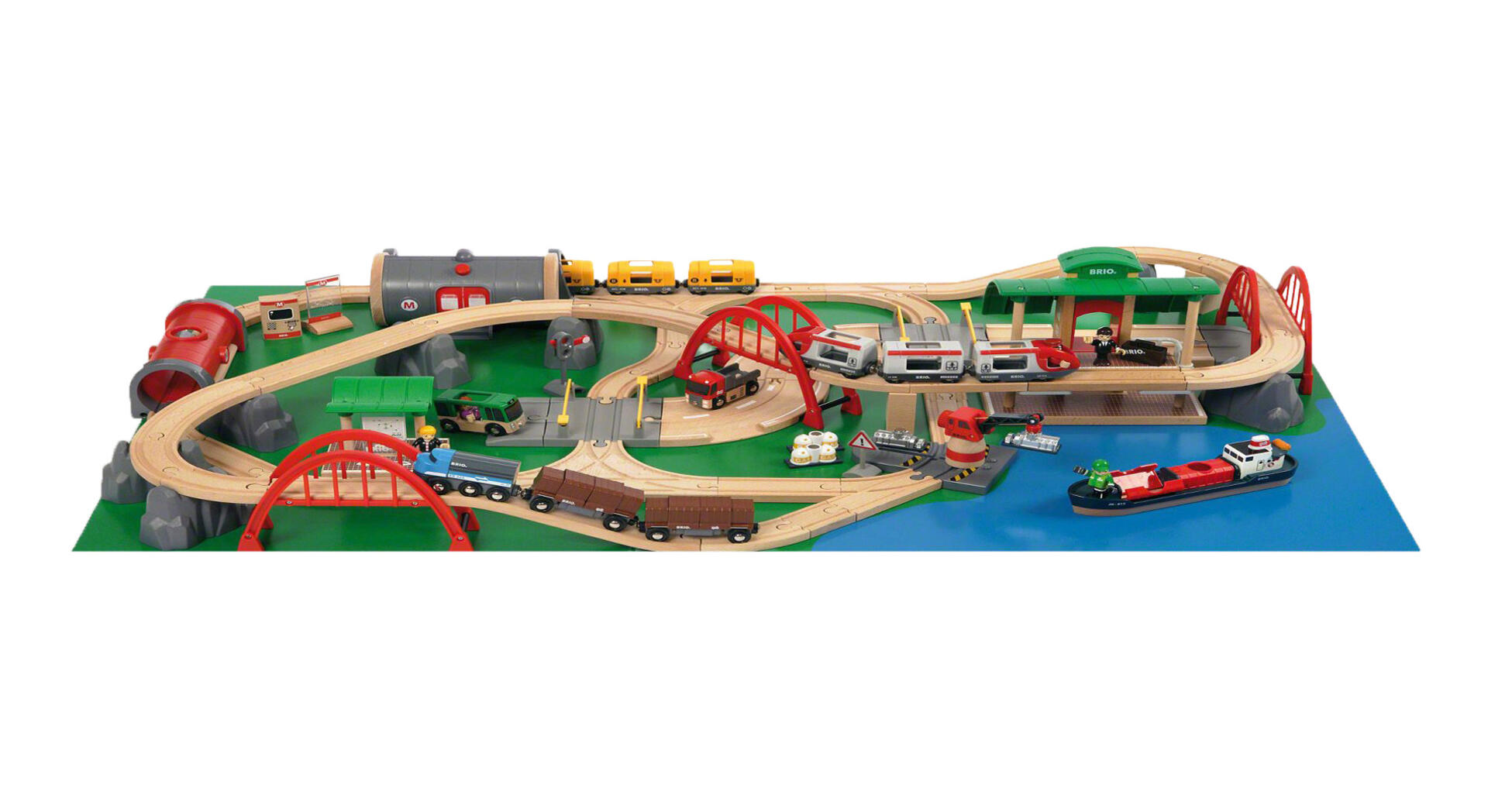 Käytännöllinen ja reilunkokoinen BRIO leikkipöytä, jossa rata on kiinnitetty pöytälevyyn. Pöydän ympärille sopii monta lasta leikkimään yhtä aikaa. Sisältää aseman, sillan, tunnelin, 1 veturin valolla ja äänellä, 1 puuveturin, 1 matkustajavaunun, 1 paristoveturin, 1 pienen puuveturin ja 3 vaunua. Sisältö voi hieman vaihdella. Toimii kahdella AAA-paristolla (eivät sisälly pakkaukseen). Pöydän ulkomitat 118 x 75 x 45 cm. Jalusta (tuotenro 33088) myydään erikseen. Valmistuksessa on käytetty FSC-sertifioitua puuta ja vesiliukoisia maaleja. Yli 3-vuotiaille.