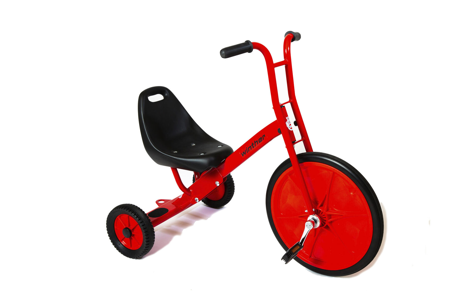 Erittäin tukeva kolmipyöräinen pienimmille lapsille. Istuinkorkeus 28 cm. Kokonaiskorkeus 51 cm ja leveys 45 cm. Paino 8,5 kg. Yksinkertainen koota, sisältää ohjeen. 2-4 -vuotiaille.