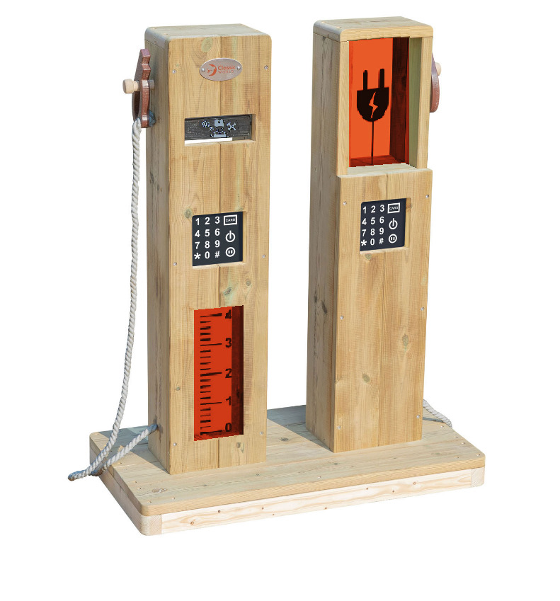 Osana roolileikkiä lapset pysähtyvät leikkimään tankkaavansa tai lataavansa ajoneuvoaan. Matkimalla erilaisia ​​arkielämän toimintoja lapset kehittävät ymmärrystään ympäristöstään. Sopii ulkokäyttöön. Mitat: 70 x 38 x 88 cm. Valmistettu puunsuoja-aineella käsitellystä männystä. Yli 3-vuotiaille.