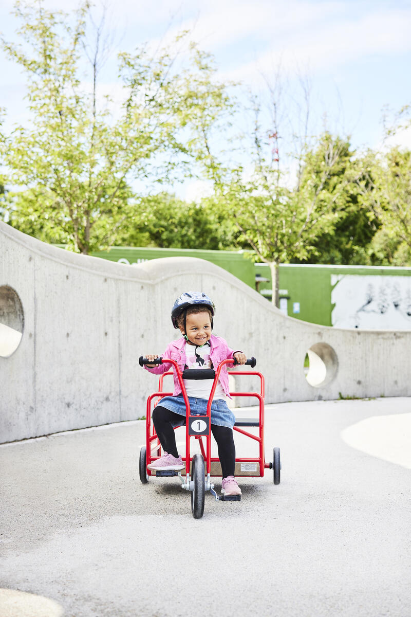 Pyörällä voi kuljettaa kahta kaveria samanaikaisesti. Erinomainen roolileikkeihin. Istuinkorkeus 38 cm. Kokonaiskorkeus 62 cm ja -leveys 68 cm. Paino 20,4 kg. Helppo koota, mukana ohjeet. Ikäsuositus: 4 - 8 -vuotiaille.