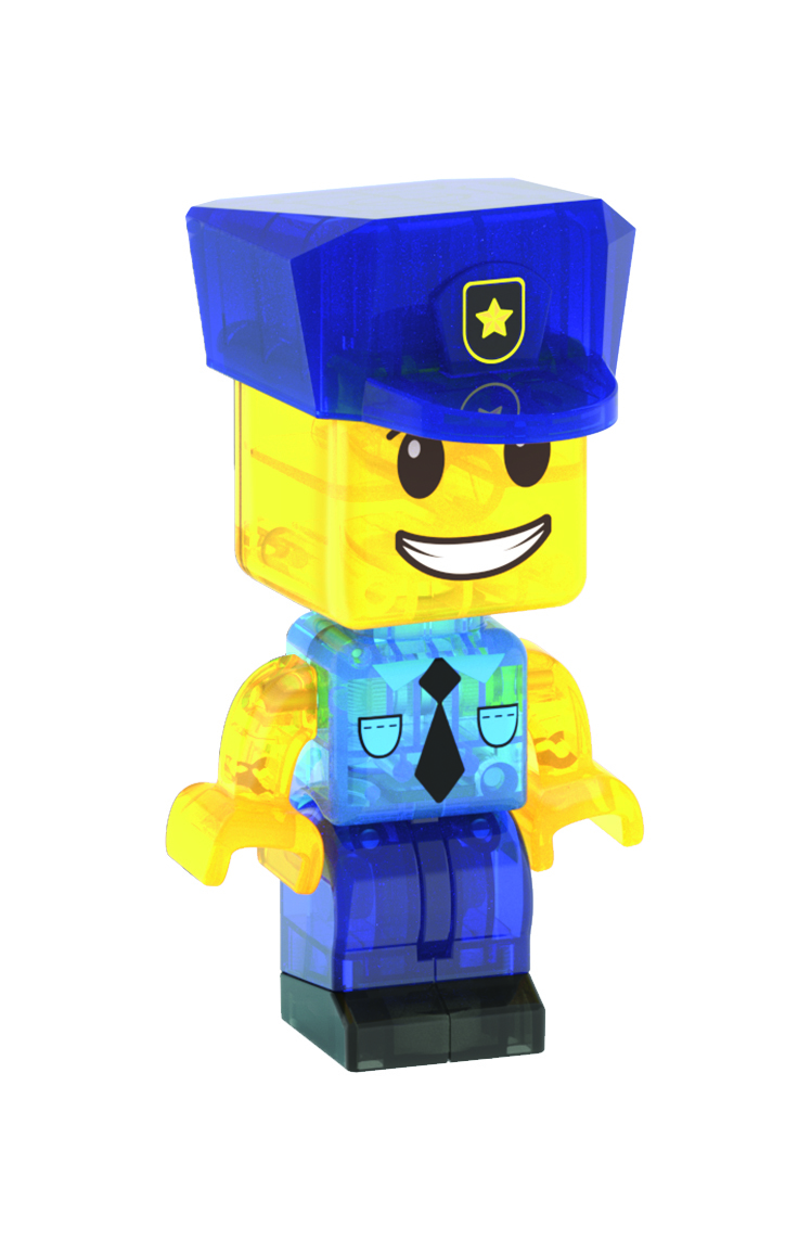 Tämä suuri setti sisältää kaiken tarvittavan oman poliisiaseman rakentamiseen, mukaan lukien kaksi poliisia ja poliisiauton, jossa on vetotoiminto. Poliisiasema on varustettu ääni- ja valojärjestelmillä, mukana tulee kaksi LR44 1,5 V paristoa. Hahmon koko noin 7 cm. ABS-muovia. Yli 3-vuotiaille.