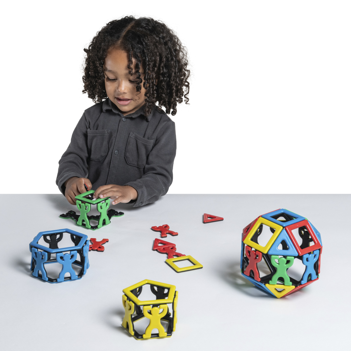 54 osaa. Anna lasten tutkia muotoja ja magnetismia hauskan ja opettavaisen rakennusleikin avulla. Värikäs setti sisältää useita erilaisia geometrisia muotoja sekä 27 akrobaattista hahmoa, jotka ovat 6 cm korkeita. Kierrätettyä ABS-muovia. Yli 3-vuotiaille.