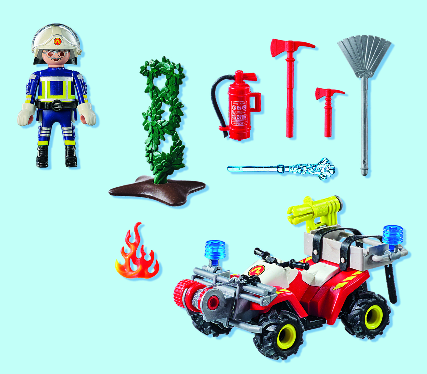 47 osaa. Pelastaja on aina valmis lähtemään moottoripyörällään sammuttamaan tulipaloja. Setti sisältää pelastajan, moottoripyörän ja lisävarusteita. ABS-muovia. Yli 4-vuotiaille.