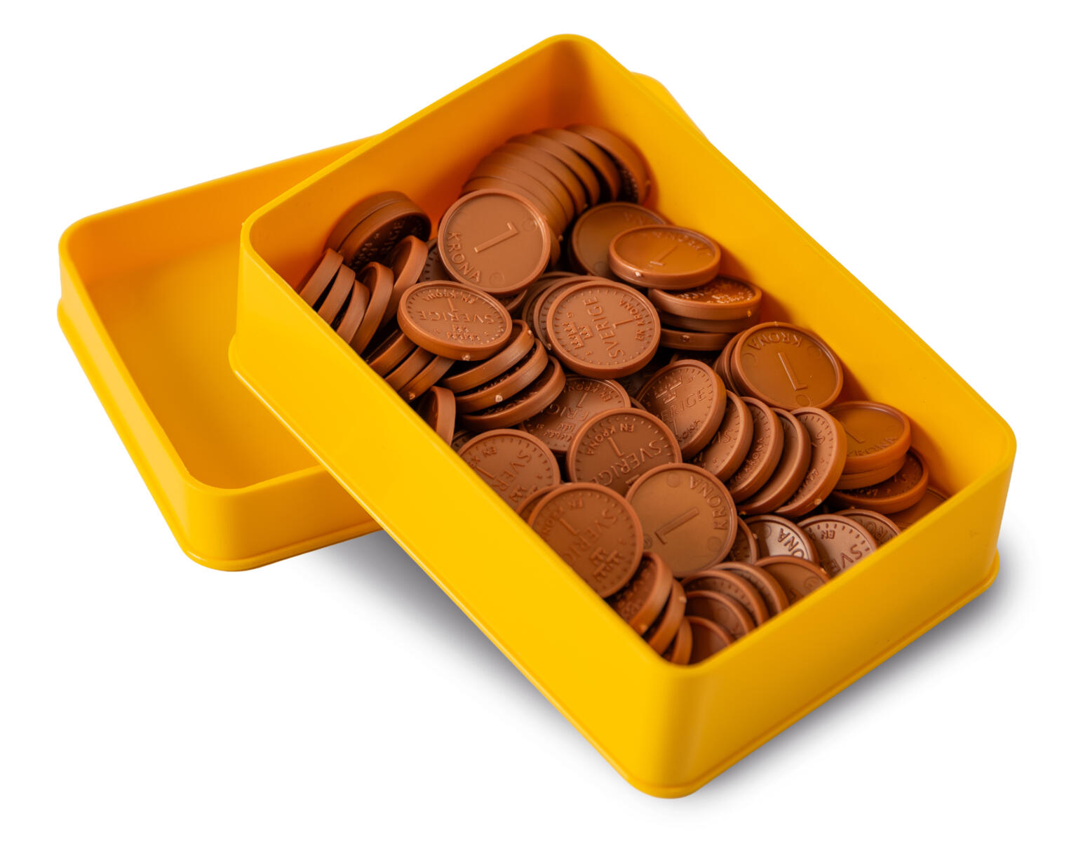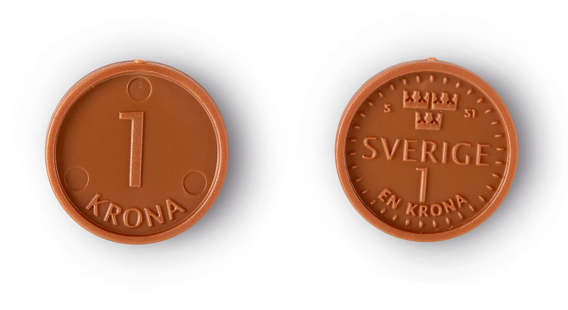 100 kpl Ruotsin yhden kruunun kolikkoa. Muovia.