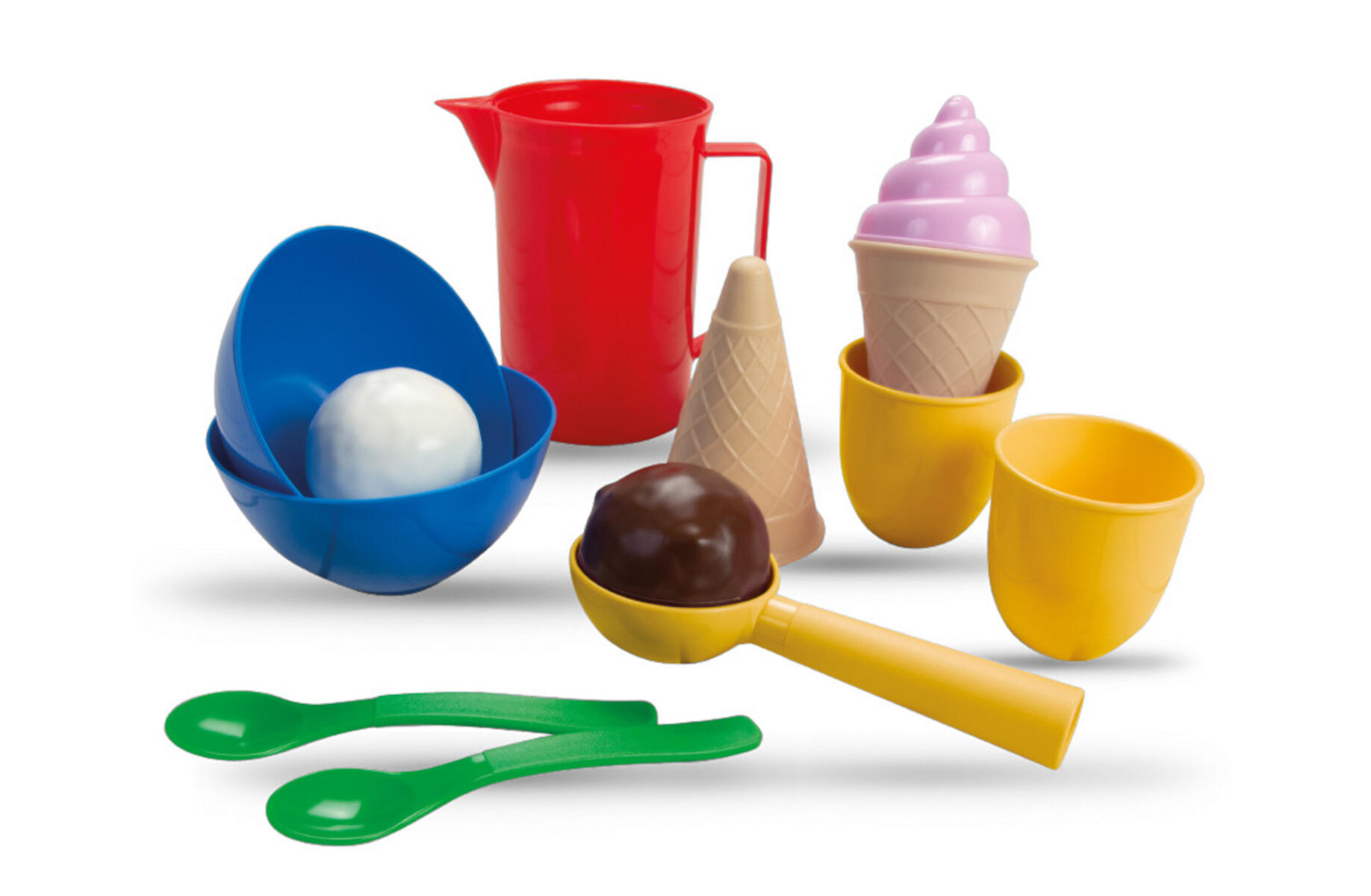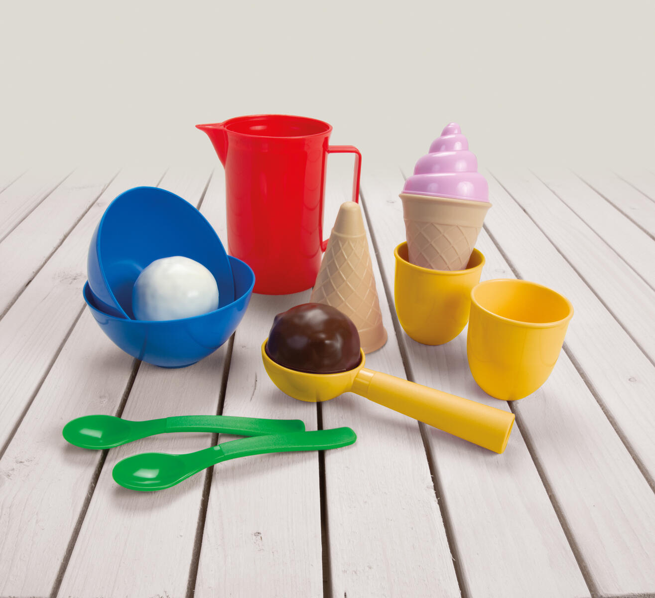 Jäätelö voidaan tarjoilla jäätelötötterössä, kulhossa tai mukissa. Setti vahvistaa muun muassa lapsen hienomotoriikkaa, tasapainoa ja mielikuvitusta, kun hän luo erilaisia jäätelöyhdistelmiä. PE-muovia. Joutsenmerkki, lisenssinumero 50950001. Yli 2-vuotiaille.