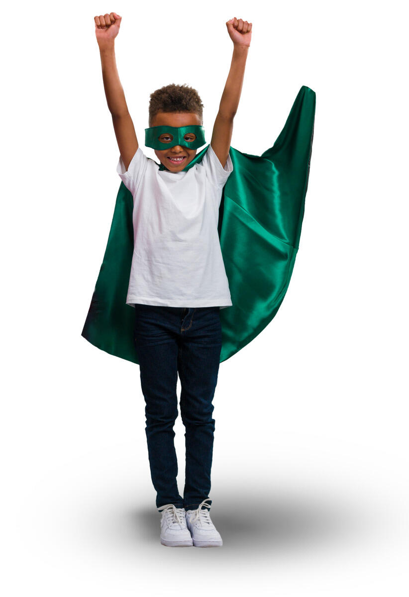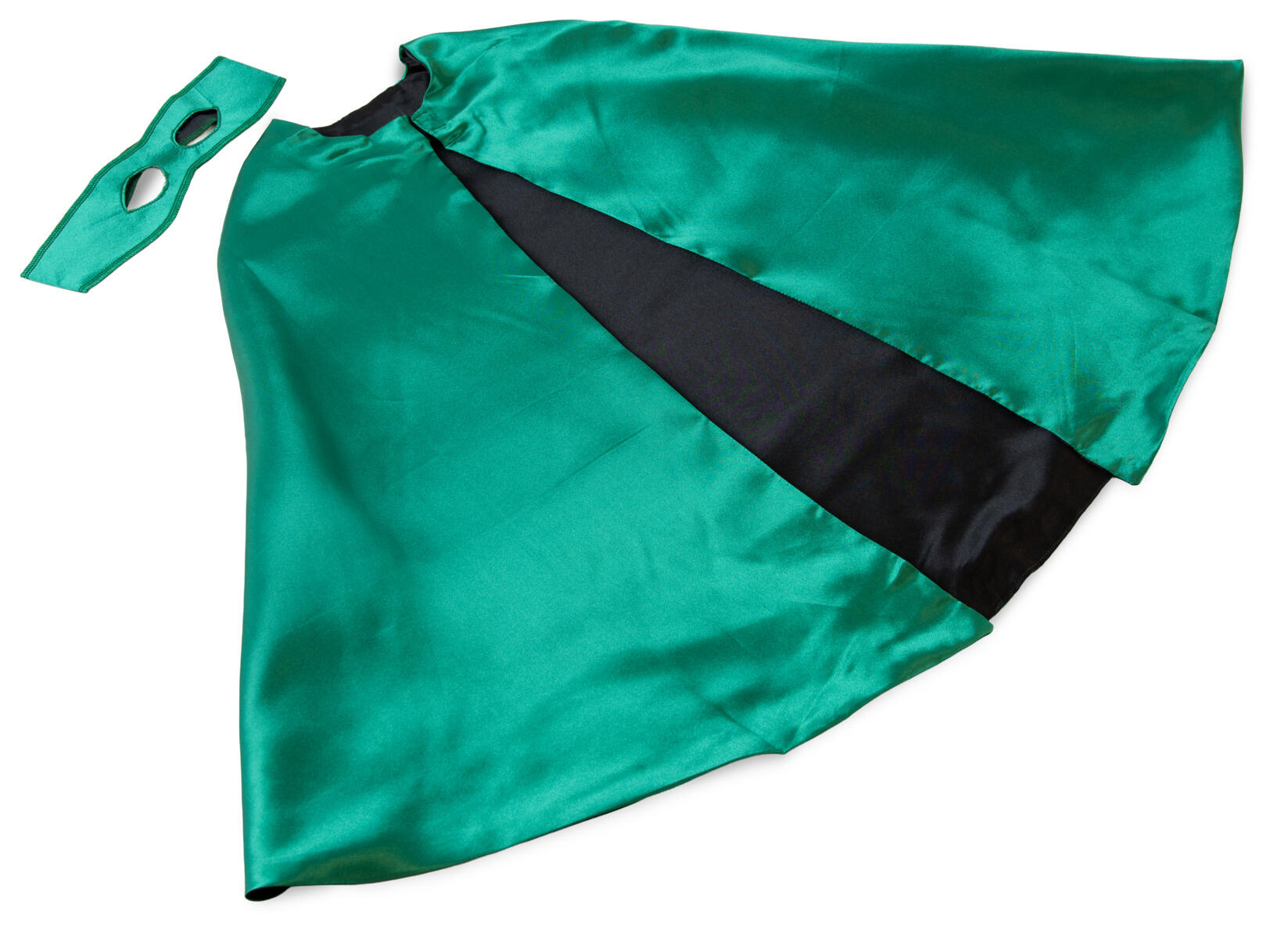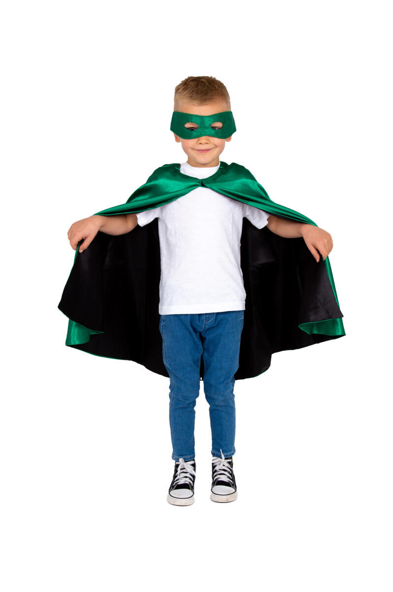 Käännettävä mustavihreä viitta- ja maskisetti. Viitan pituus 70 cm. Sopii noin 3-7 -vuotiaille. Hienopesu 40°. Hyväksytty Öko-Tex® Standard 100 mukaisesti.
