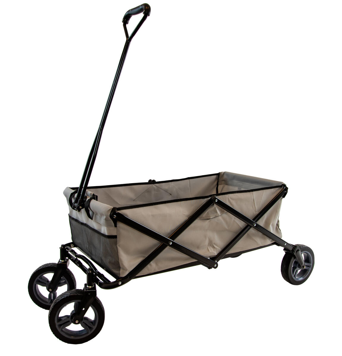 Yksinkertainen kokoontaitettava vetokärry. Toimitetaan valmiiksi koottuna, helppo taittaa kasaan. Huomaa, että tuotetta ei ole tarkoitettu lasten kuljetukseen. Mitat taitettuna: 80 x 50 x 20 cm. Tilavuus 94 litraa. Renkaiden koko 19 cm. Kahvan pituus 80 cm. Maksimikuorma 120 kg. Runko terästä, kangas polyesteriä ja pyörät PU-muovia.
